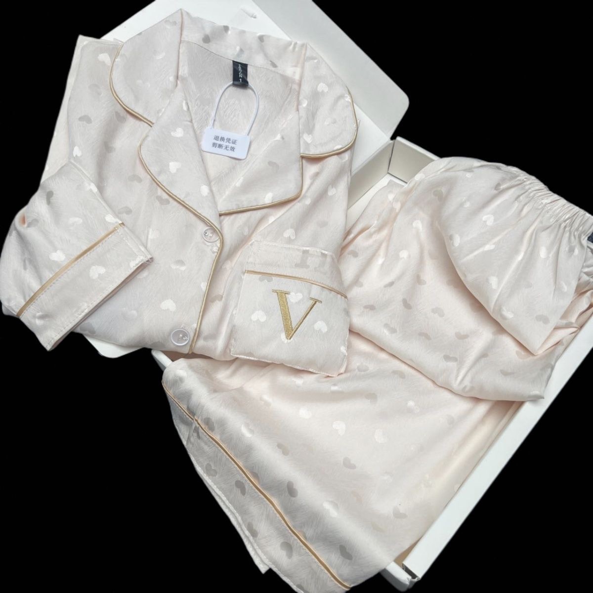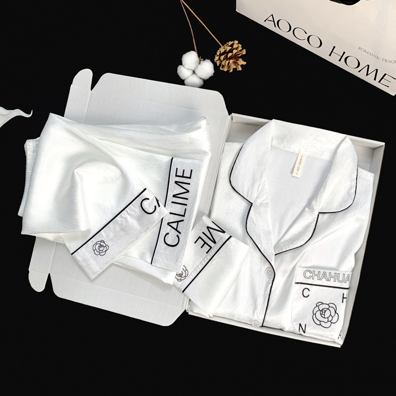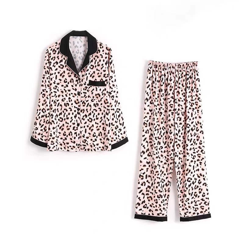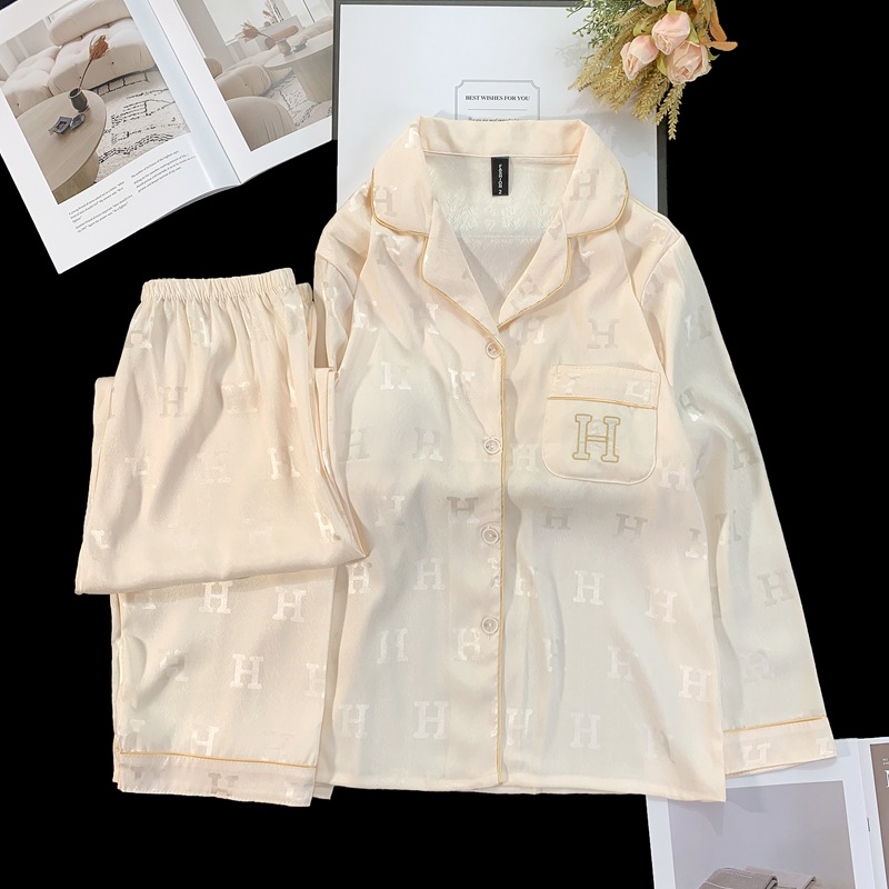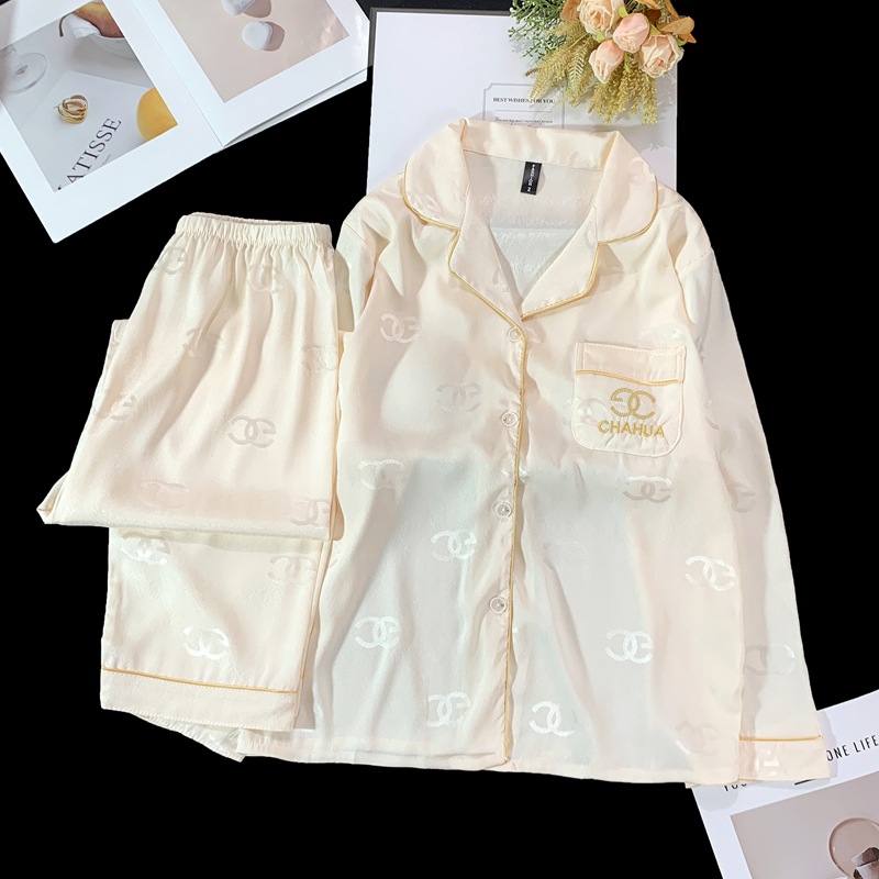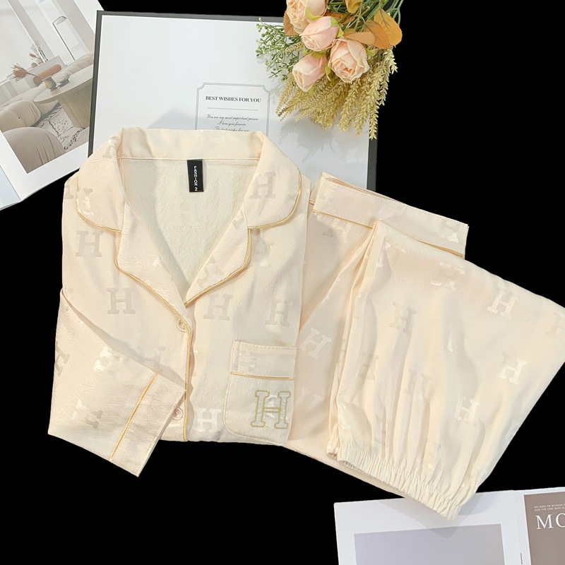 고급 핑크 아이스 실크 리본 패드 잠옷 여성의 봄과 가을 2025 새로운 여성의 실크 홈 의류 세트스토어 가기