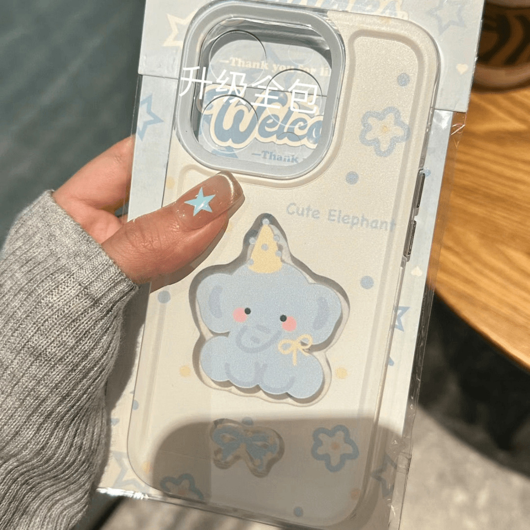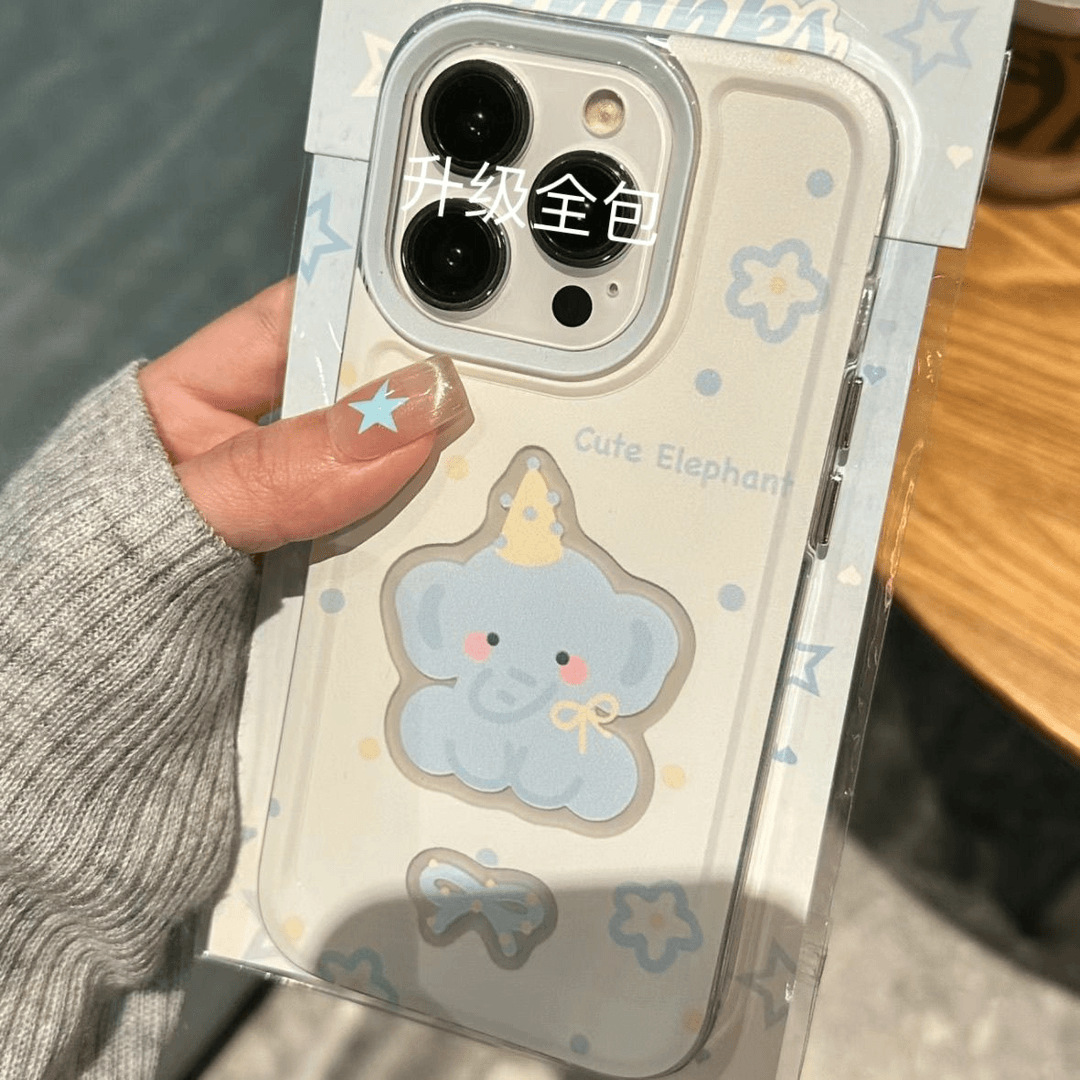 노란 모자와 파란 코끼리는 애플 17PROMAX에 잘 어울리는 고급스러운 휴대폰 케이스, 아이폰16, 독특한 디자인의 14, 부드러운 13, 충격 방지 기능이 있는 제품입니다.스토어 가기