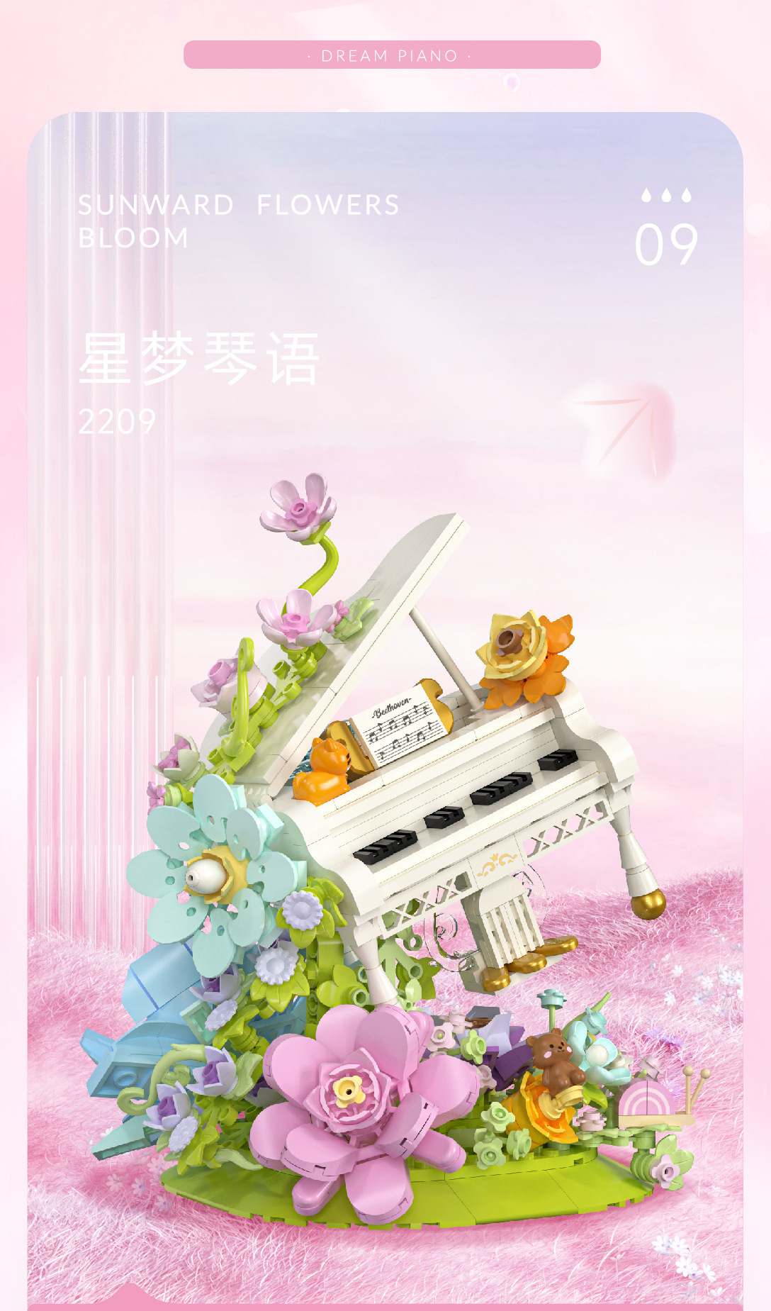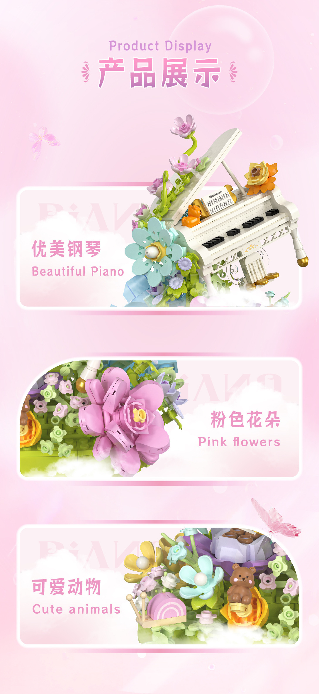 Yongshenhua 피아노 빌딩 블록 모델 퍼즐 조립 소녀 선물 작은 입자 수제 장식품 국경 장난감스토어 가기