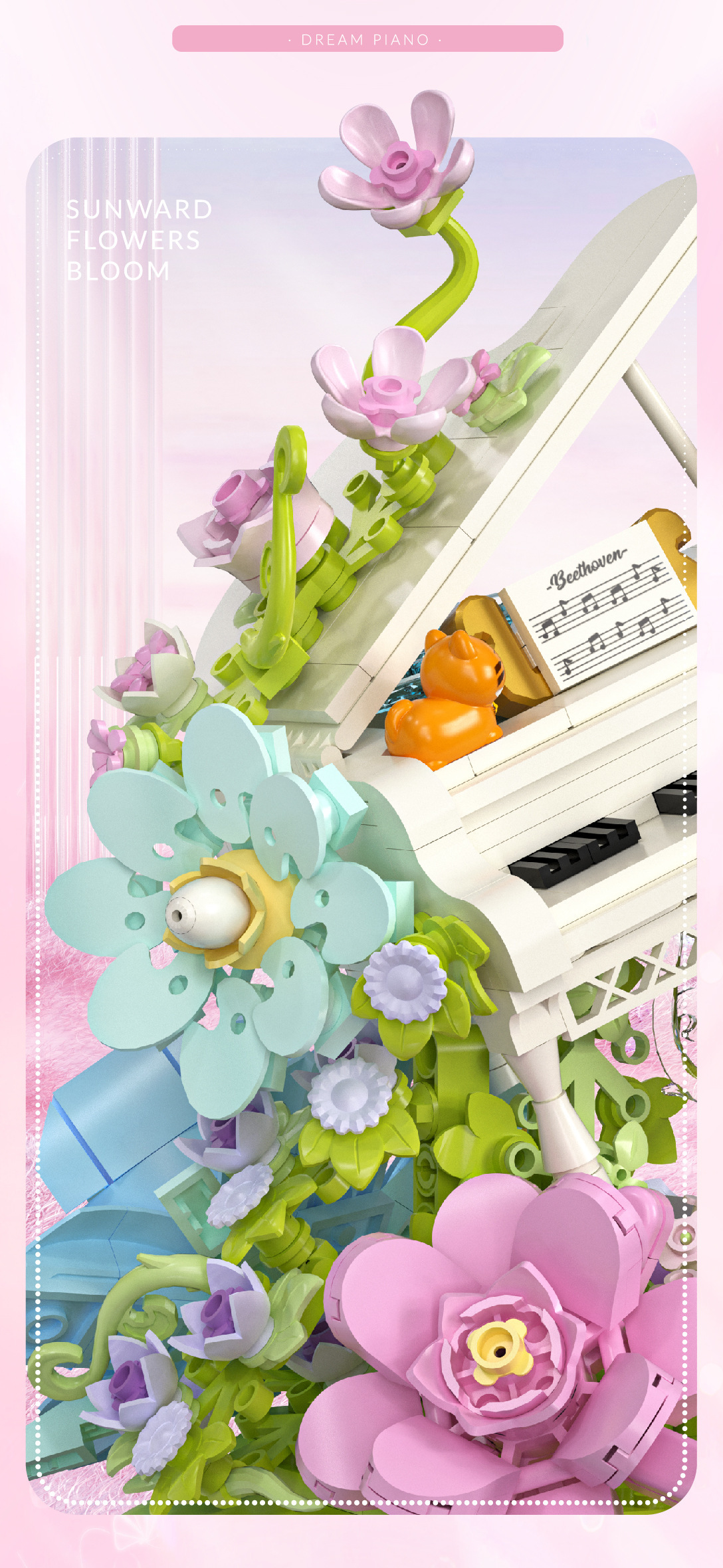 Yongshenhua 피아노 빌딩 블록 모델 퍼즐 조립 소녀 선물 작은 입자 수제 장식품 국경 장난감