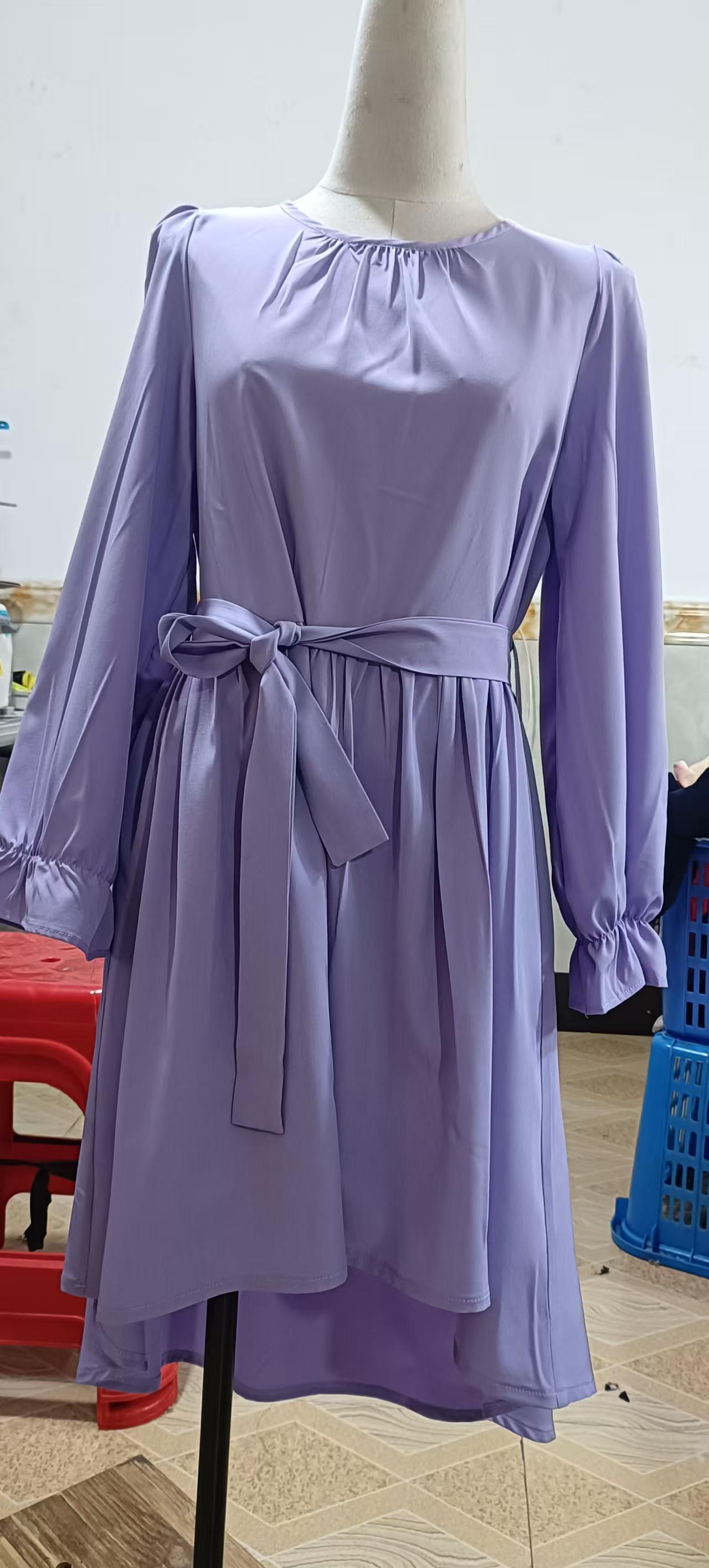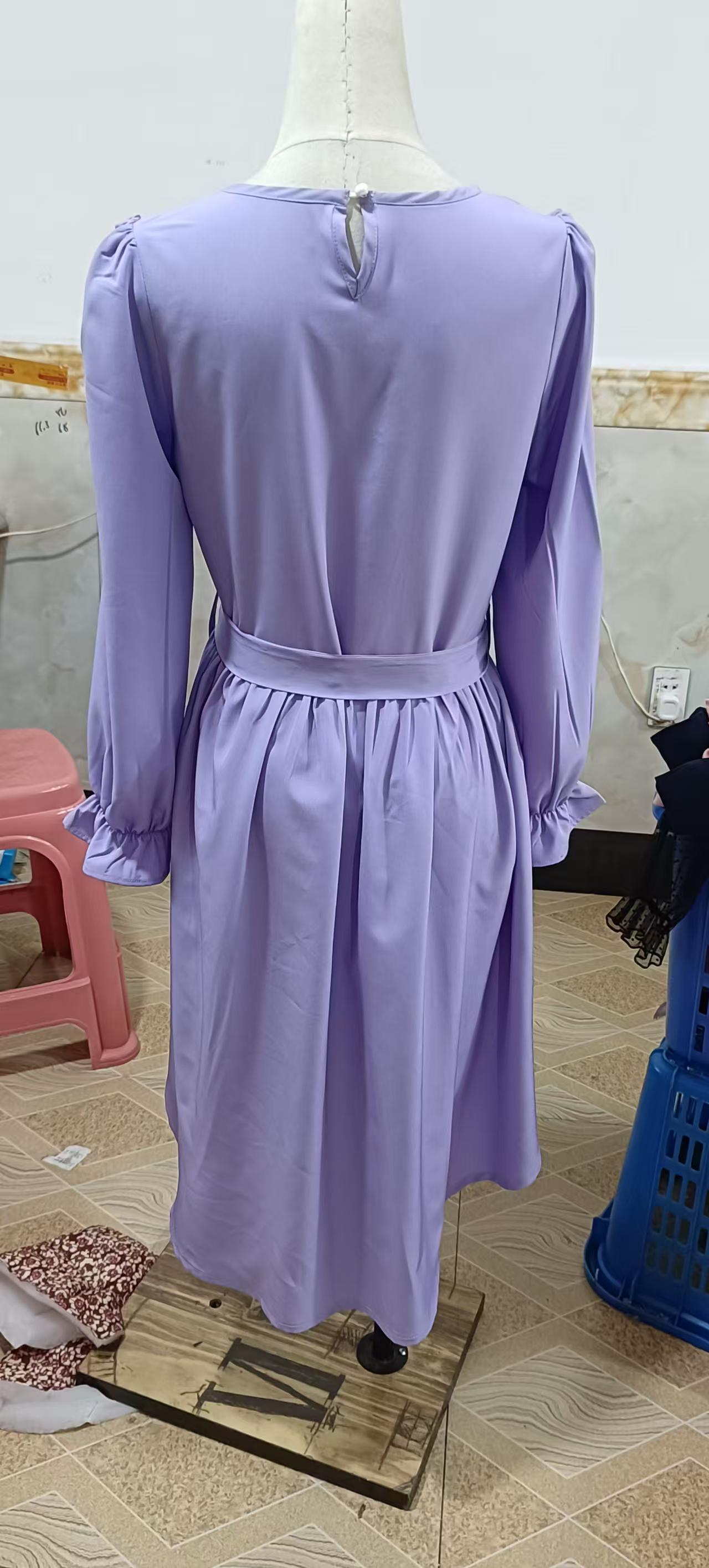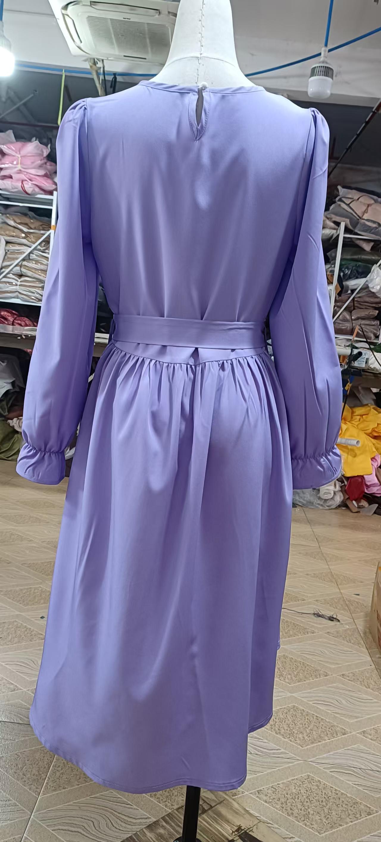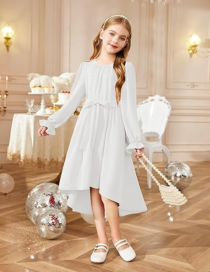국경을 넘는 스타일의 라운드넥, 넓은 밑단의 여아용 긴팔 패셔너블하고 우아한 파티 드레스, 벨트 포함 원피스 5011스토어 가기
