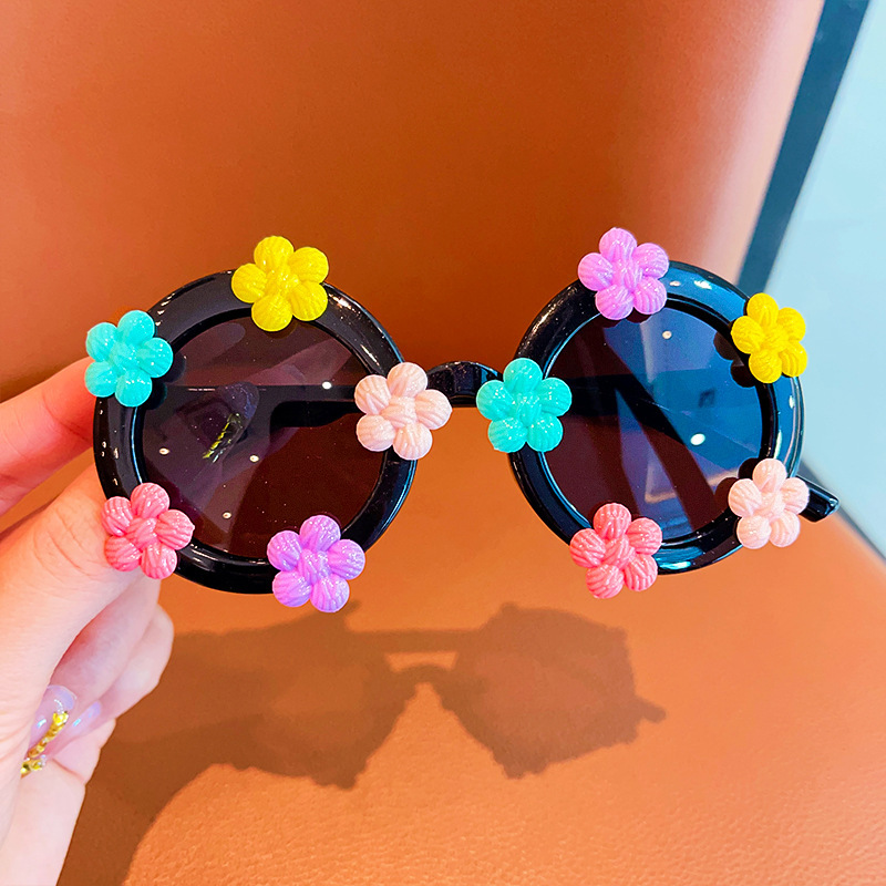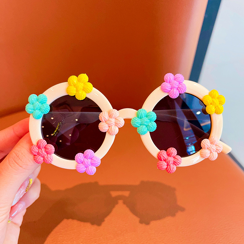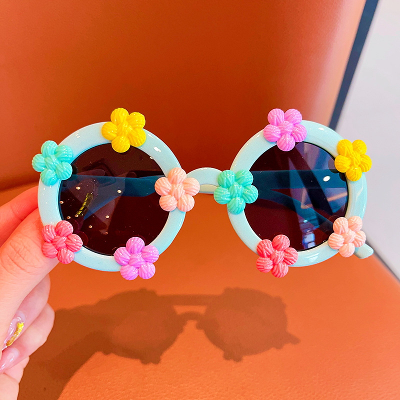 새로운 2025 어린이 선글라스 귀여운 둥근 꽃 필터 선글라스 아기 모양 선글라스