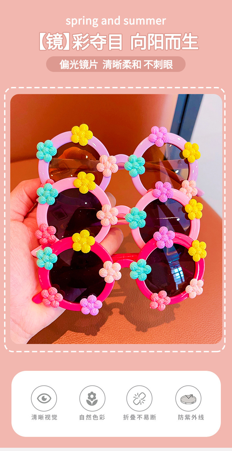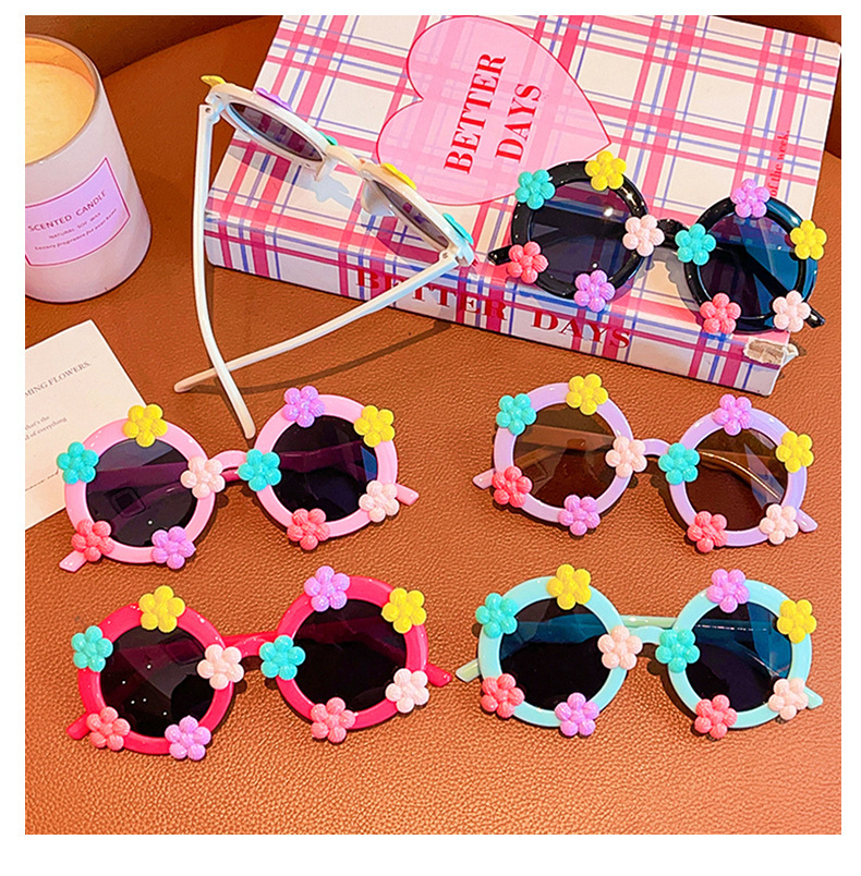 새로운 2025 어린이 선글라스 귀여운 둥근 꽃 필터 선글라스 아기 모양 선글라스스토어 가기