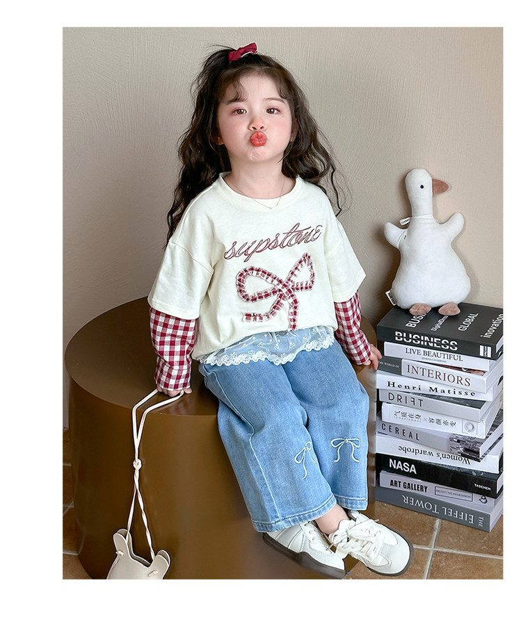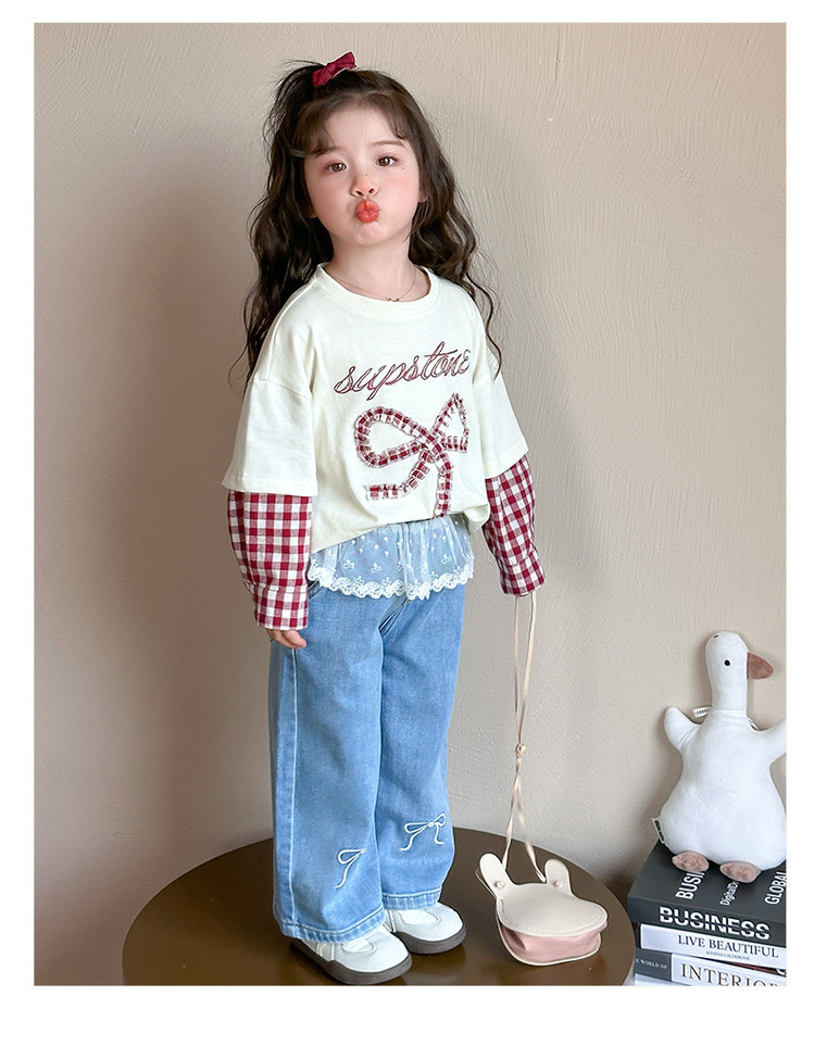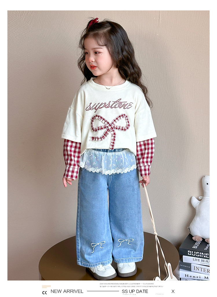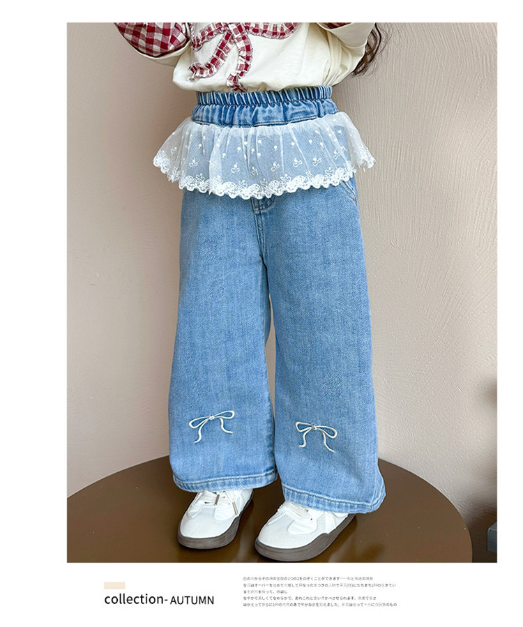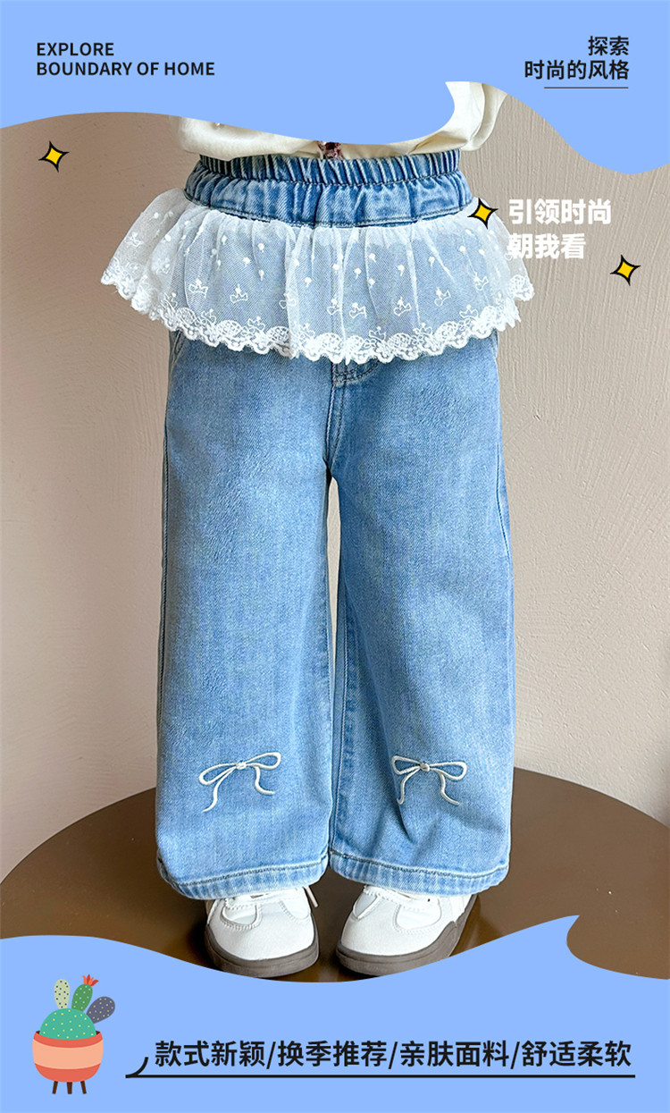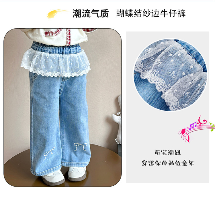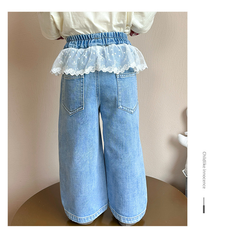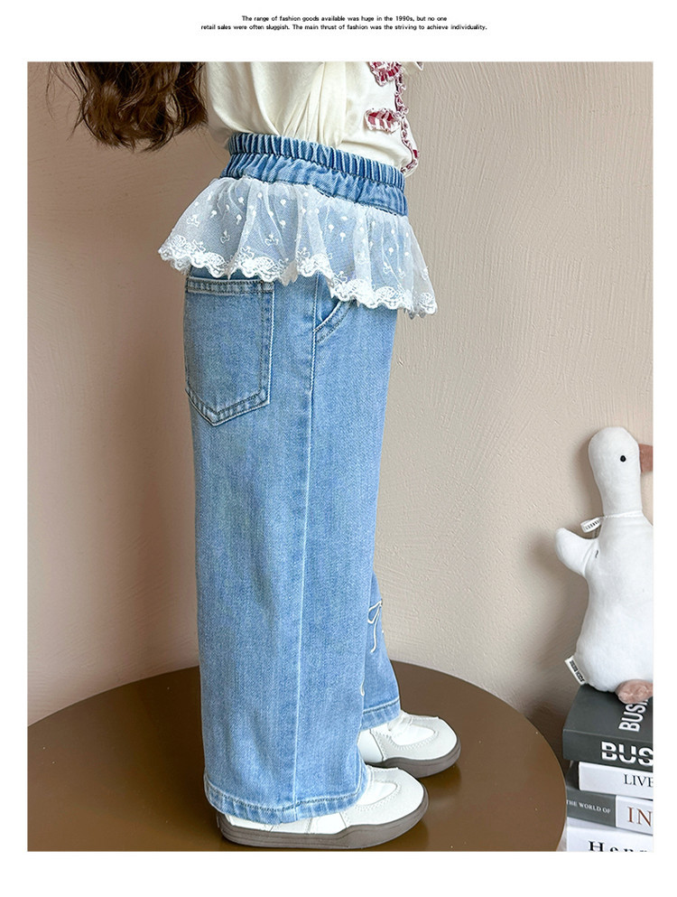 2025 여자 봄 데님 활 방귀 커튼 넓은 다리 바지 서양식 여성용 보물 스트레이트 다리 바지