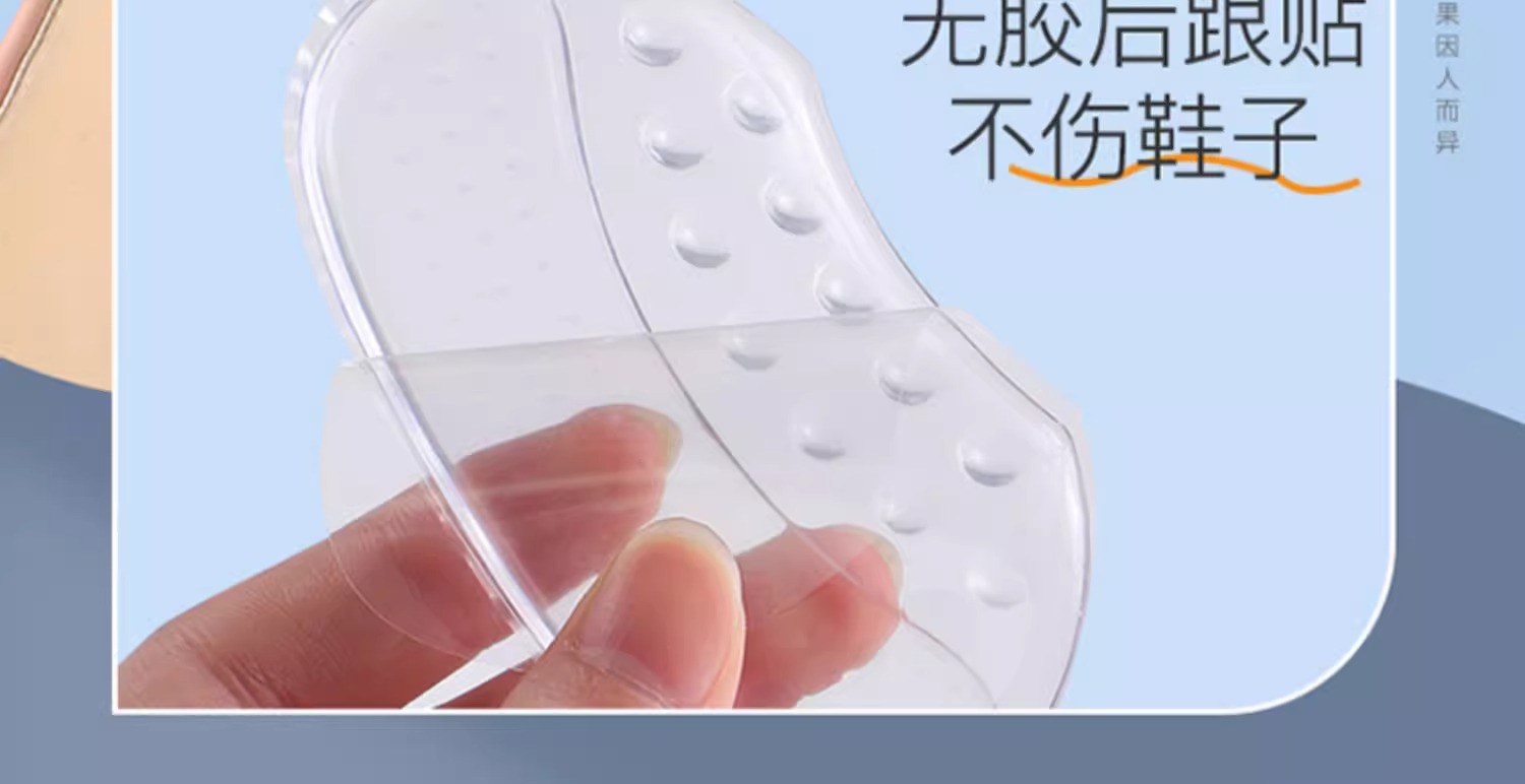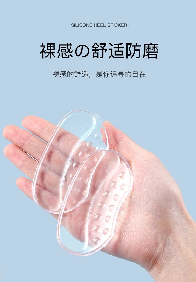 실리콘 힐 스티커, 마모 방지, 낙하 방지, 신발 손상 없음, 접착제가 없는 하프 사이즈 패드, 자체 접착, 여름 미끄럼 방지