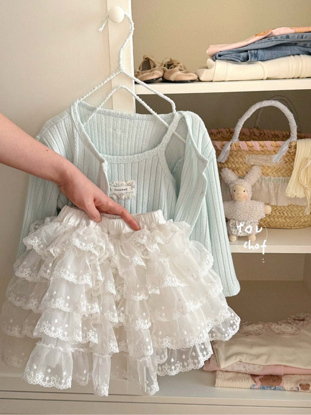 스위트 쇼츠 아동복 봄 신상 여아 한국 스타일 레이스 케이크 스커트 투피스 세트