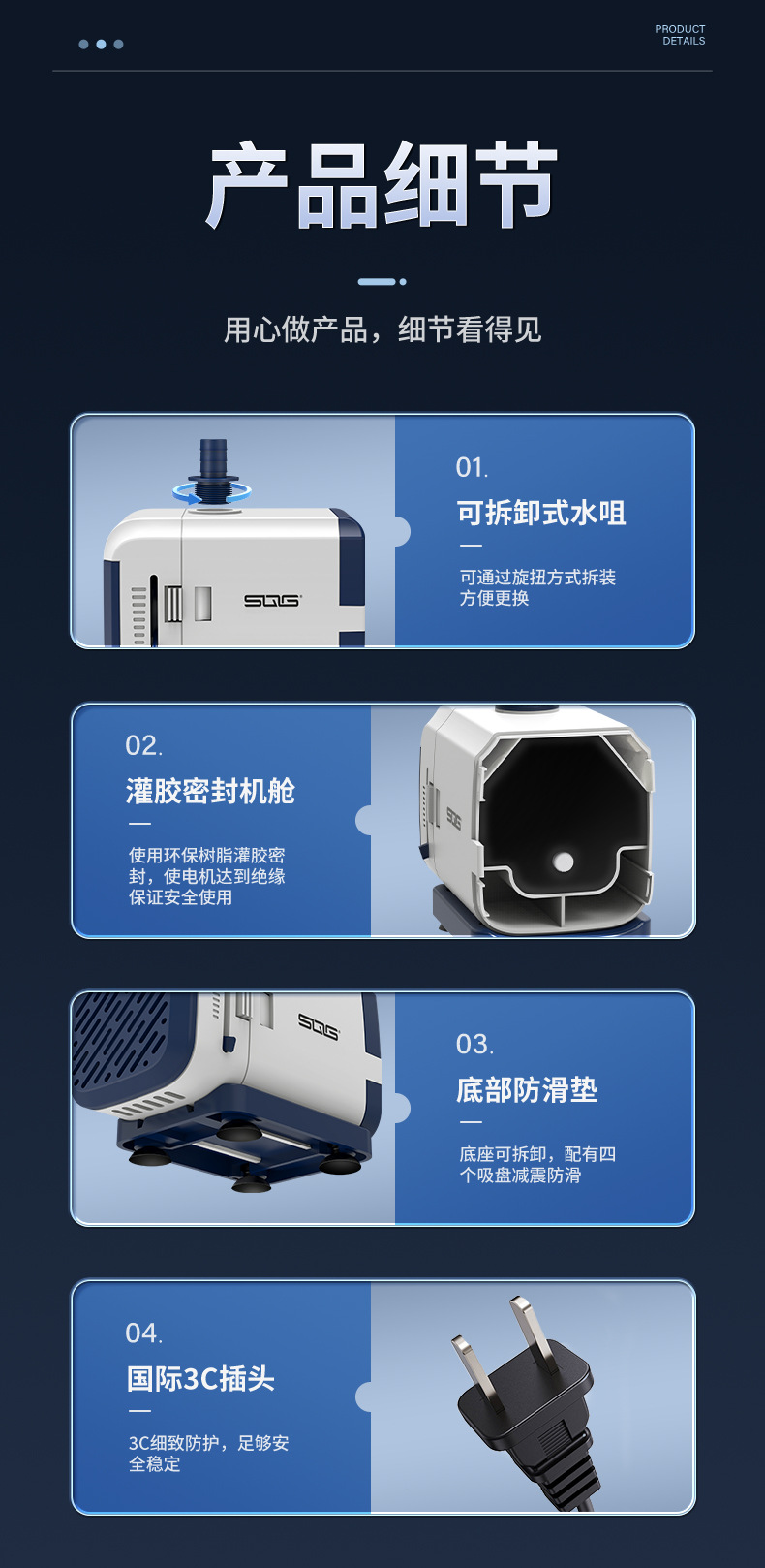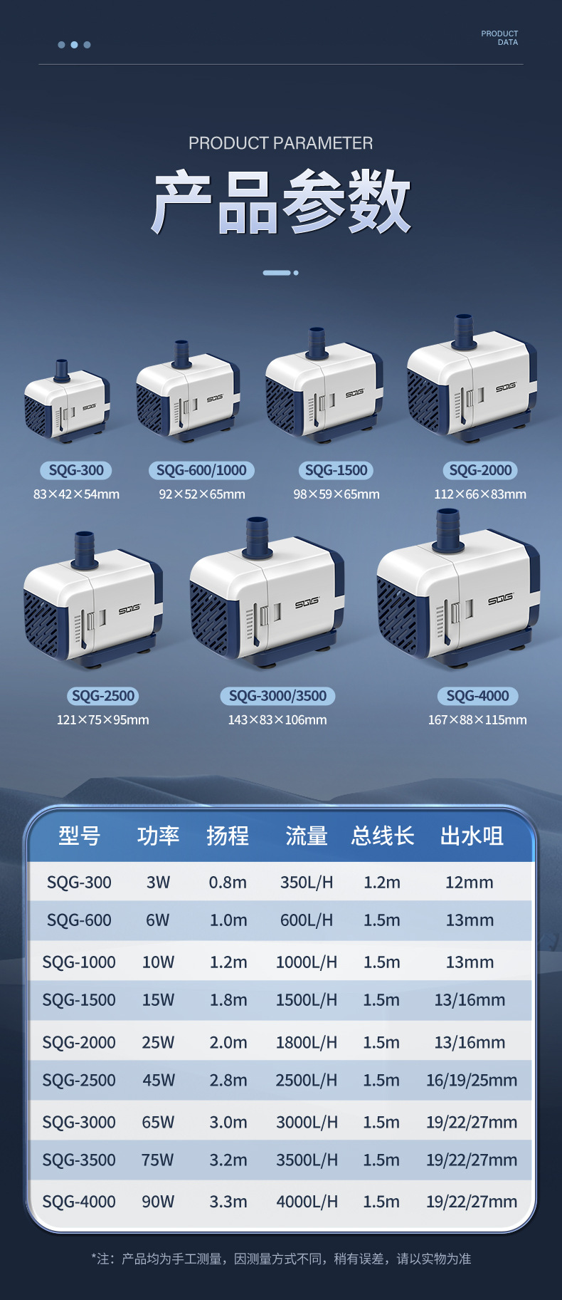 • 10W 수중 펌프 Galaxy SQG-1000+ 1m 수도관