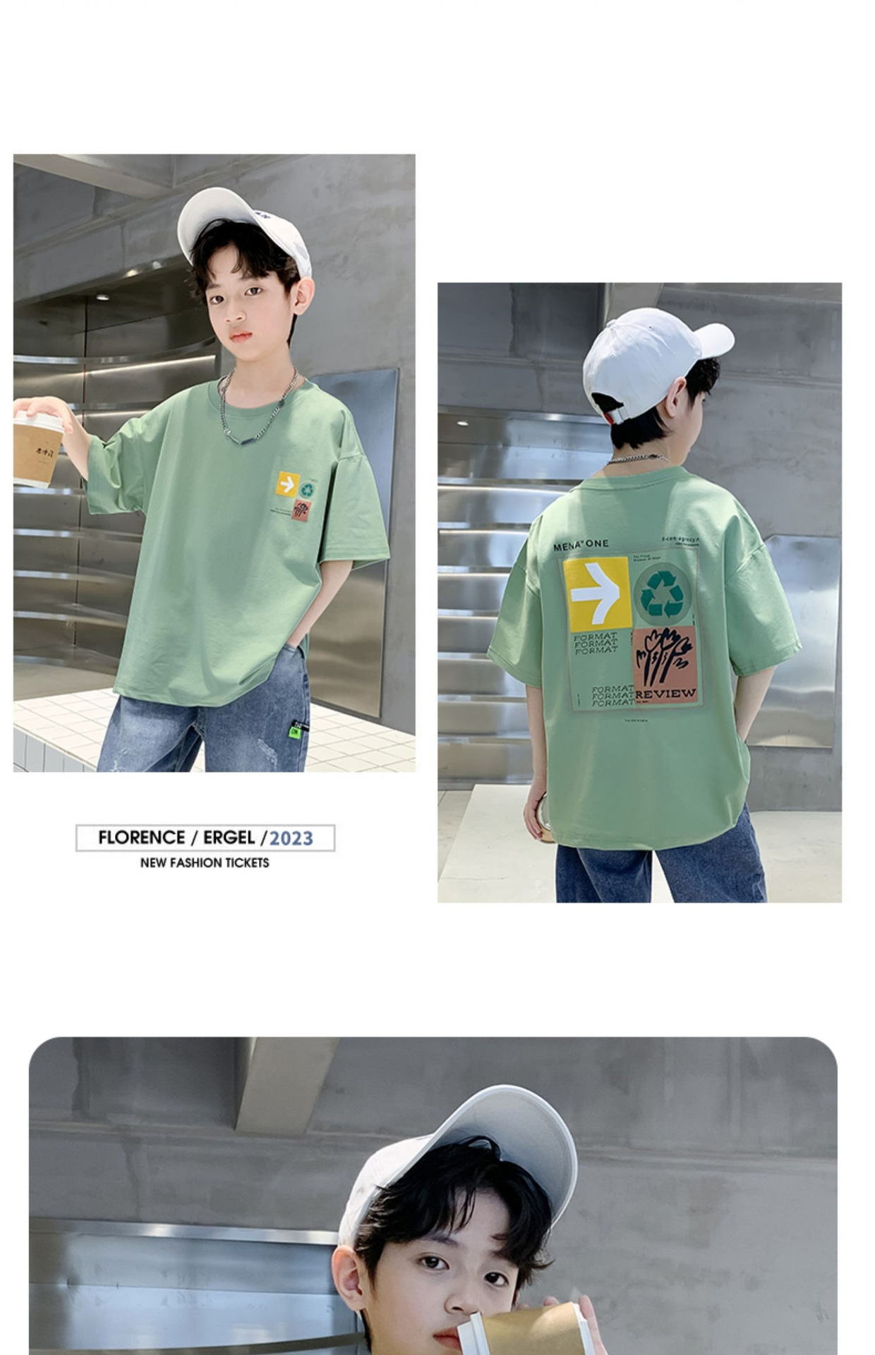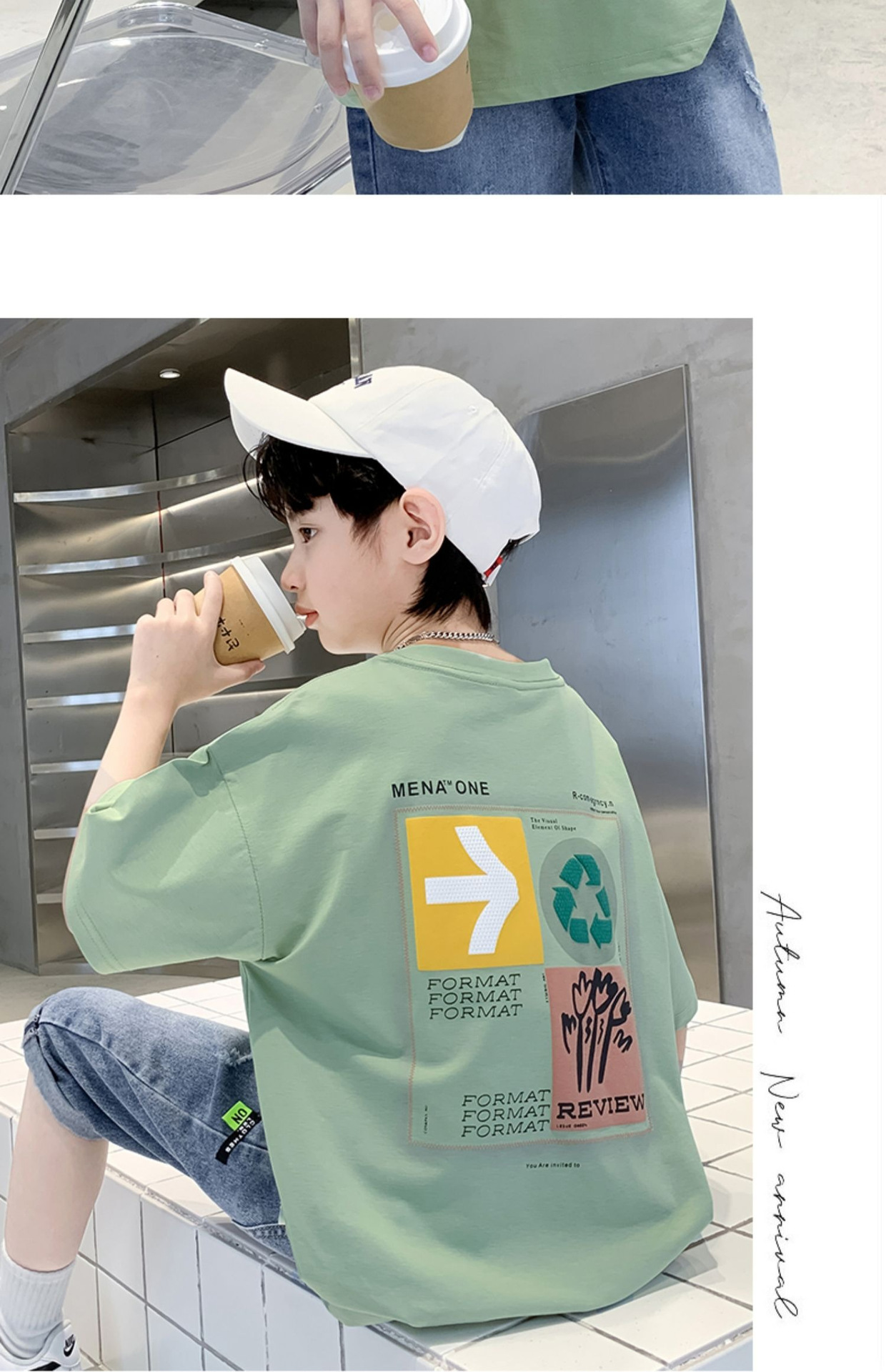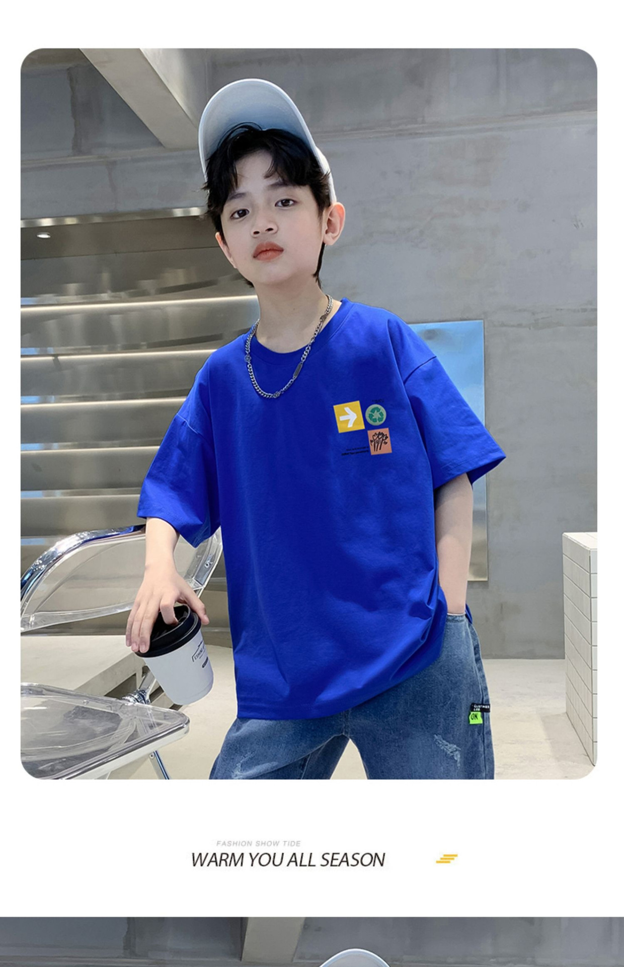 대외 무역 100 면 소년 여름 옷 유행 큰 여름 잘 생긴 외국 옷 어린이 반소매 반소매 소년 티셔츠스토어 가기
