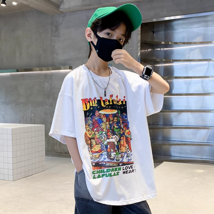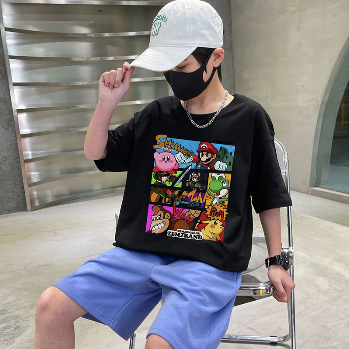 대외 무역 100 면 소년 여름 옷 유행 큰 여름 잘 생긴 외국 옷 어린이 반소매 반소매 소년 티셔츠