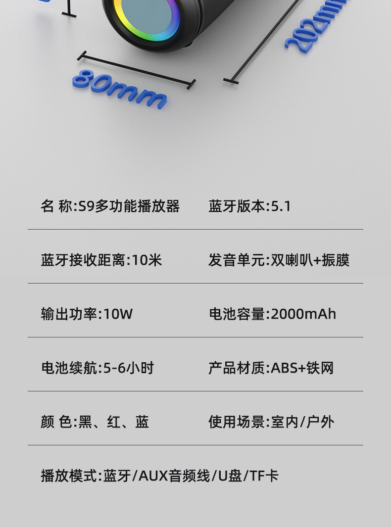 • 빨간색/지능형 음성 도우미/멋진 조명/10W 전력 포함