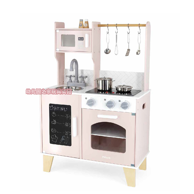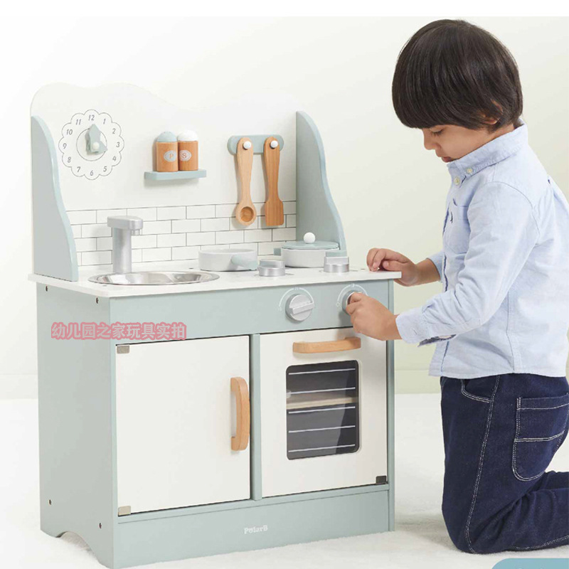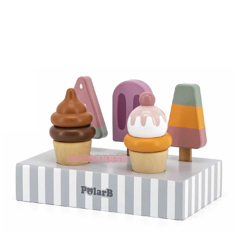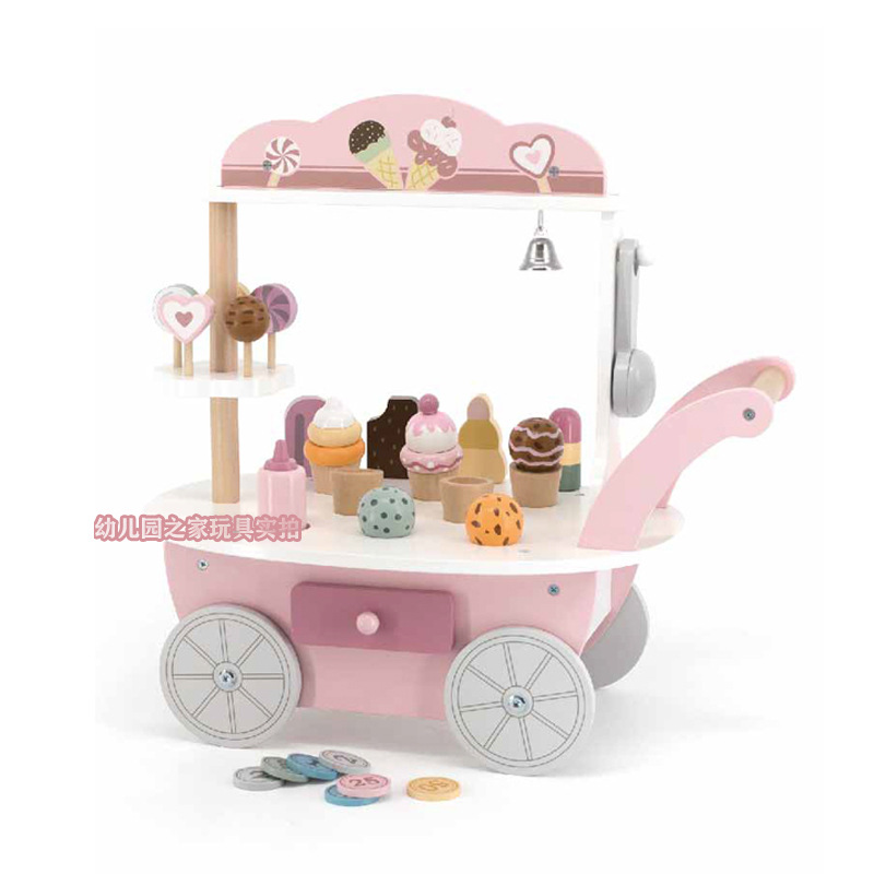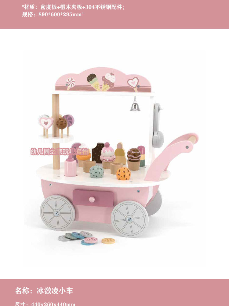 폴라비 홀리데이 하우스 유치원 어린이 나무 놀이 집 장난감 아이스크림 판매 트롤리 및 카트 판매 책상