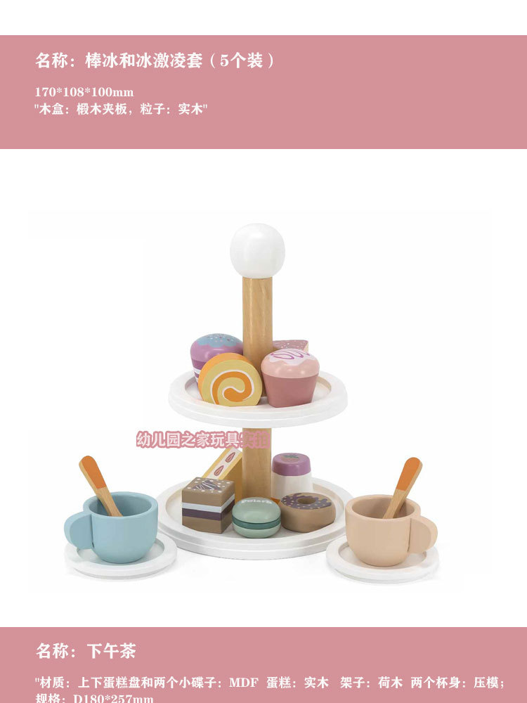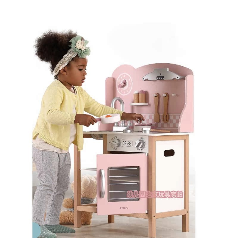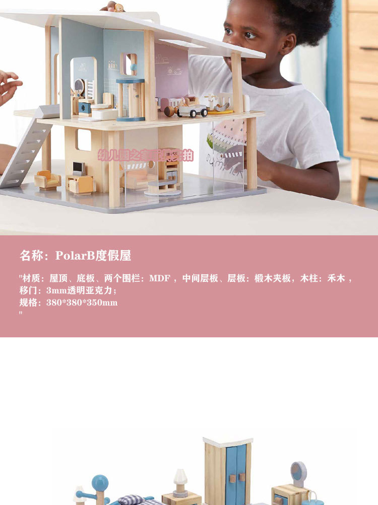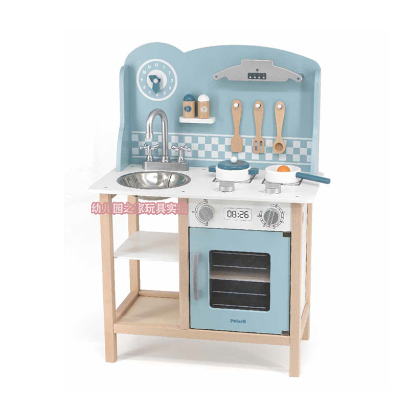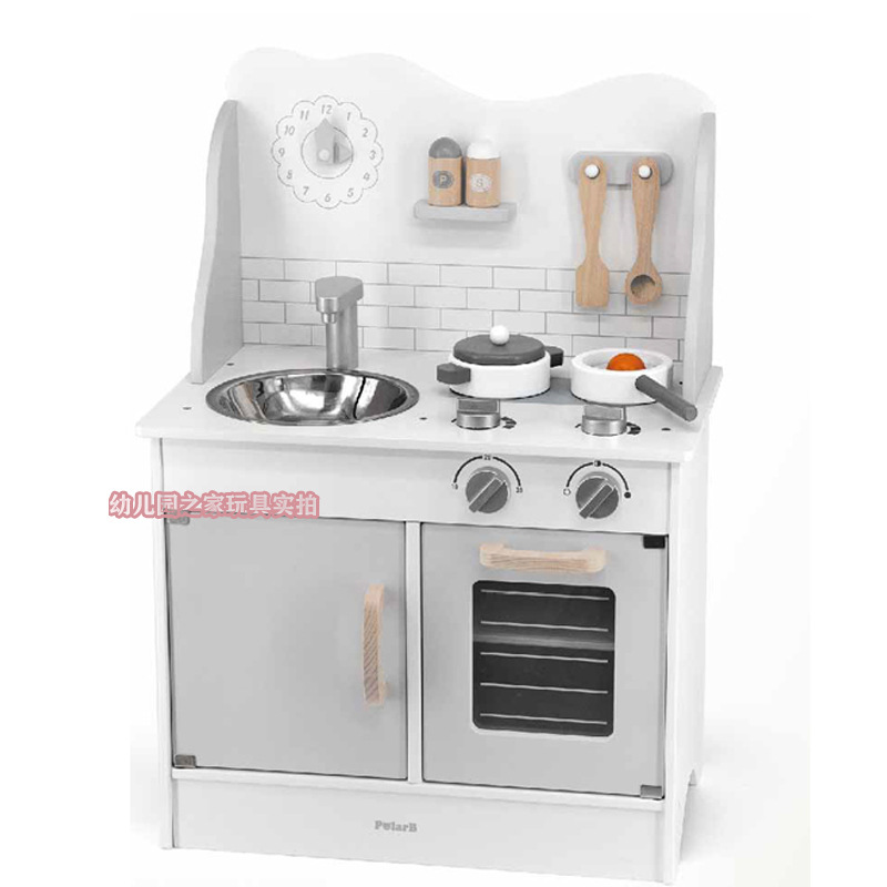 폴라비 홀리데이 하우스 유치원 어린이 나무 놀이 집 장난감 아이스크림 판매 트롤리 및 카트 판매 책상