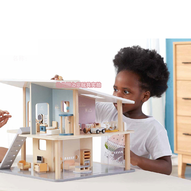 폴라비 홀리데이 하우스 유치원 어린이 나무 놀이 집 장난감 아이스크림 판매 트롤리 및 카트 판매 책상스토어 가기