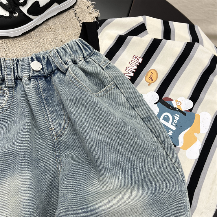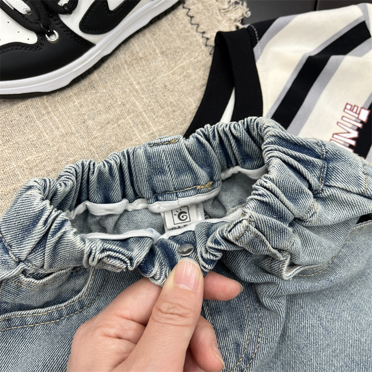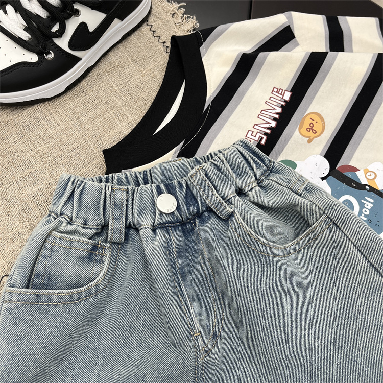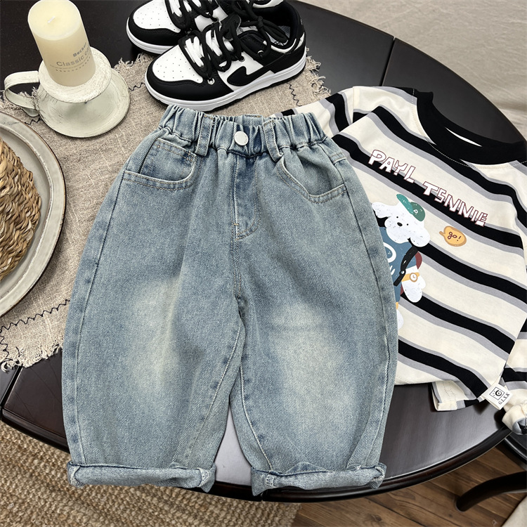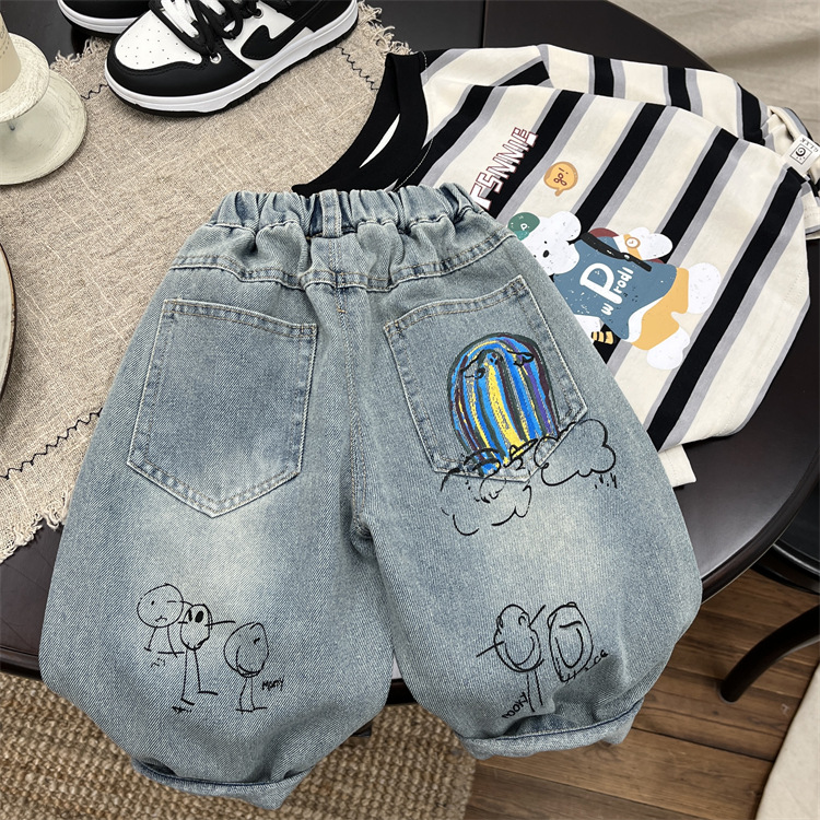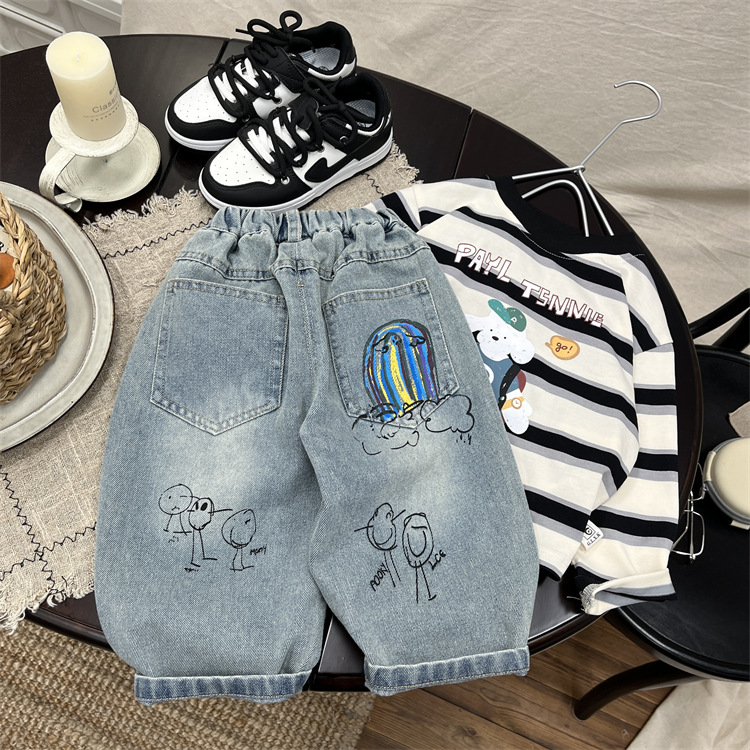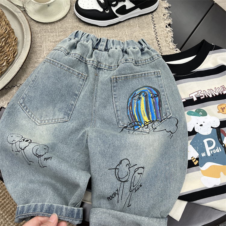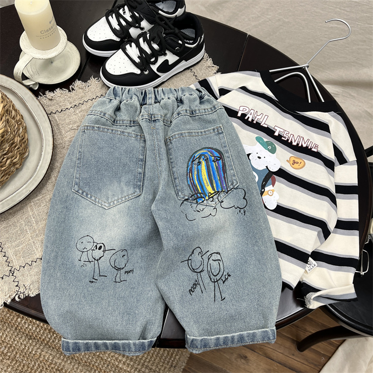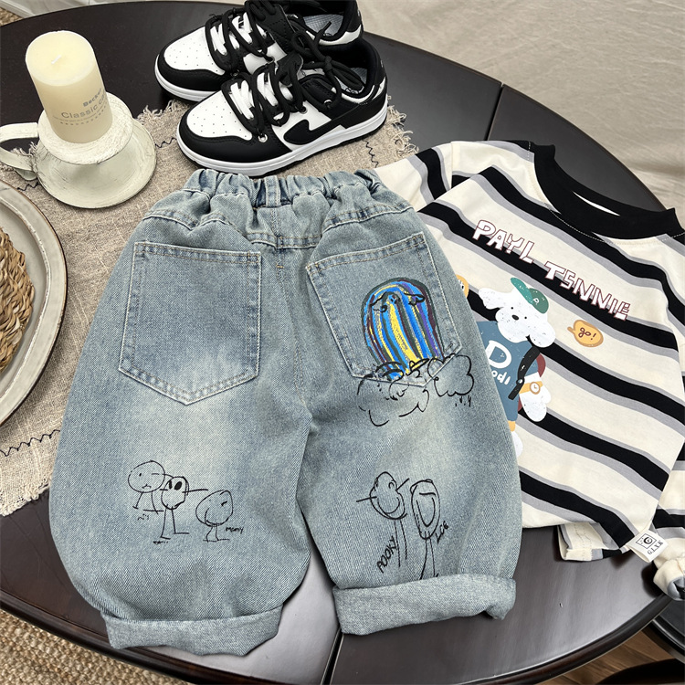 소년 가을 청바지 2025 가을 새로운 아기 만화 낙서 캐주얼 바지 유행 어린이 바지 스트레이트 바지스토어 가기
