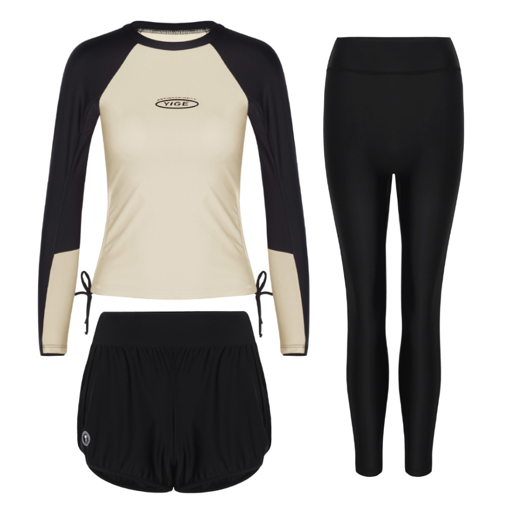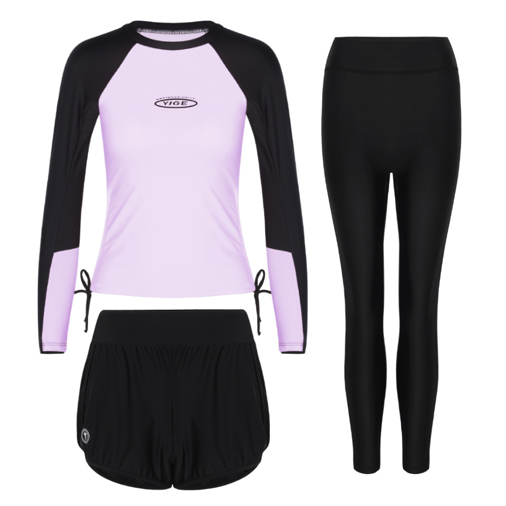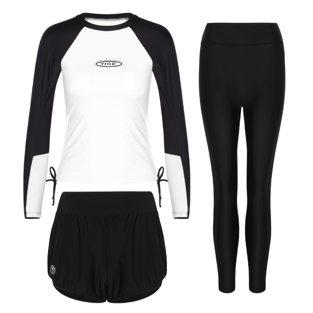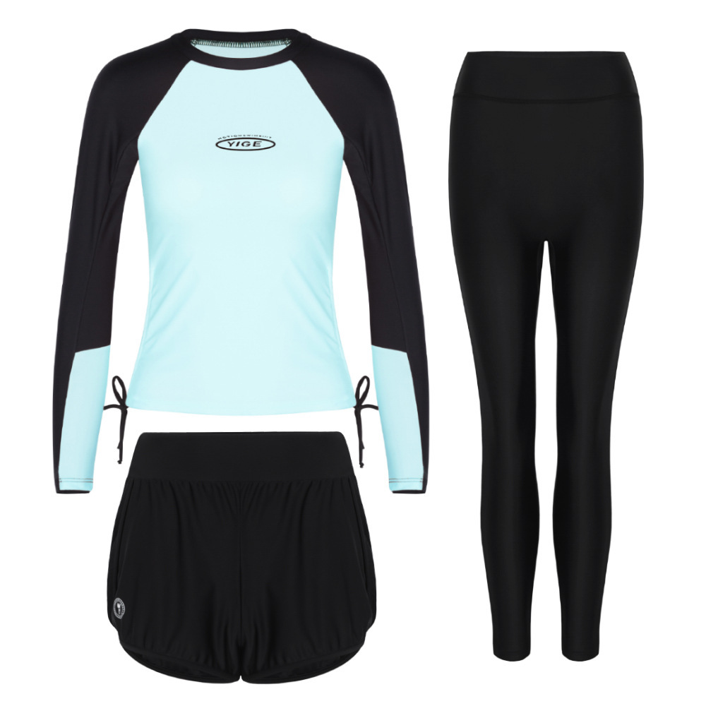 도매 숙녀 한국 긴 소매 분할 선 스크린 슬리밍 세트 보수적 인 휴가 서핑 수트 수영복스토어 가기