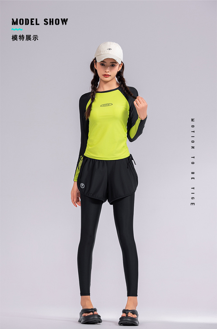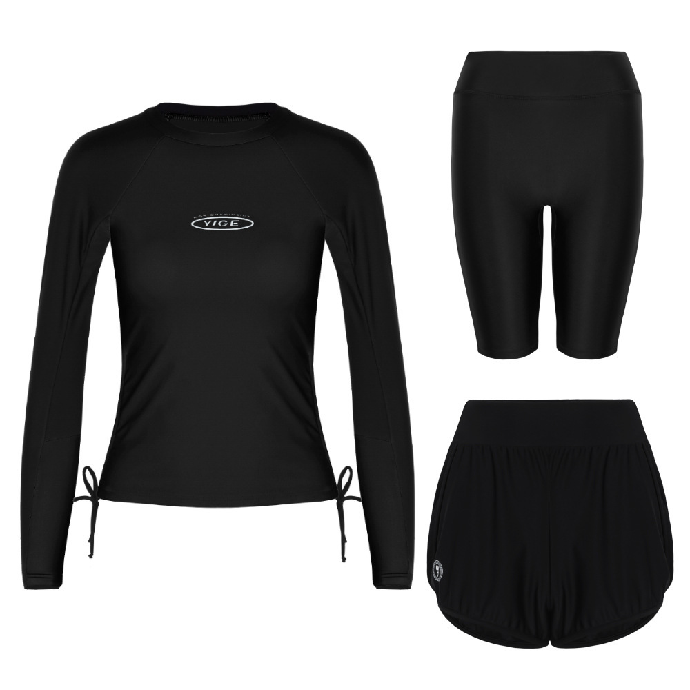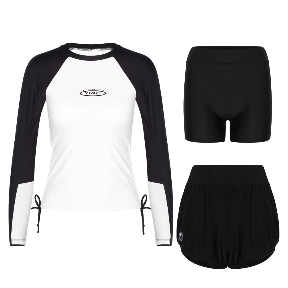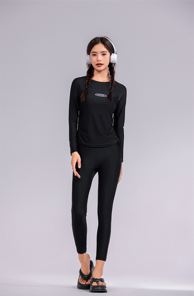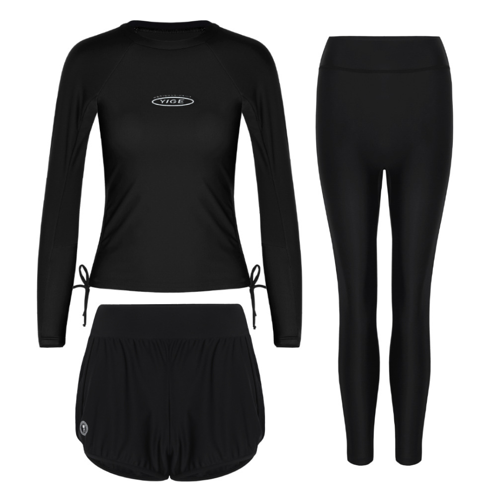 도매 숙녀 한국 긴 소매 분할 선 스크린 슬리밍 세트 보수적 인 휴가 서핑 수트 수영복스토어 가기