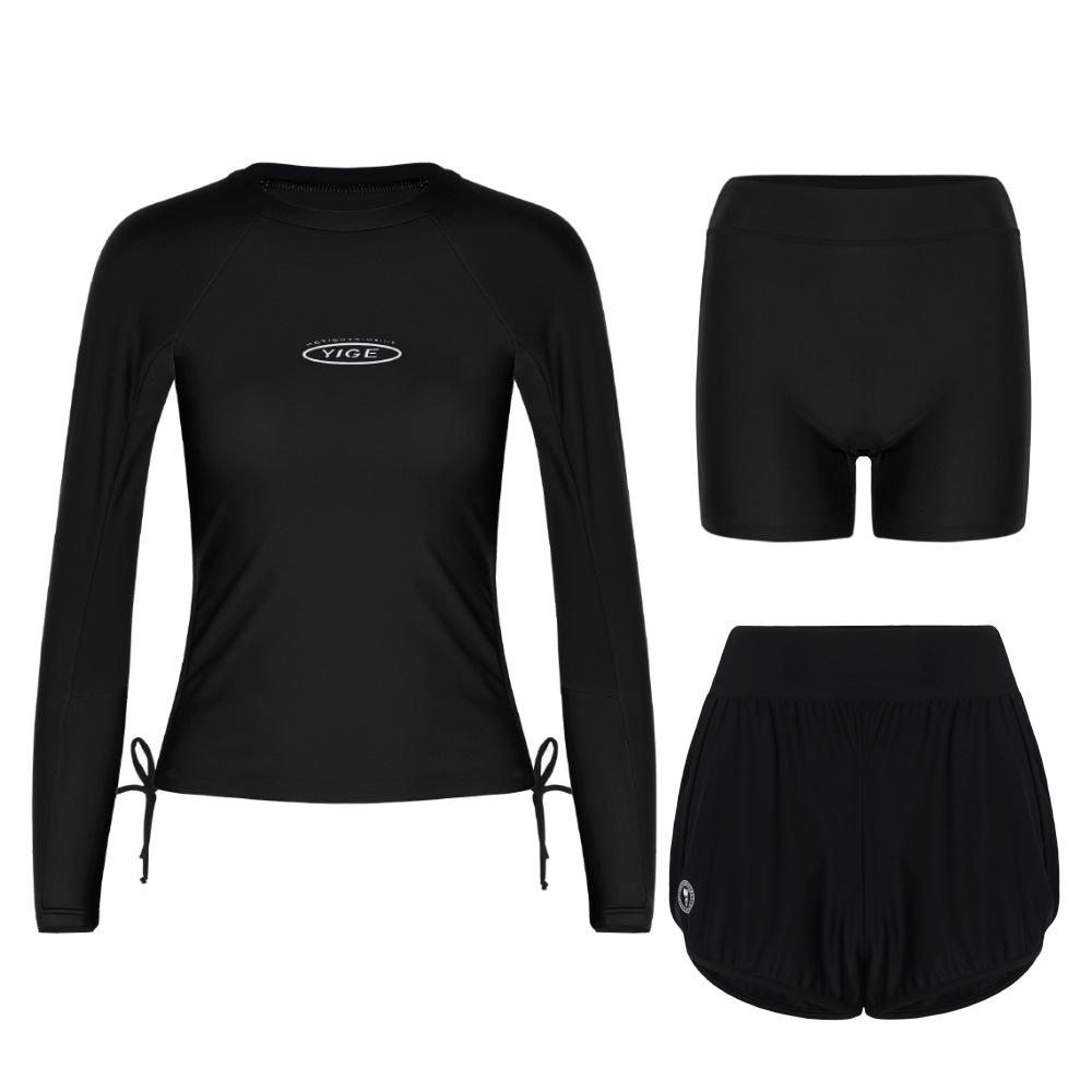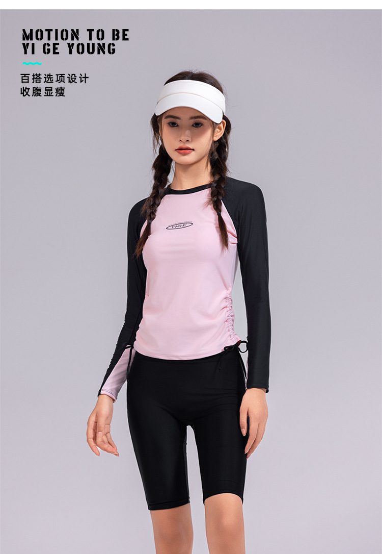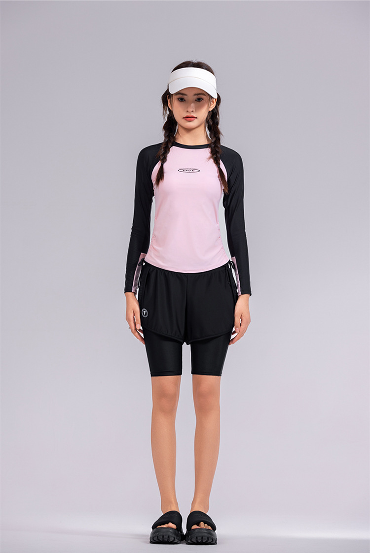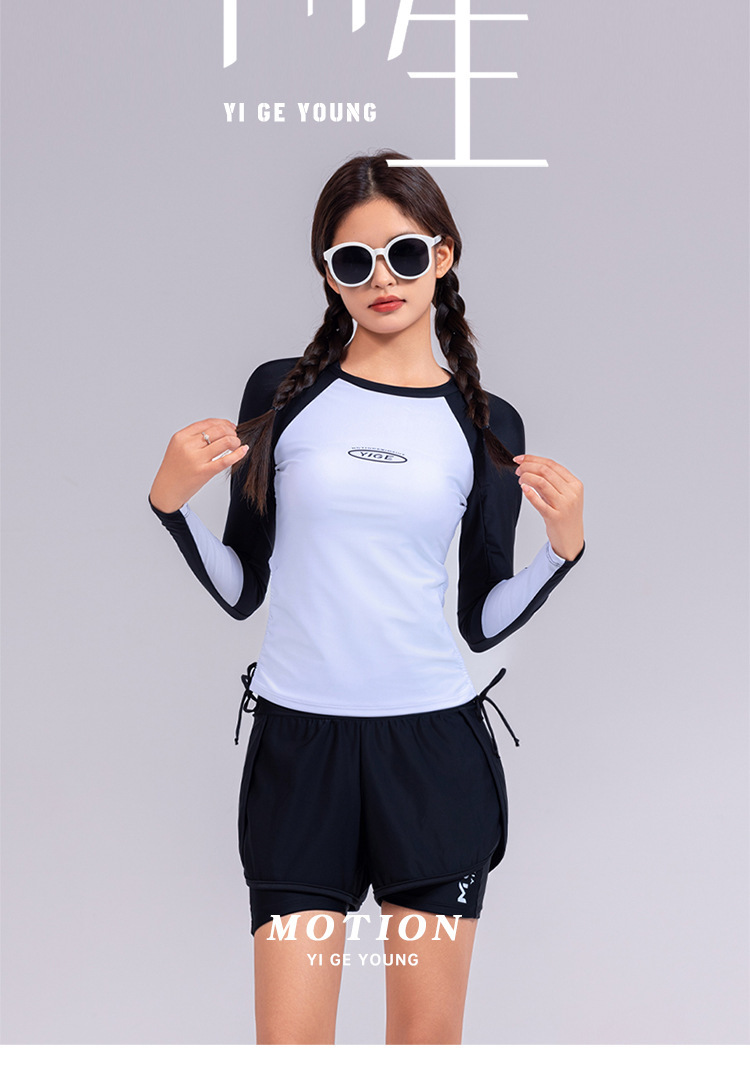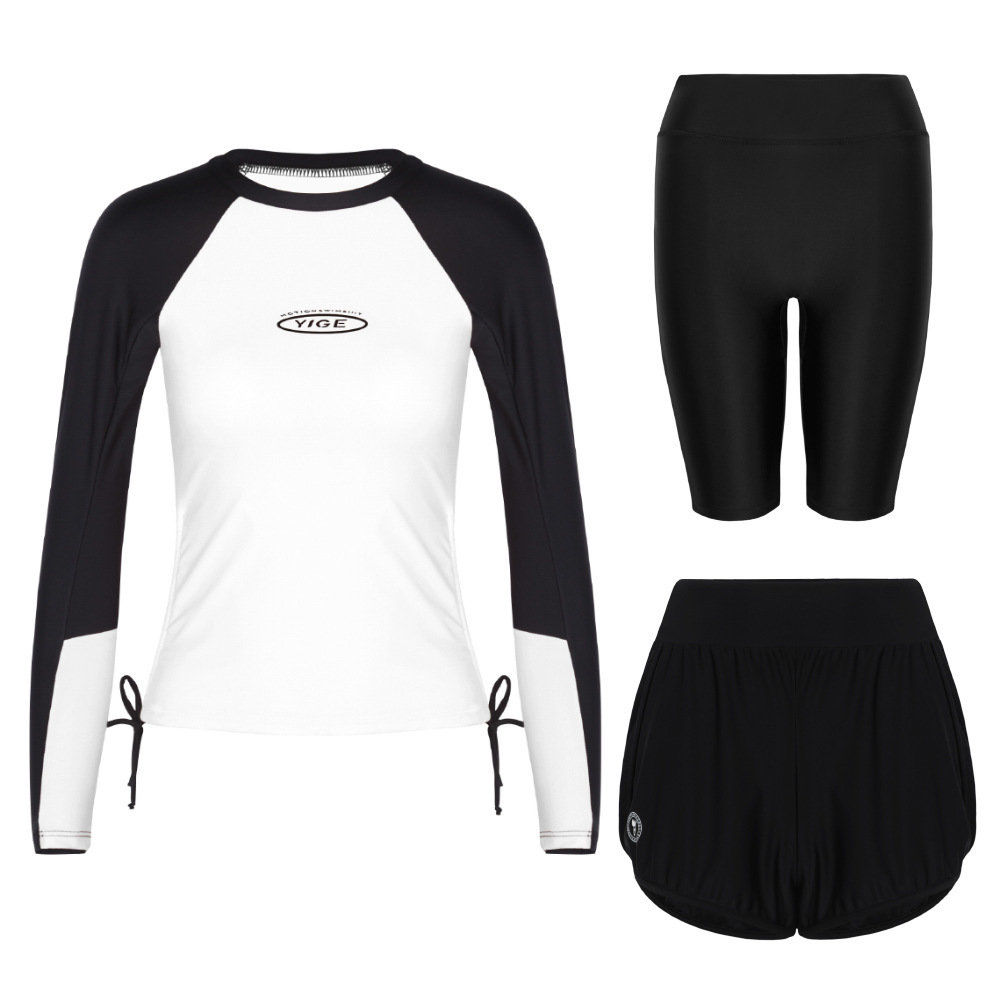 도매 숙녀 한국 긴 소매 분할 선 스크린 슬리밍 세트 보수적 인 휴가 서핑 수트 수영복스토어 가기