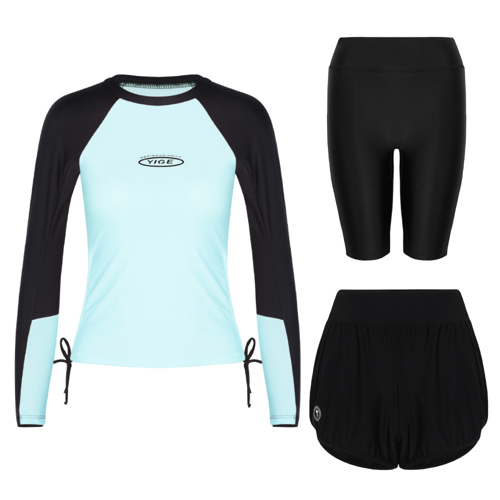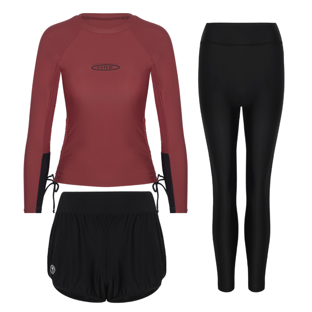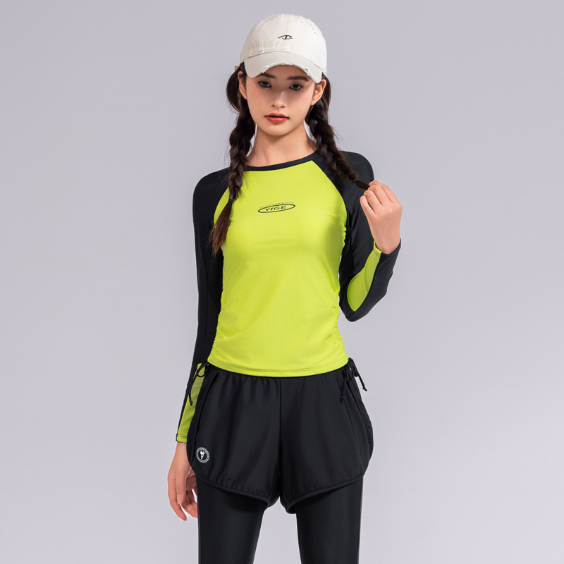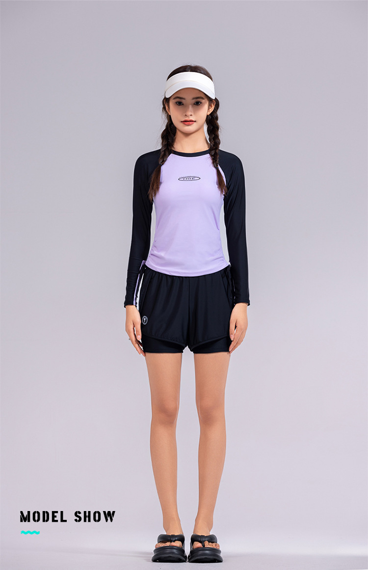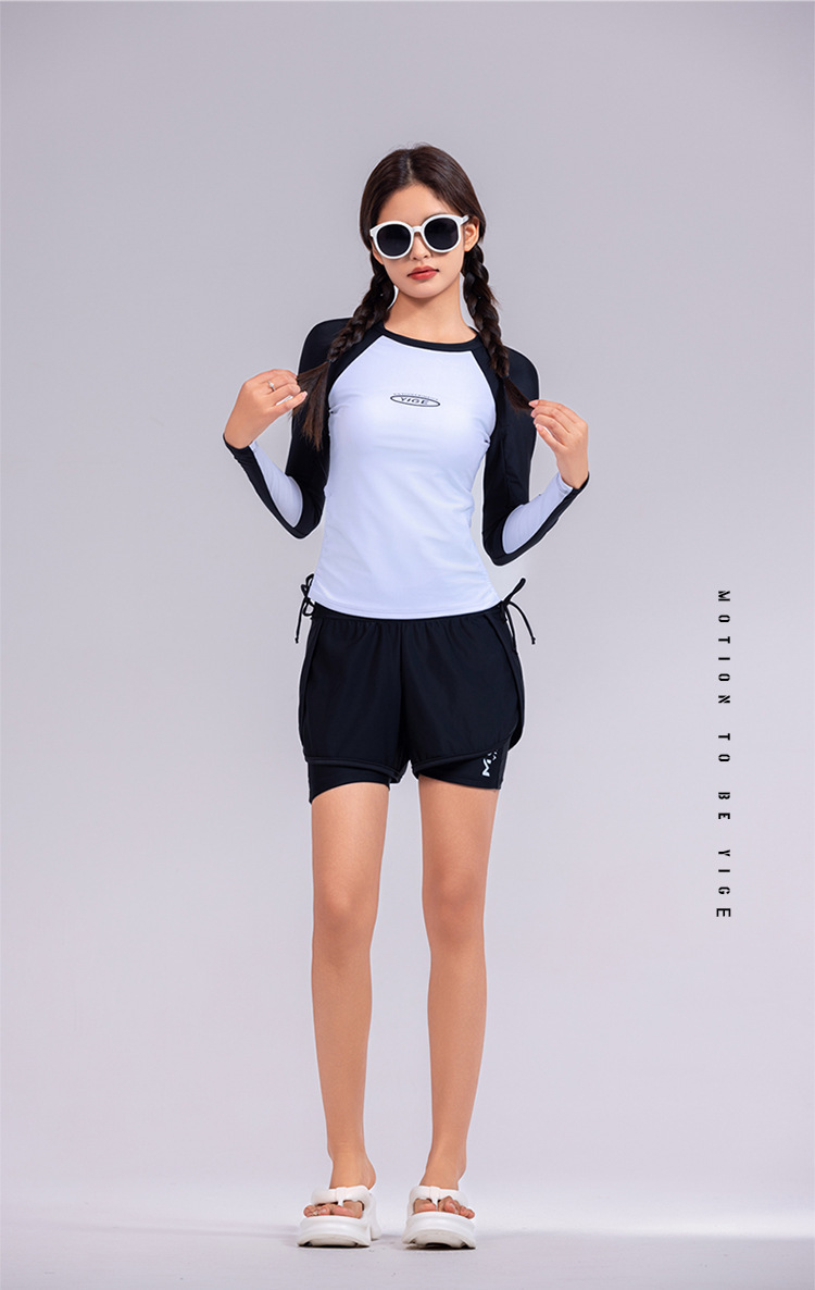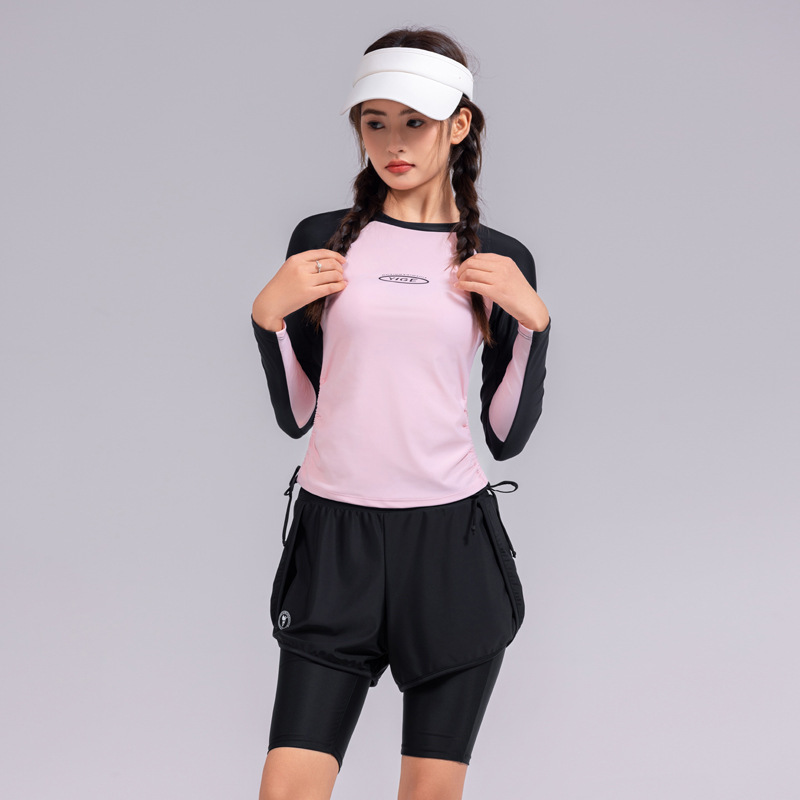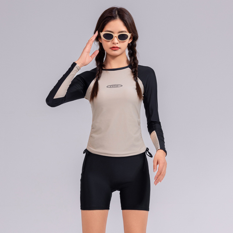 도매 숙녀 한국 긴 소매 분할 선 스크린 슬리밍 세트 보수적 인 휴가 서핑 수트 수영복