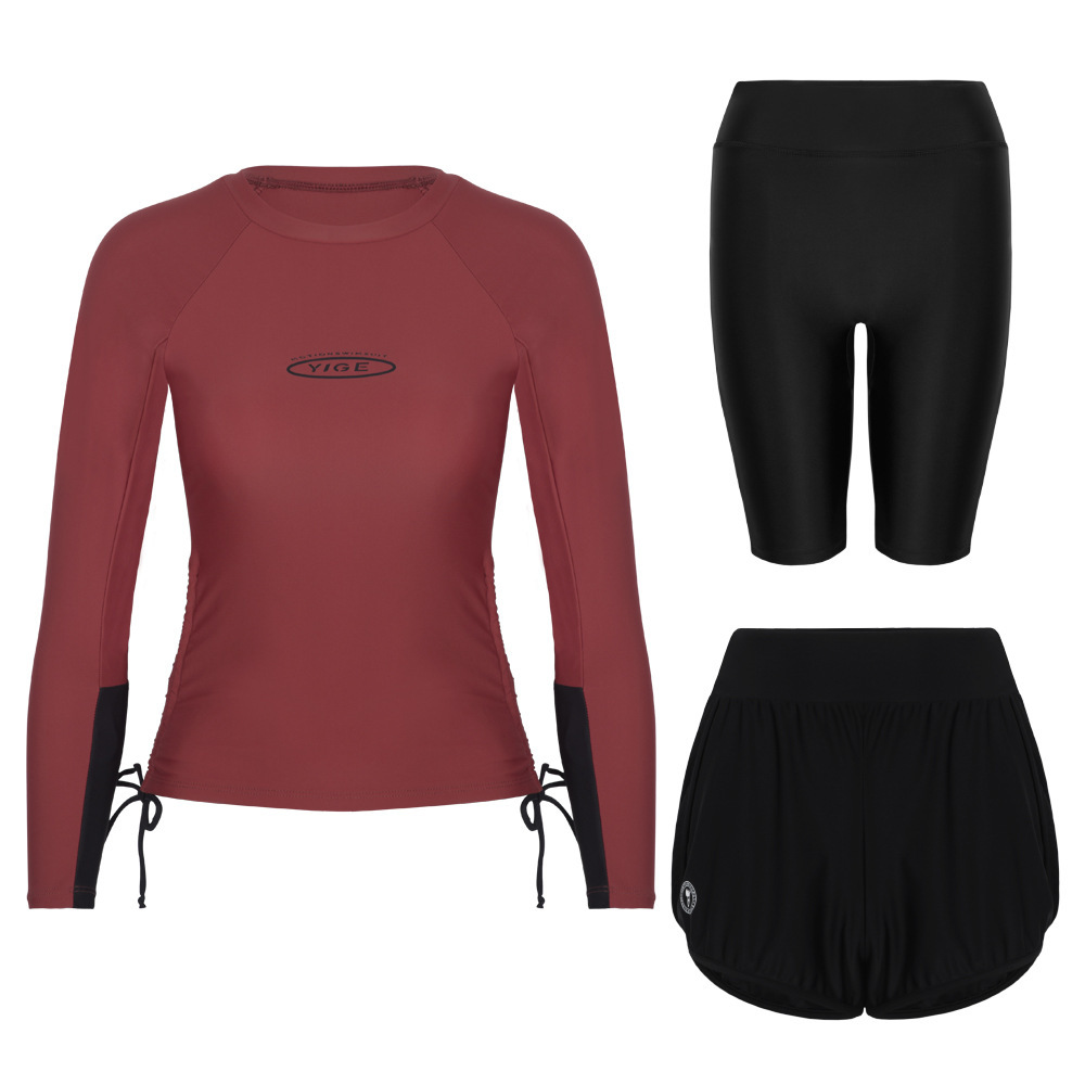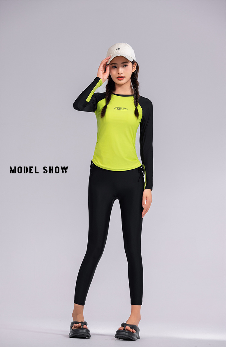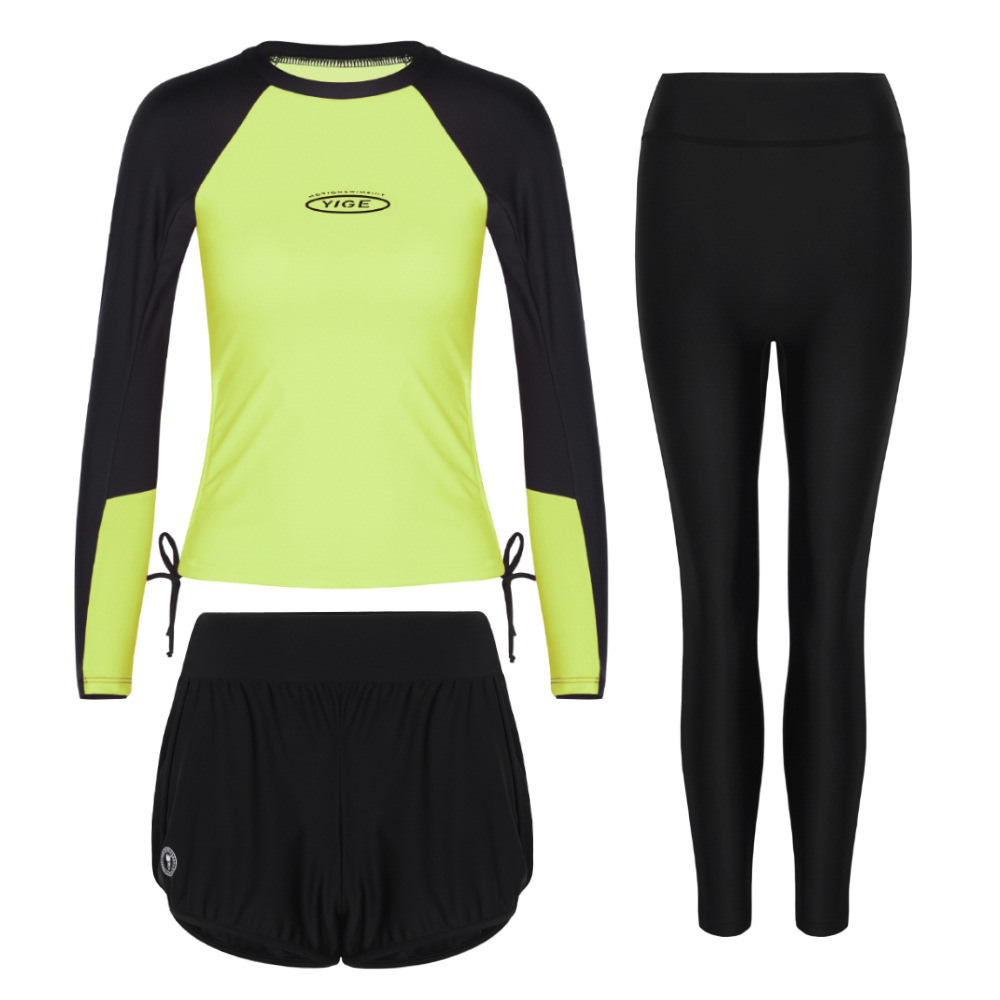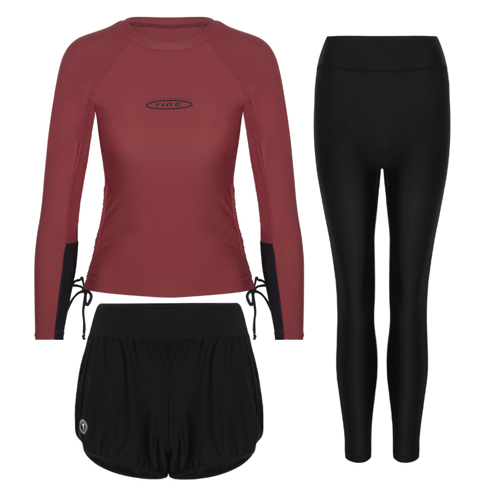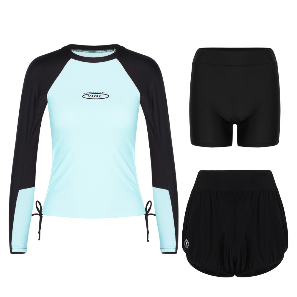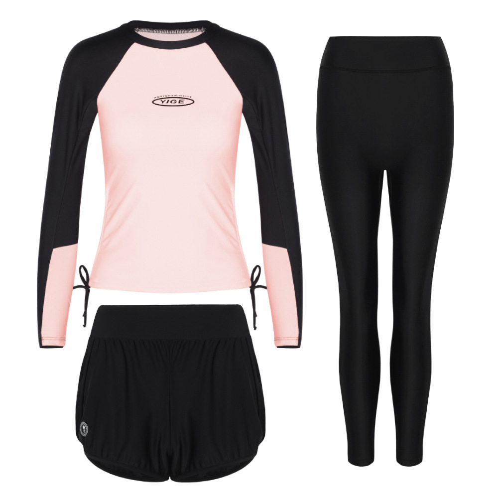 도매 숙녀 한국 긴 소매 분할 선 스크린 슬리밍 세트 보수적 인 휴가 서핑 수트 수영복