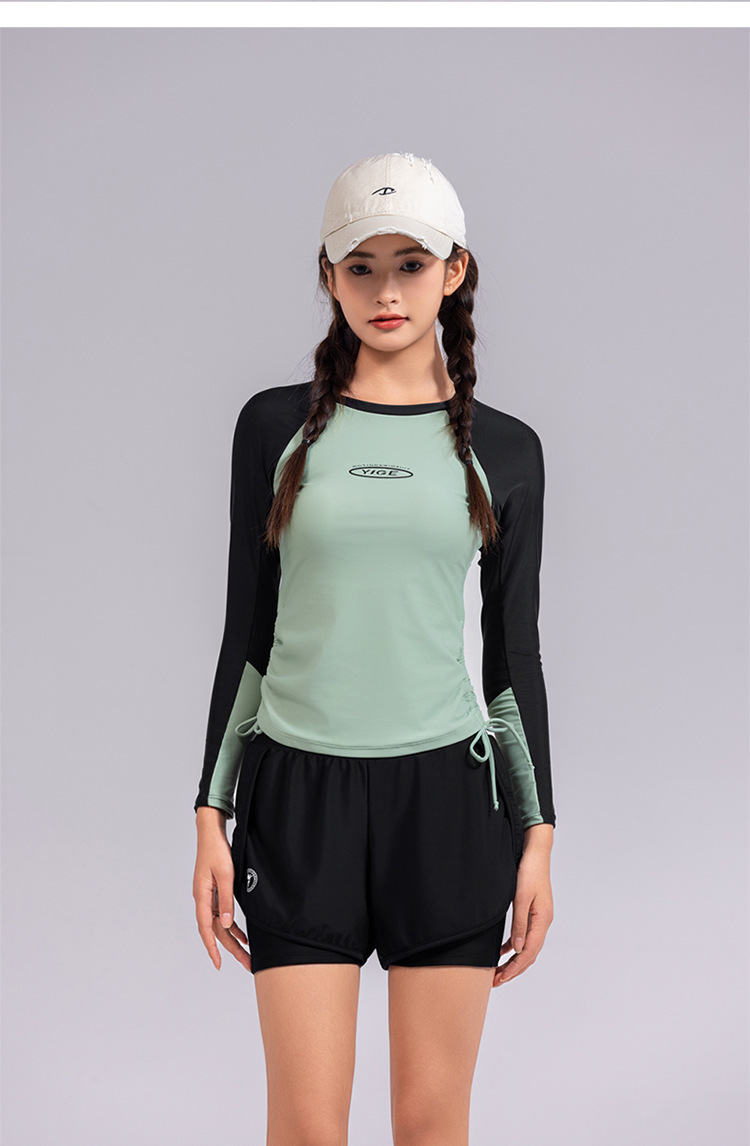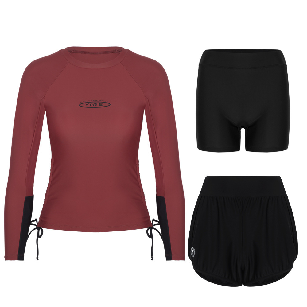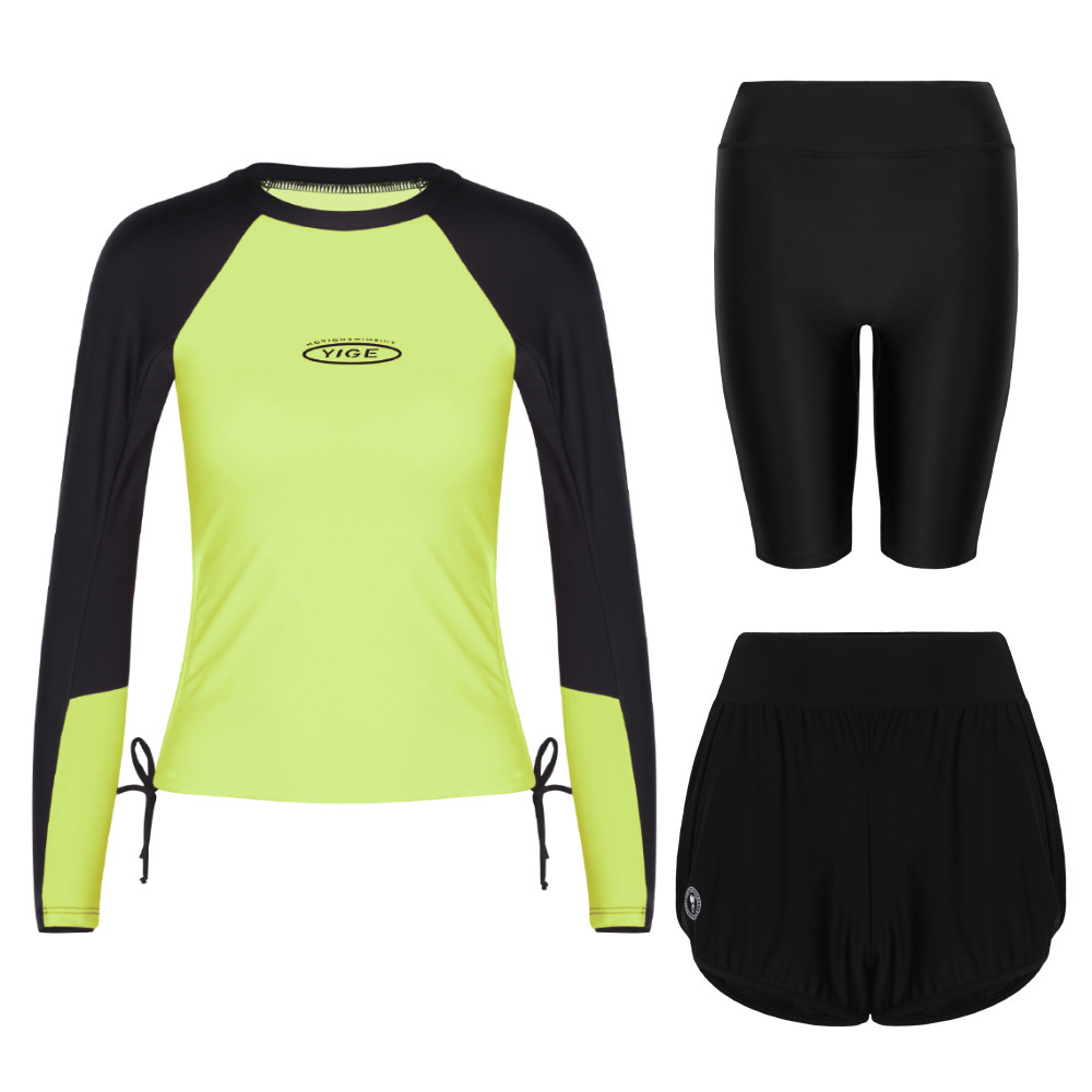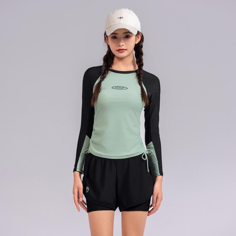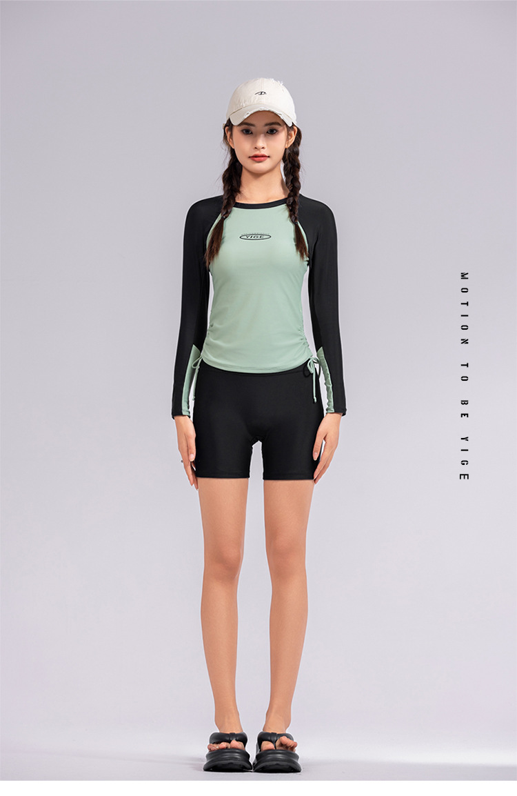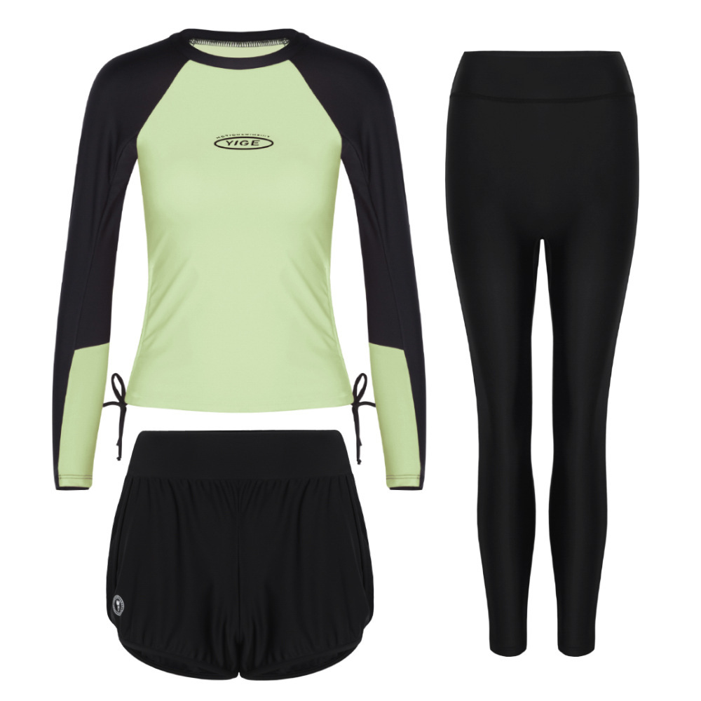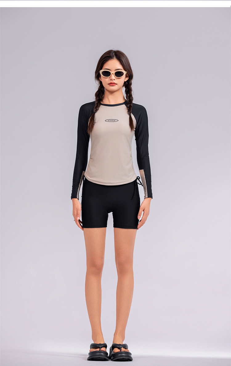도매 숙녀 한국 긴 소매 분할 선 스크린 슬리밍 세트 보수적 인 휴가 서핑 수트 수영복