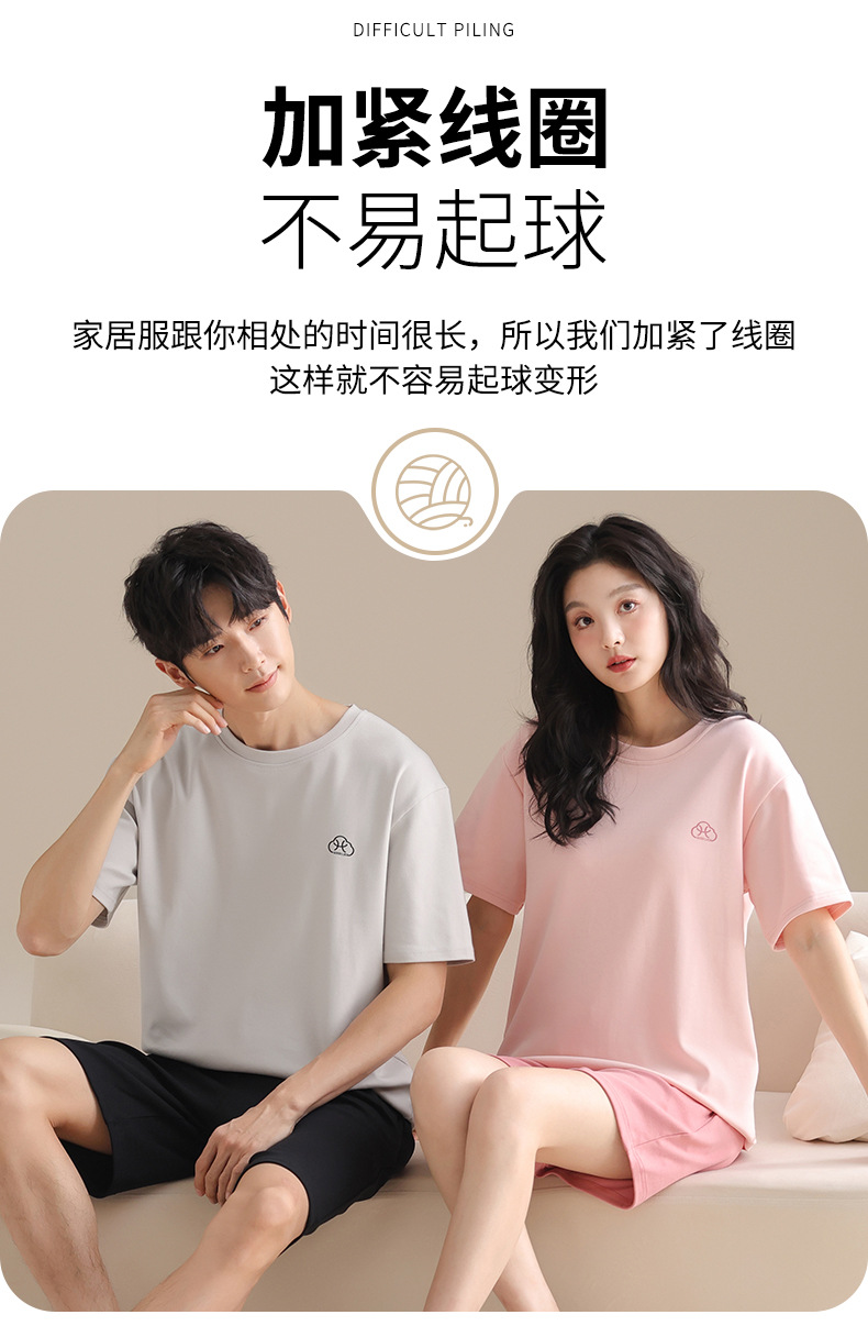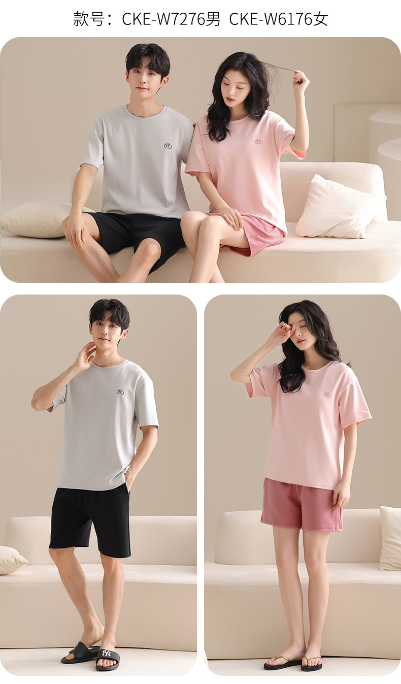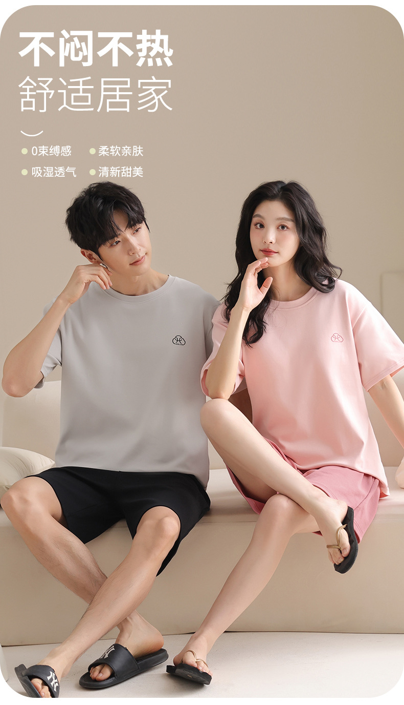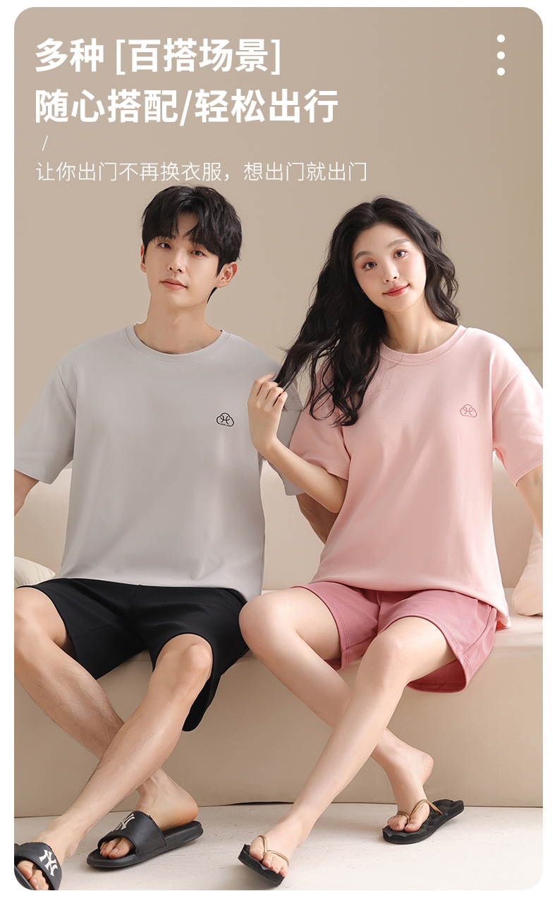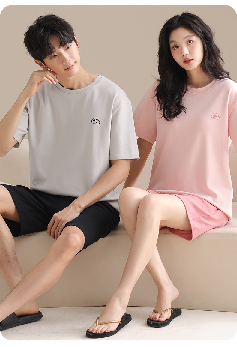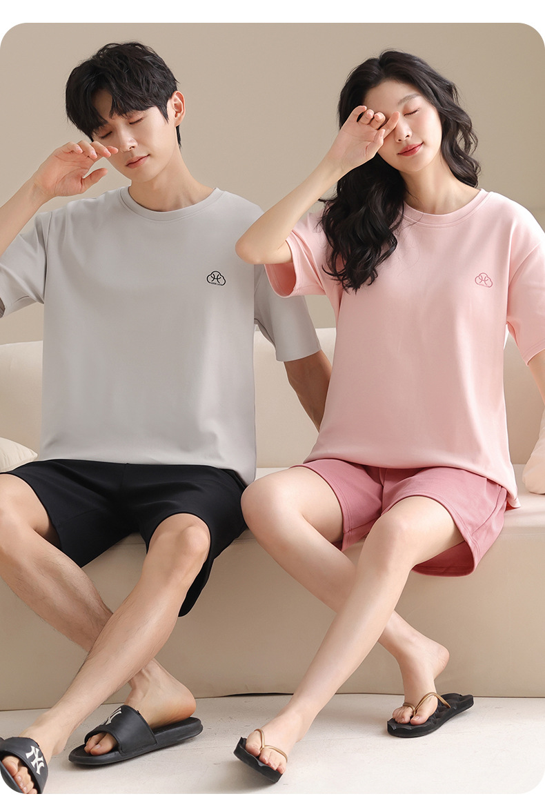 커플 잠옷 여성의 순면 풀오버 반팔 세트 여름 빛 스포츠 스타일 간단한 캐주얼 아웃웨어 홈 의류 남성용스토어 가기