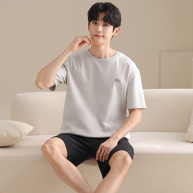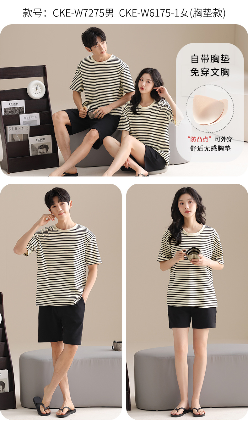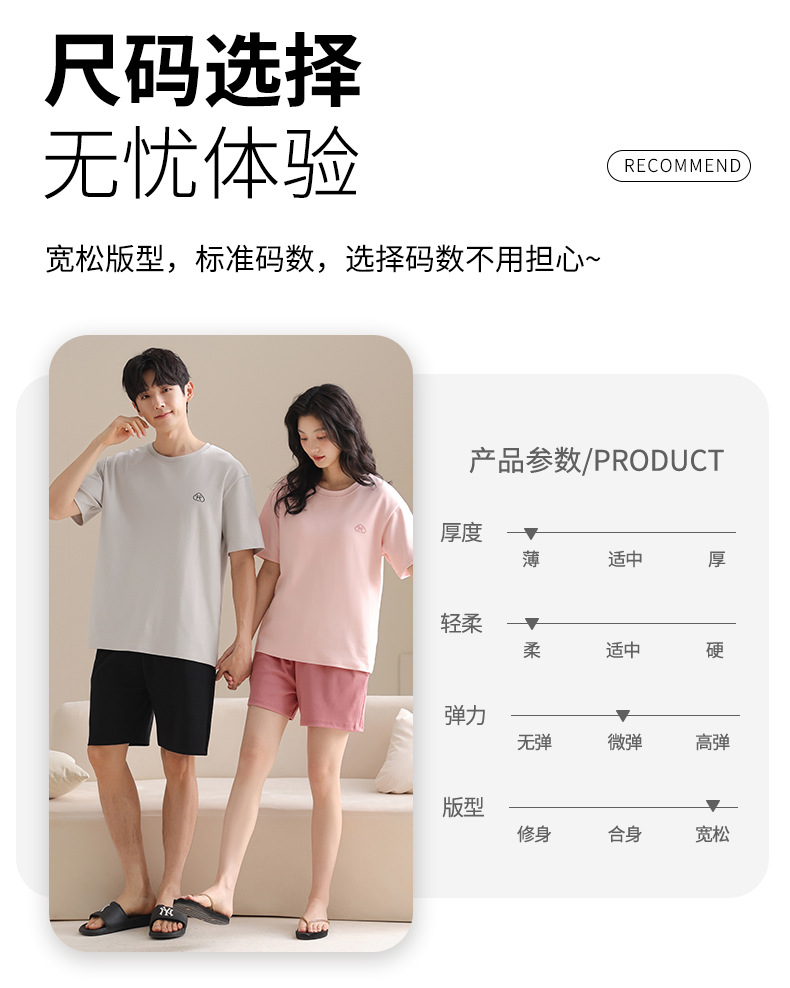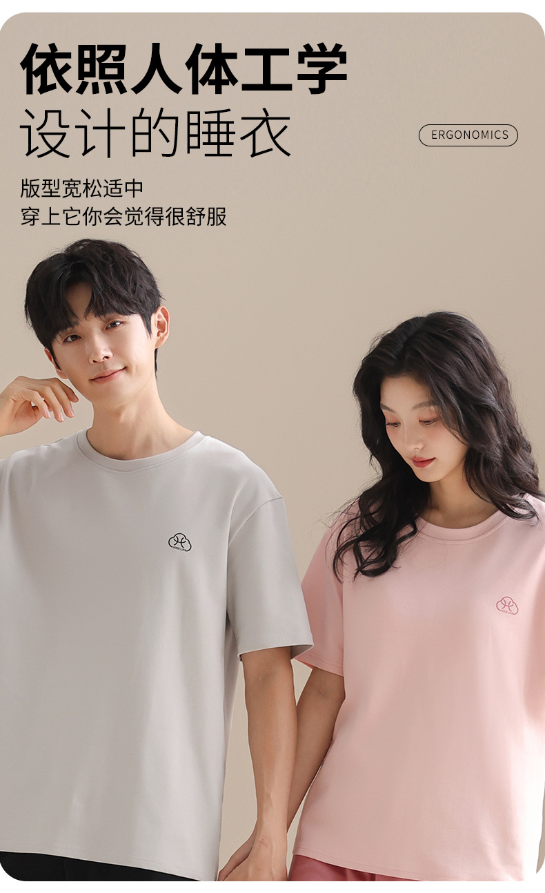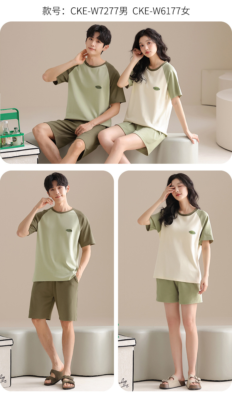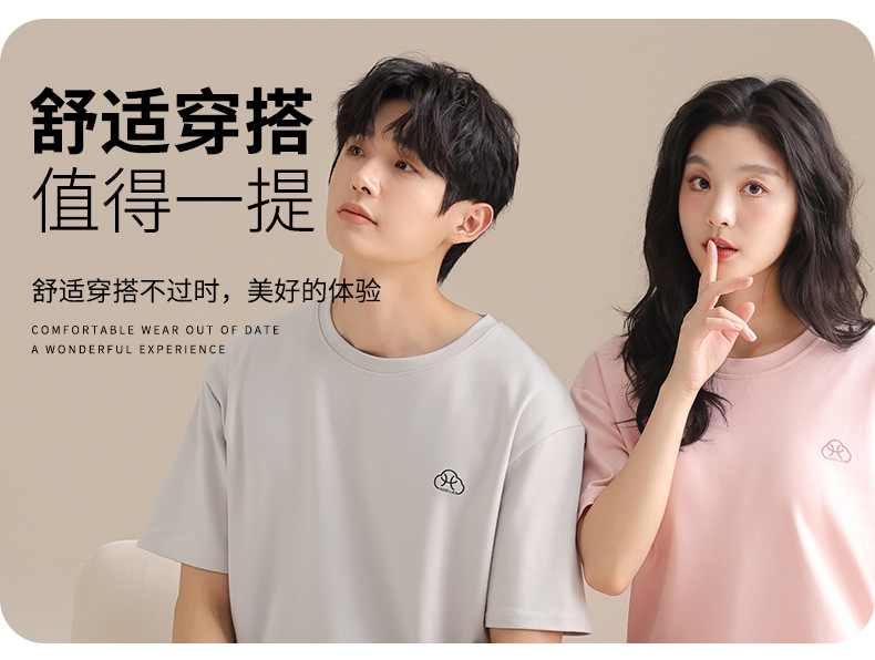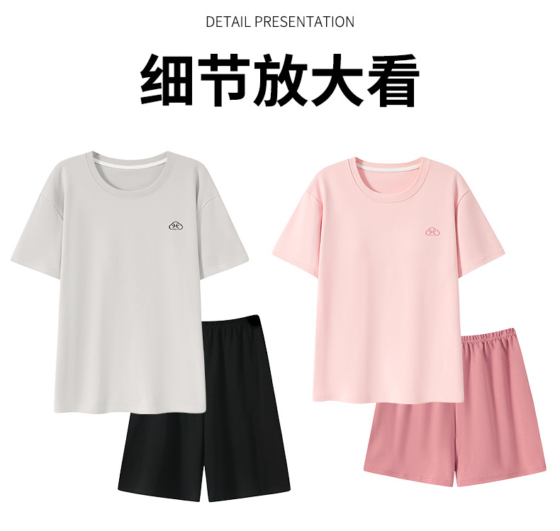 커플 잠옷 여성의 순면 풀오버 반팔 세트 여름 빛 스포츠 스타일 간단한 캐주얼 아웃웨어 홈 의류 남성용스토어 가기