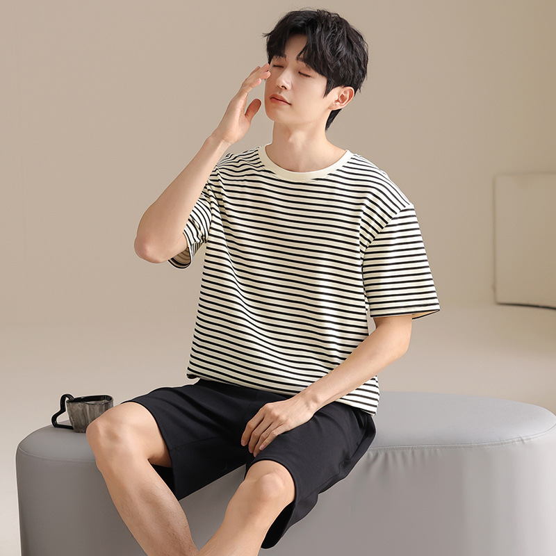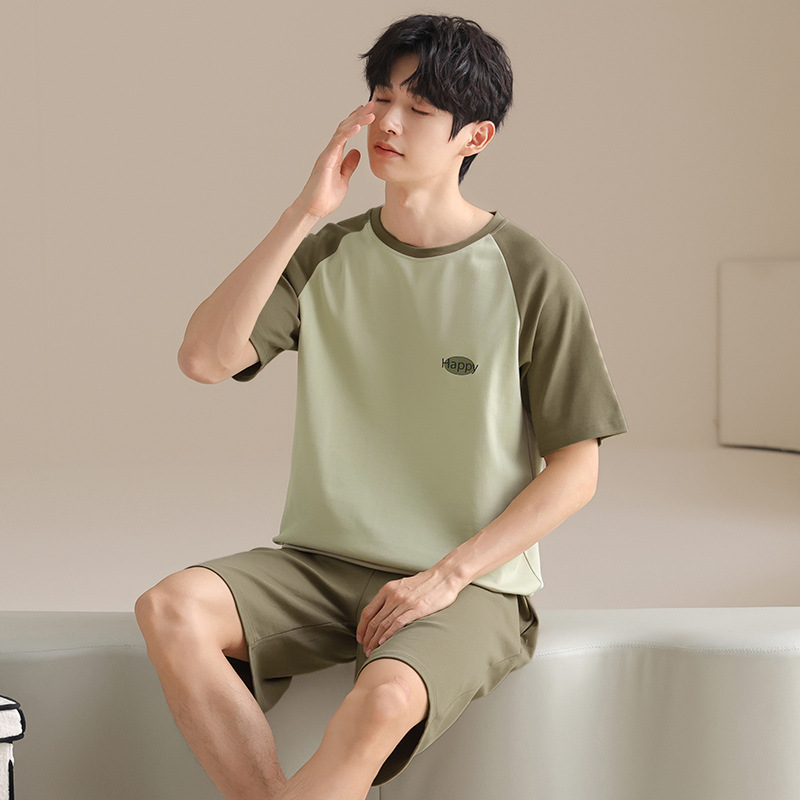 커플 잠옷 여성의 순면 풀오버 반팔 세트 여름 빛 스포츠 스타일 간단한 캐주얼 아웃웨어 홈 의류 남성용