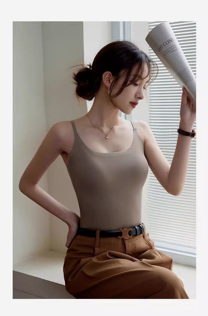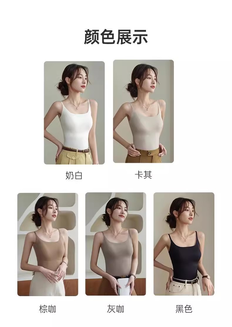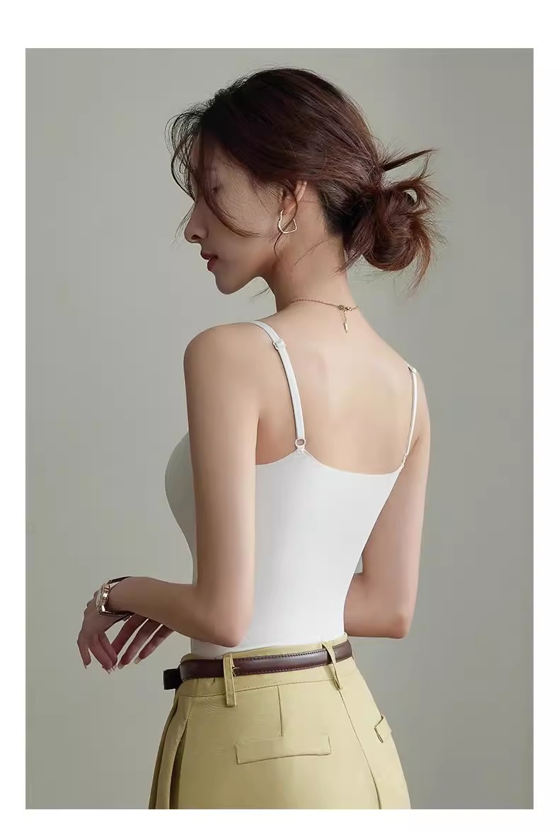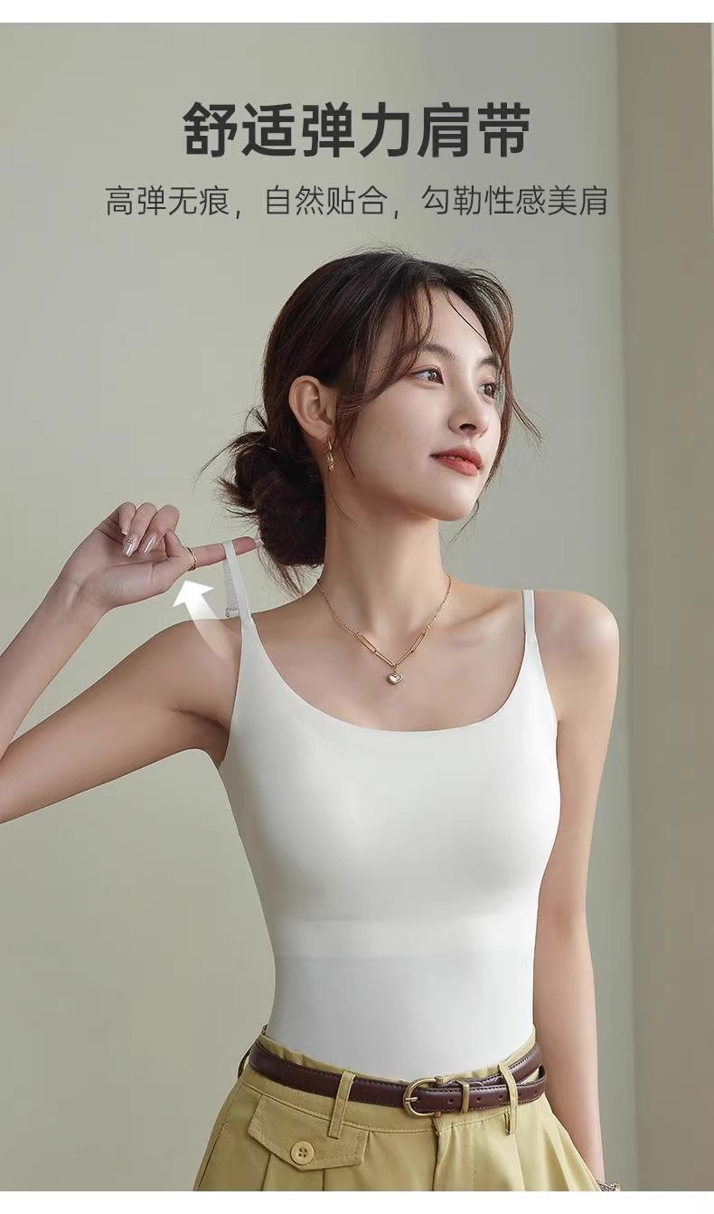 재고 6631 TikTok 폭발 없음 Mark Camisole 여성용 벨트 가슴 패드베이스 통합 고정 내부 착용 아름다움 뒤로 외부 착용