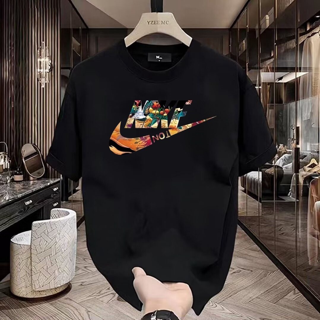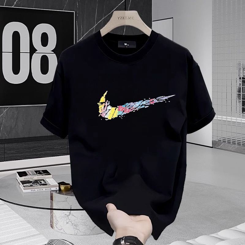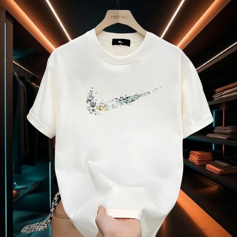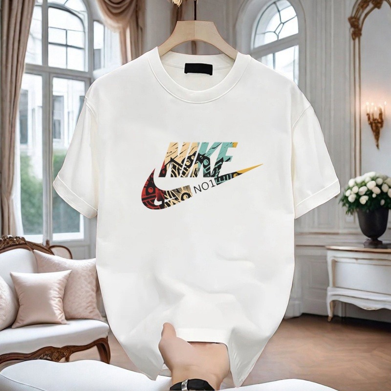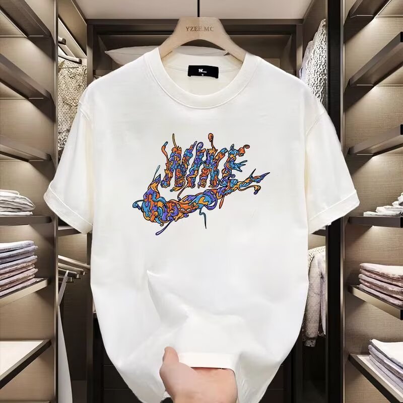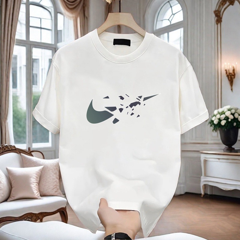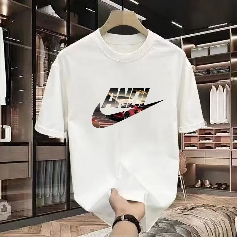 트렌디 브랜드 퓨어 코튼 체크 반팔 화이트 티셔츠 남자 한국식 스포츠 레저 반소매 커플의 느슨한 올 매치 티셔츠스토어 가기
