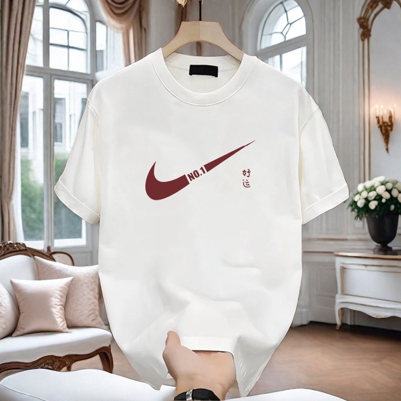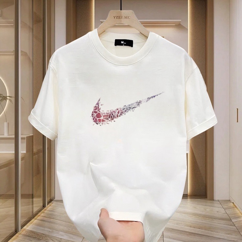 트렌디 브랜드 퓨어 코튼 체크 반팔 화이트 티셔츠 남자 한국식 스포츠 레저 반소매 커플의 느슨한 올 매치 티셔츠