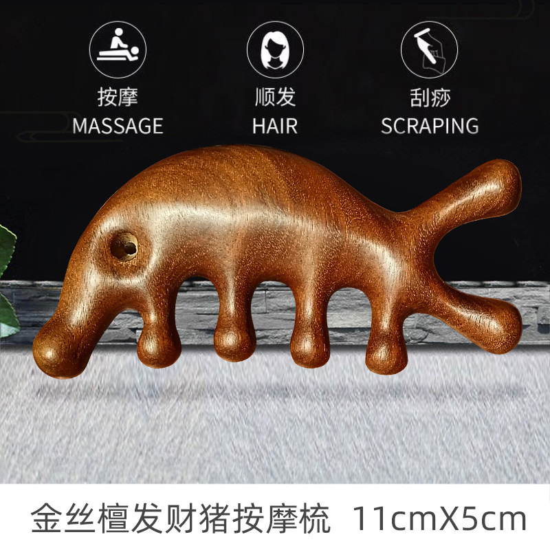 • 골드 와이어 지방 손 백단향 마사지 빗
