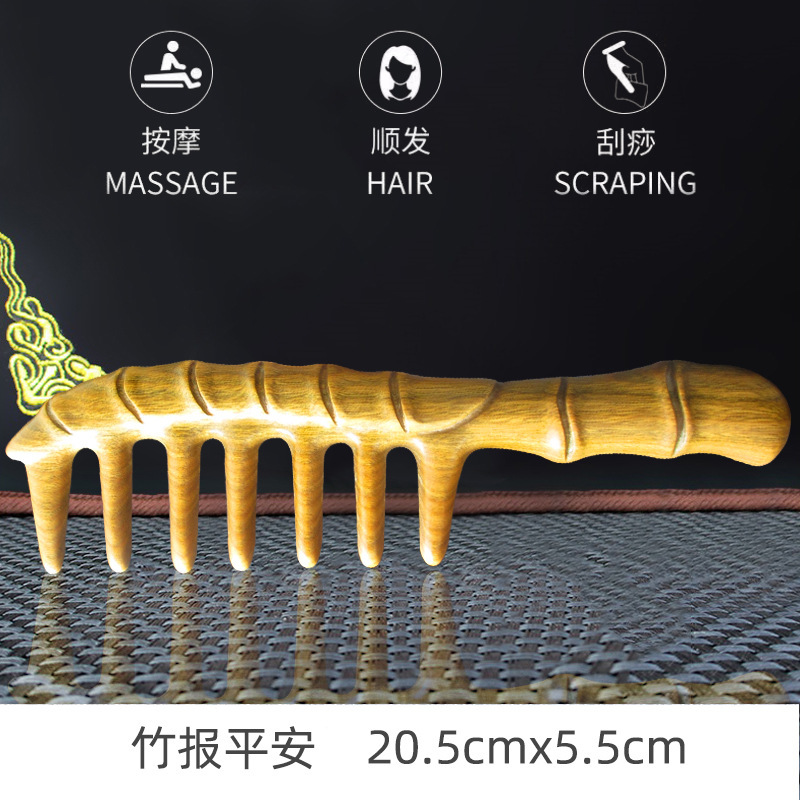 • 녹색 백단 대나무 평화 마사지 빗 20cm