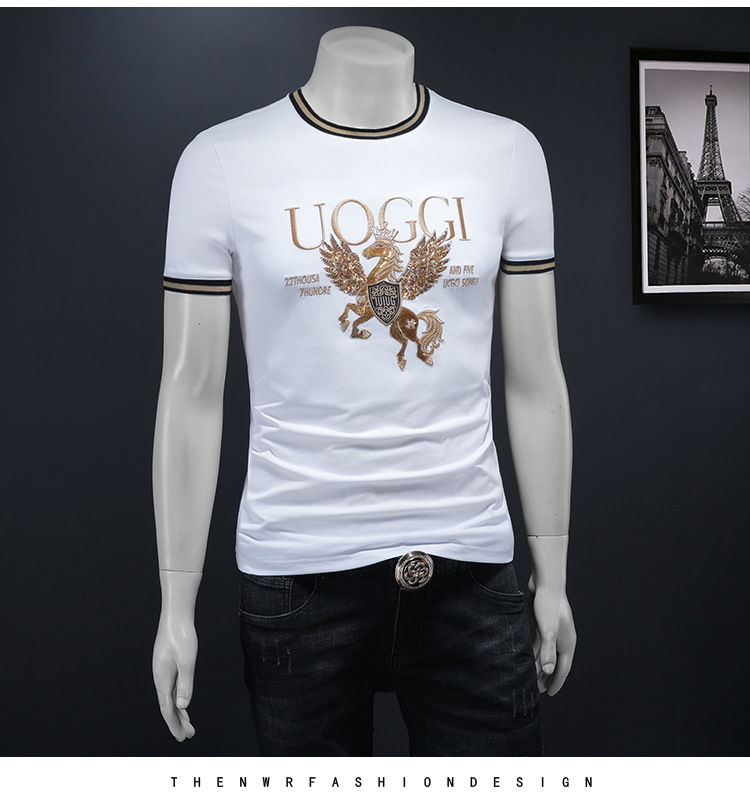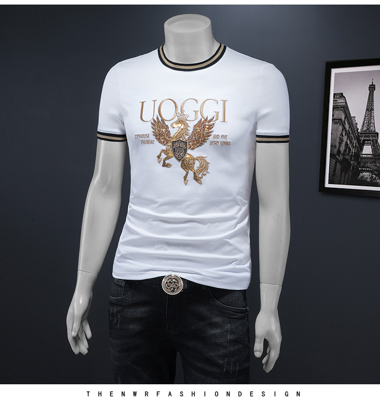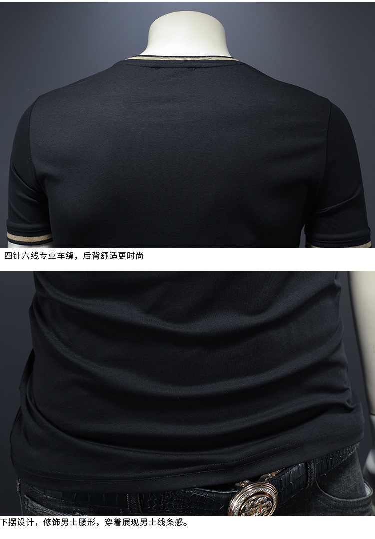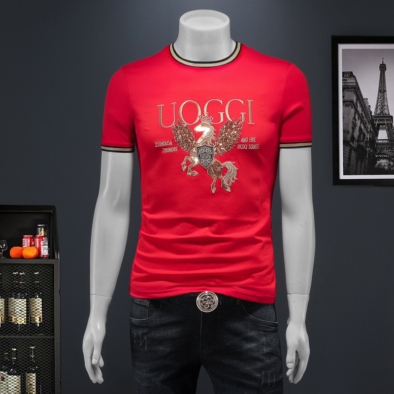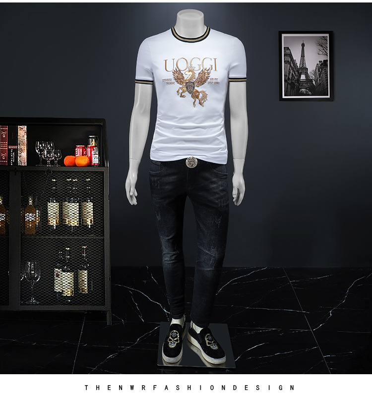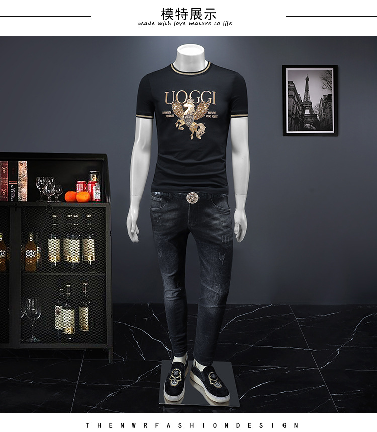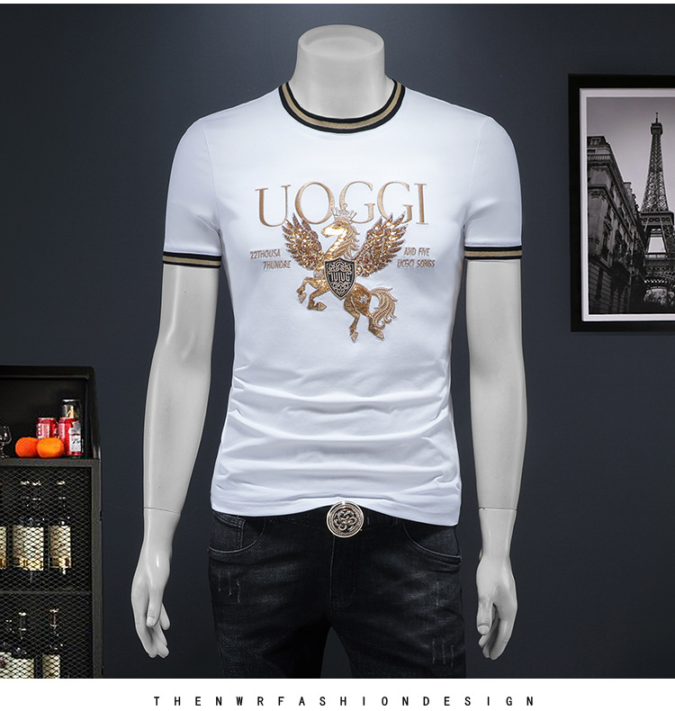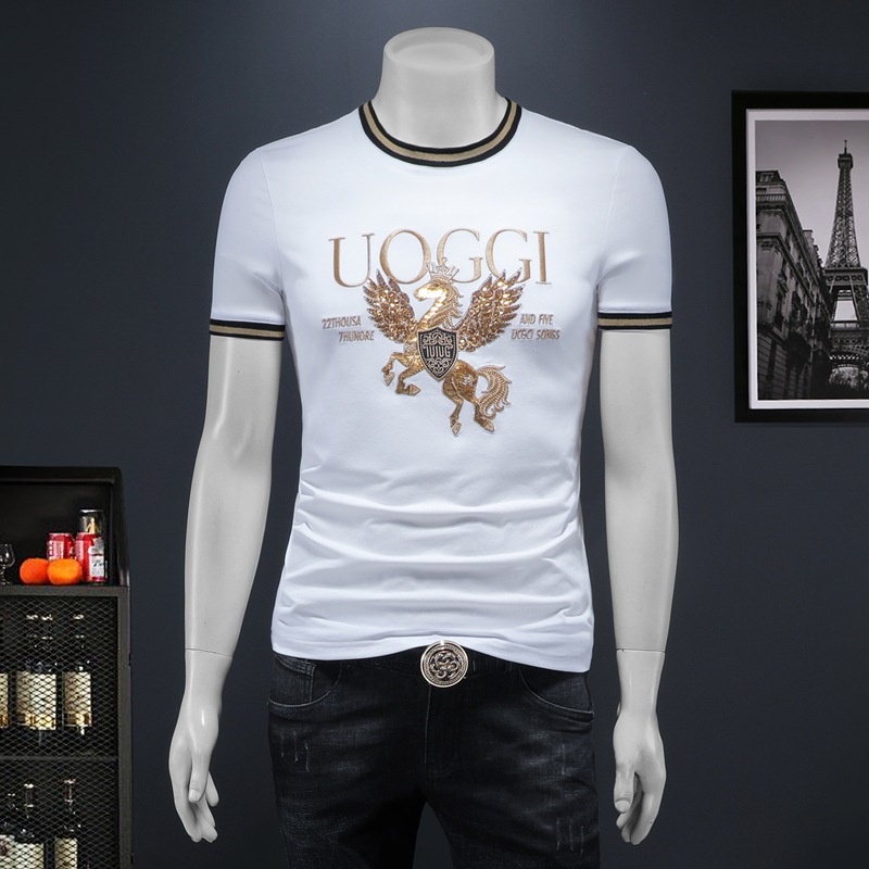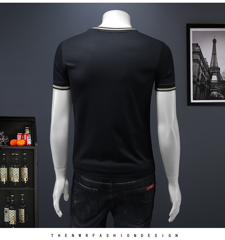 유럽 역 2025 남자 패션 캐주얼 올 매치 티셔츠 여름 슬림 핏 남자 새 티셔츠