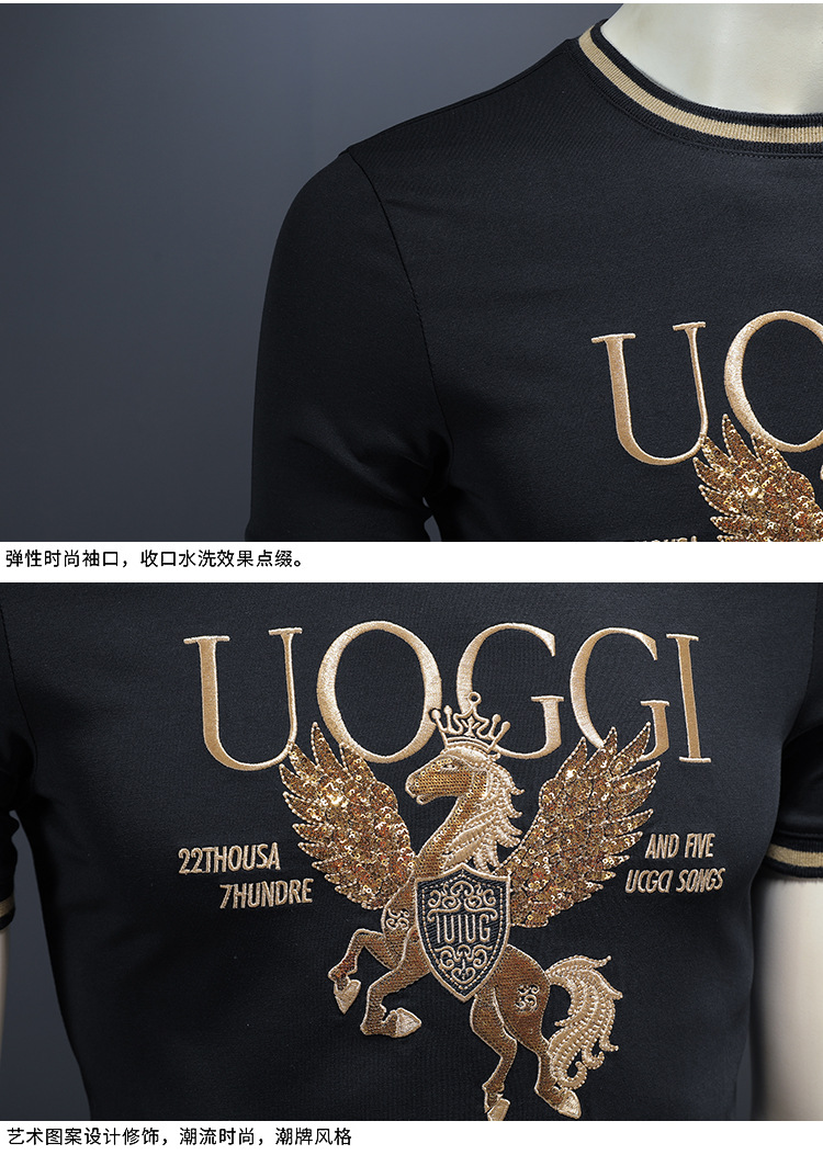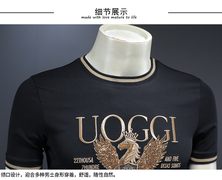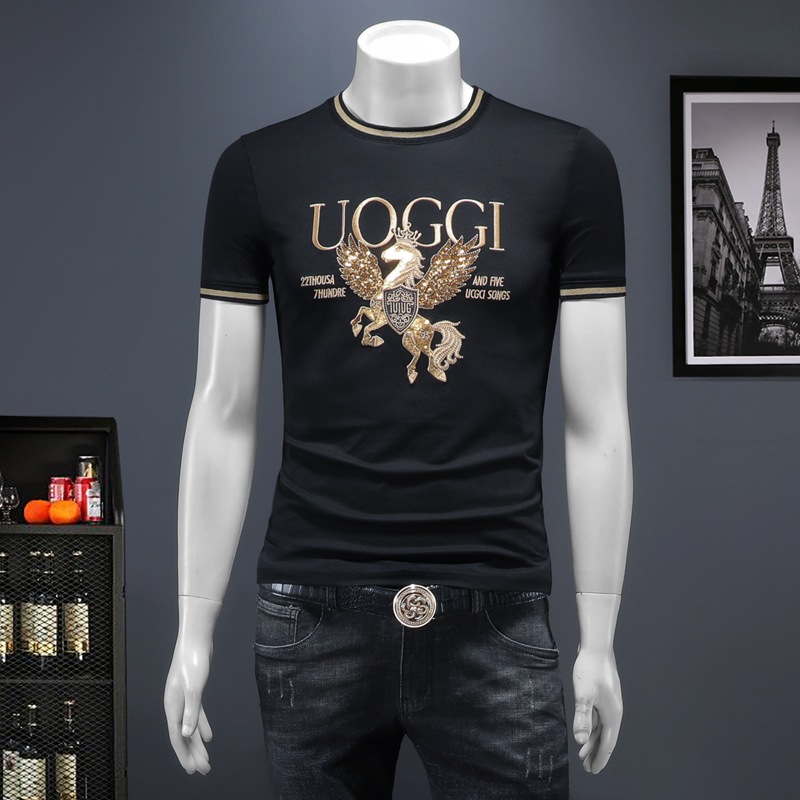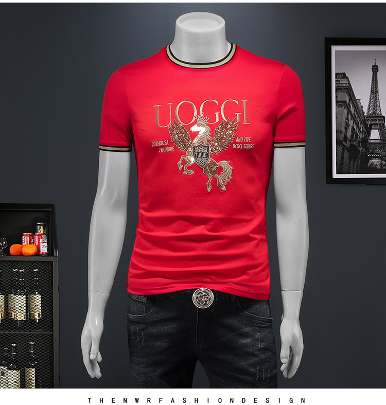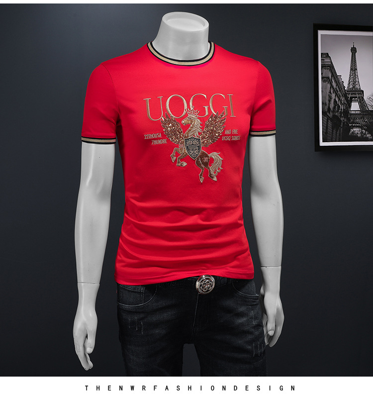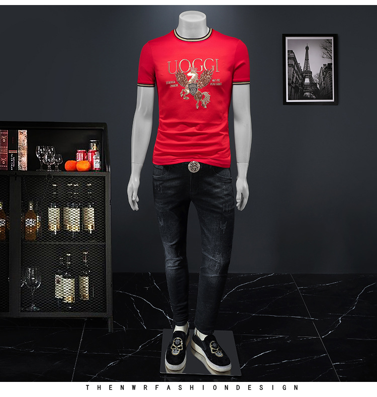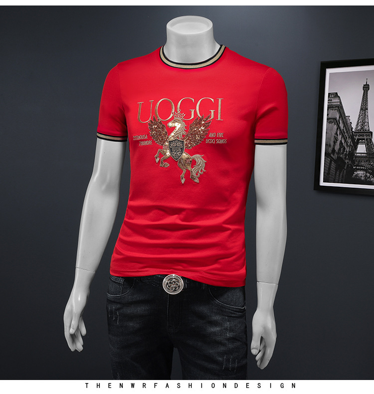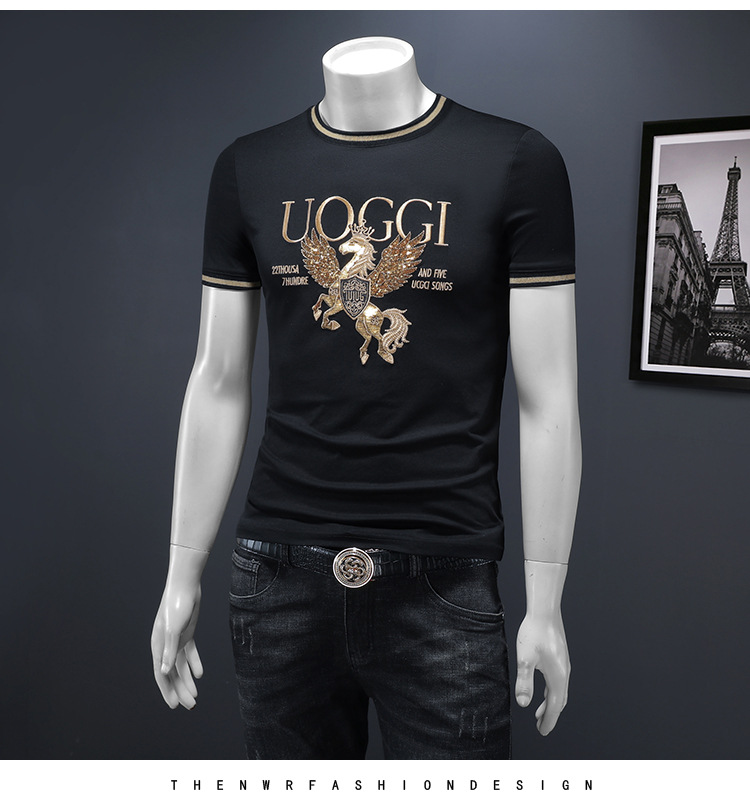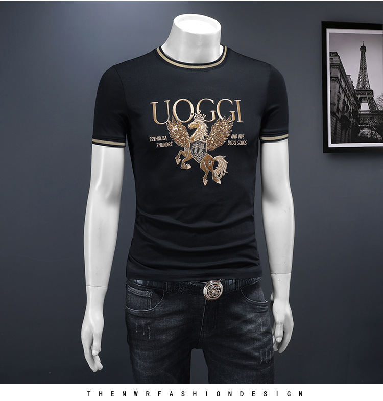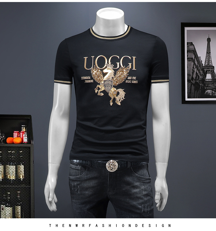 유럽 역 2025 남자 패션 캐주얼 올 매치 티셔츠 여름 슬림 핏 남자 새 티셔츠