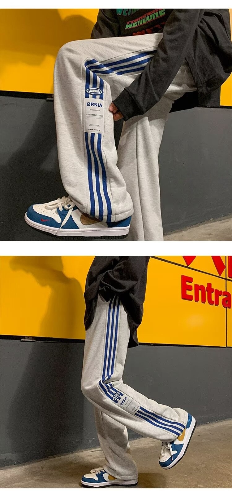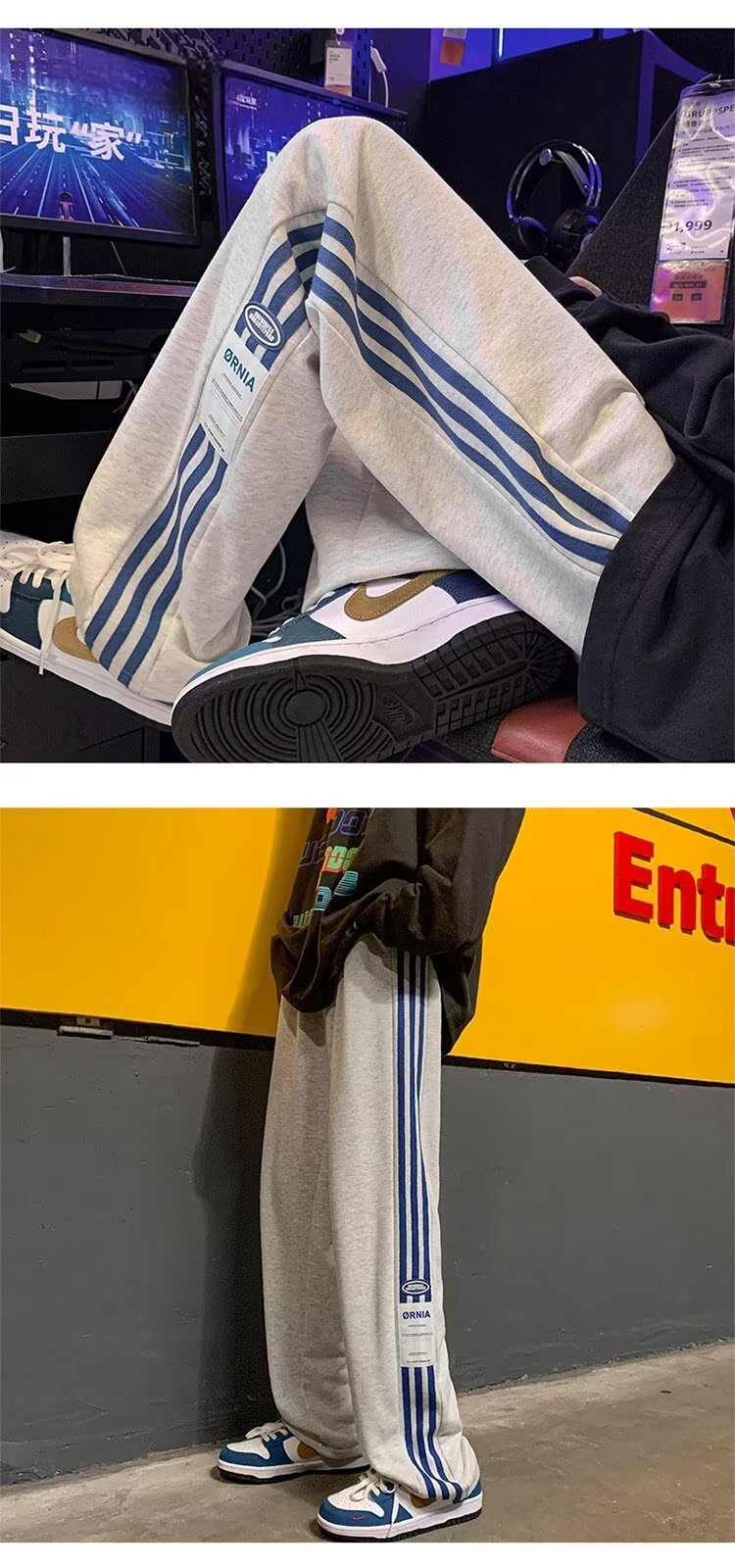 국경 간 아메리칸 스타일 하이 스트리트 트렌디 바지 남자 여름 스포츠 바지 십대 느슨한 캐주얼 바지 스트라이프 스웨트 팬츠