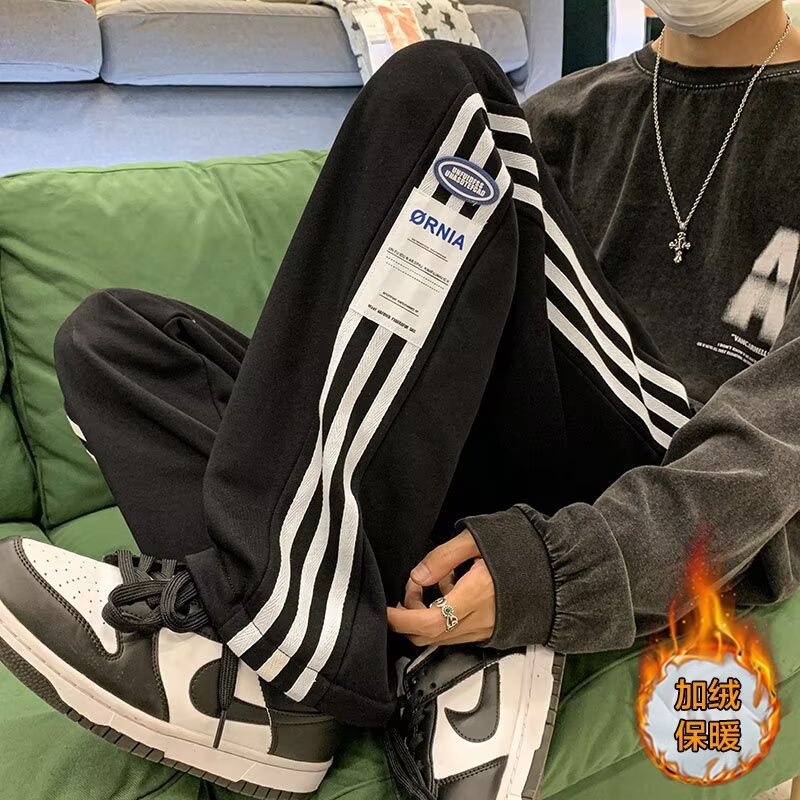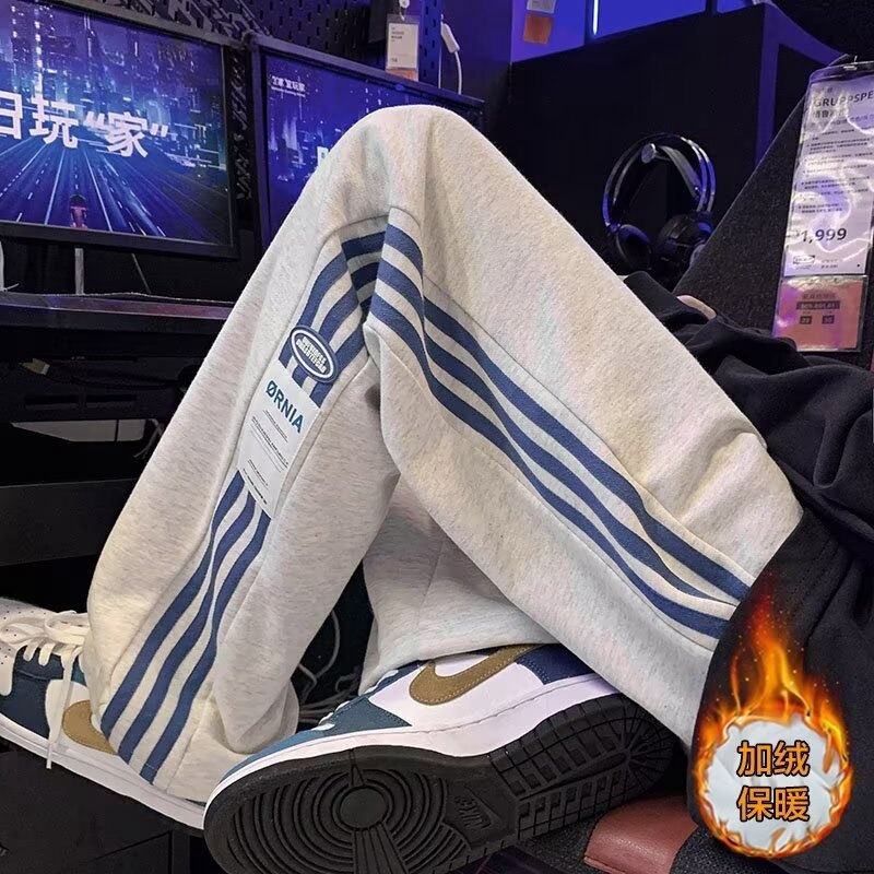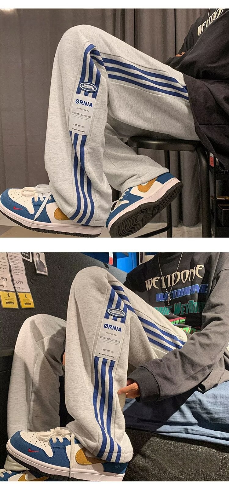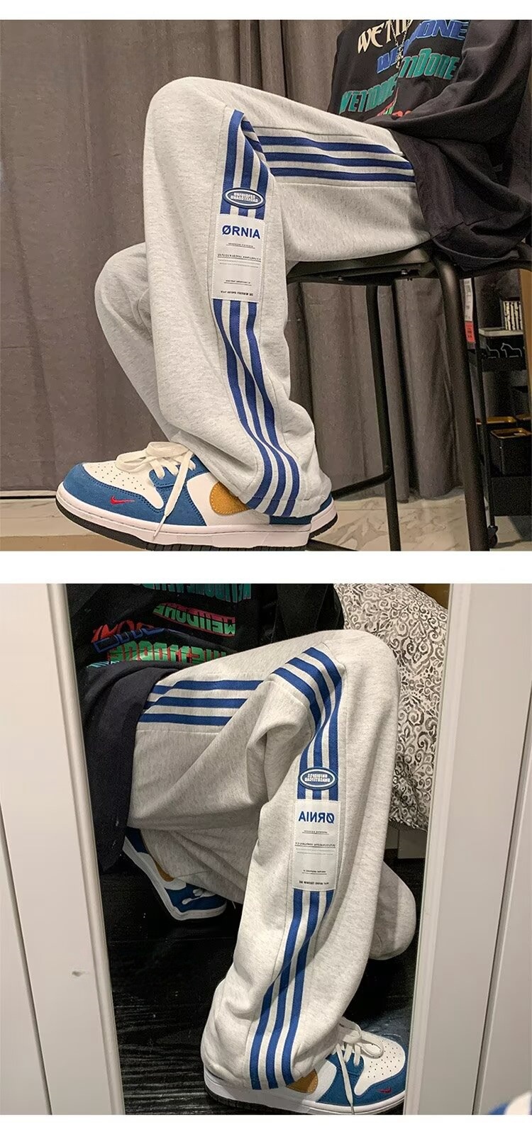 국경 간 아메리칸 스타일 하이 스트리트 트렌디 바지 남자 여름 스포츠 바지 십대 느슨한 캐주얼 바지 스트라이프 스웨트 팬츠스토어 가기