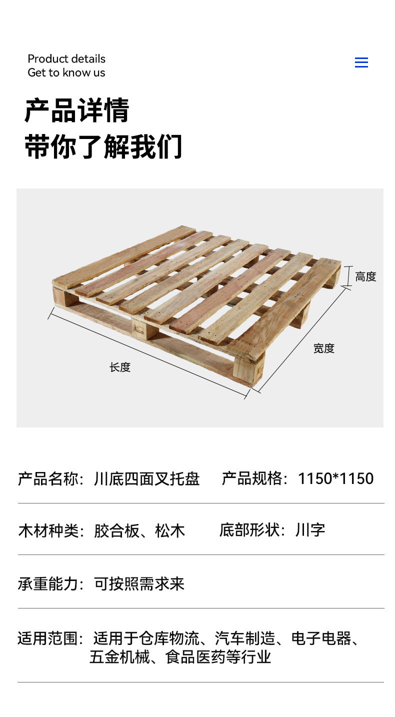 단단한 나무 팔레트 1150*1150 사면 포크 팔레트 나무 팔레트 공장 물류 주간 재배송 팔레트스토어 가기