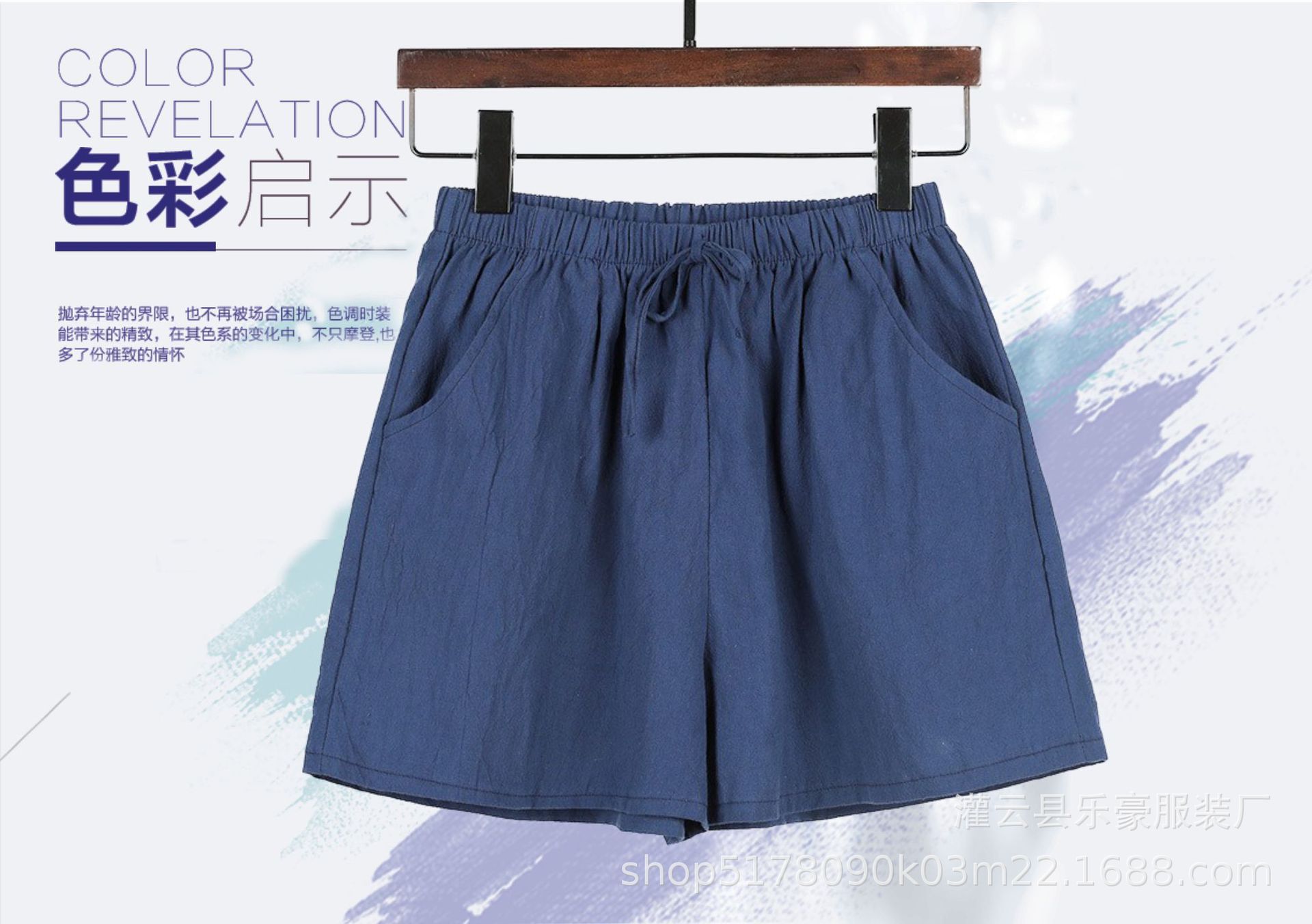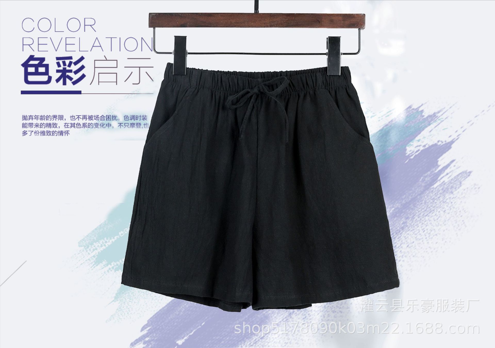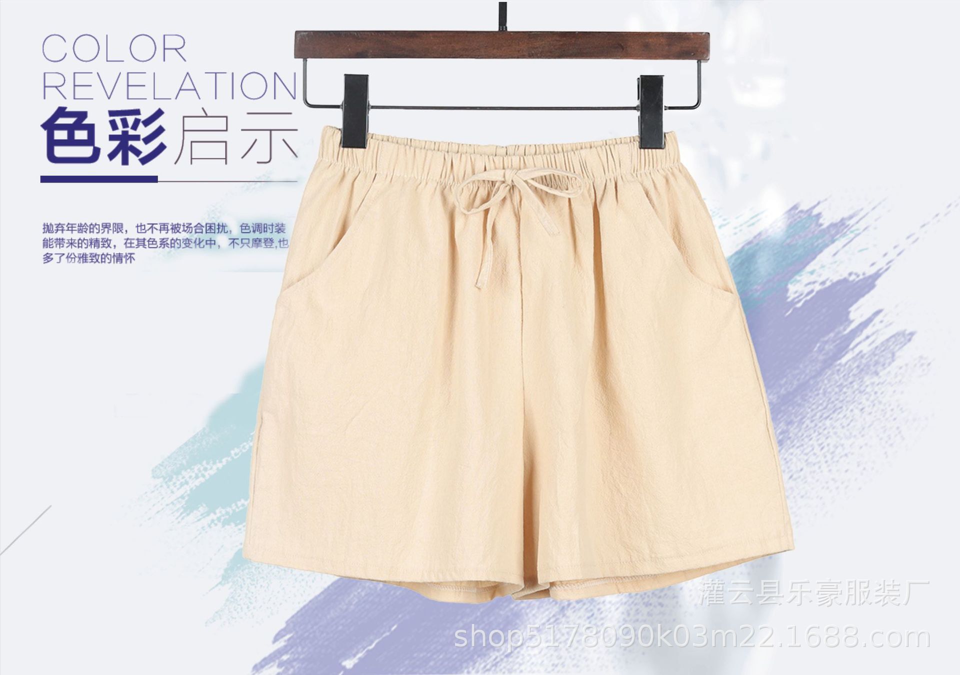 대외 무역 여름 새로운 느슨한 리넨 코튼 린넨 플러스 사이즈 학생 스포츠 캐주얼 반바지 여성 와이드 레그 바지 캐주얼 바지스토어 가기
