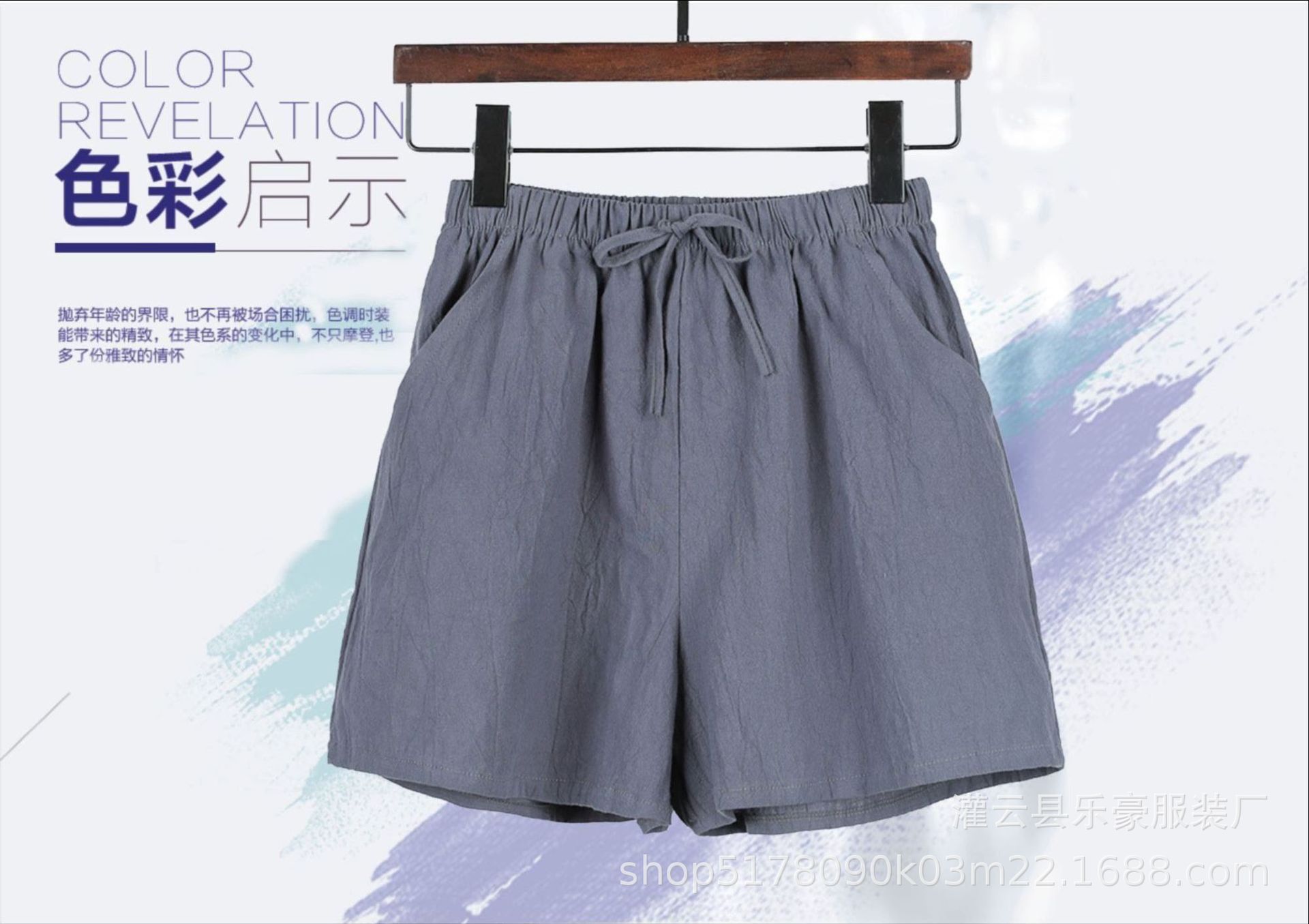 대외 무역 여름 새로운 느슨한 리넨 코튼 린넨 플러스 사이즈 학생 스포츠 캐주얼 반바지 여성 와이드 레그 바지 캐주얼 바지