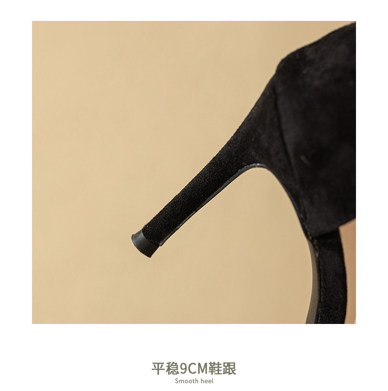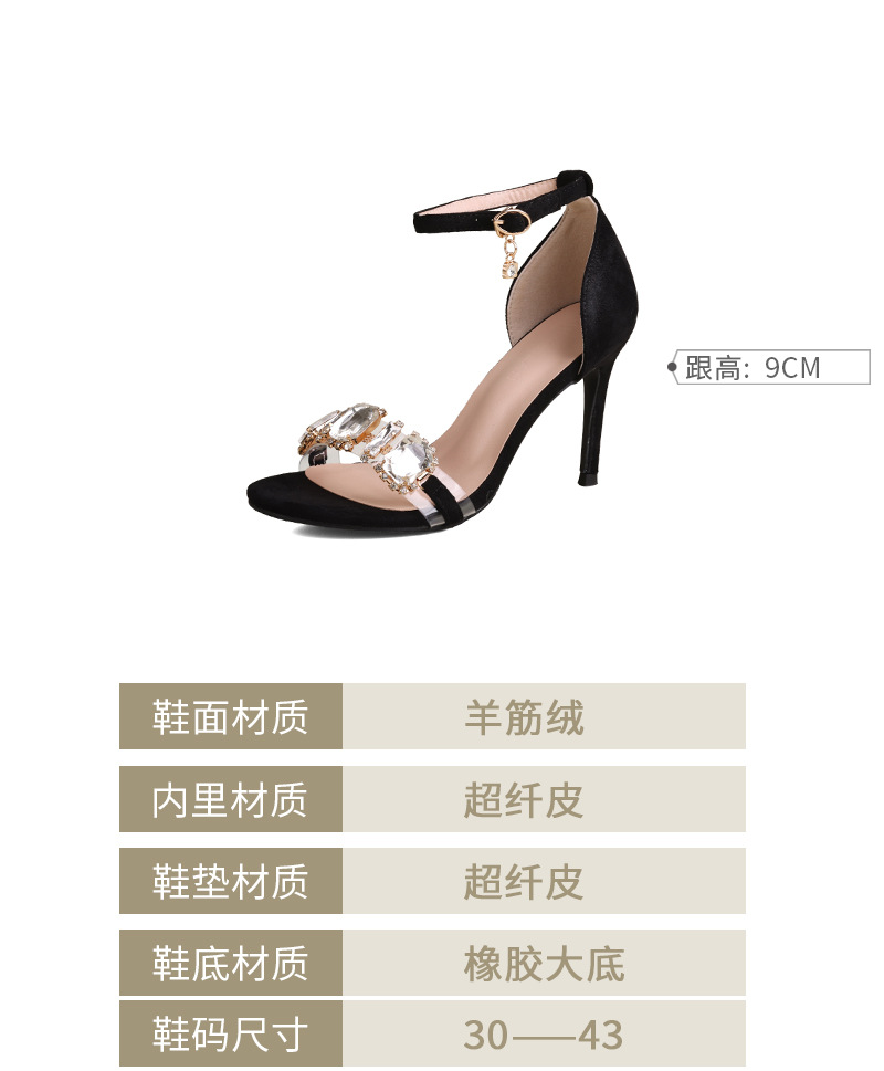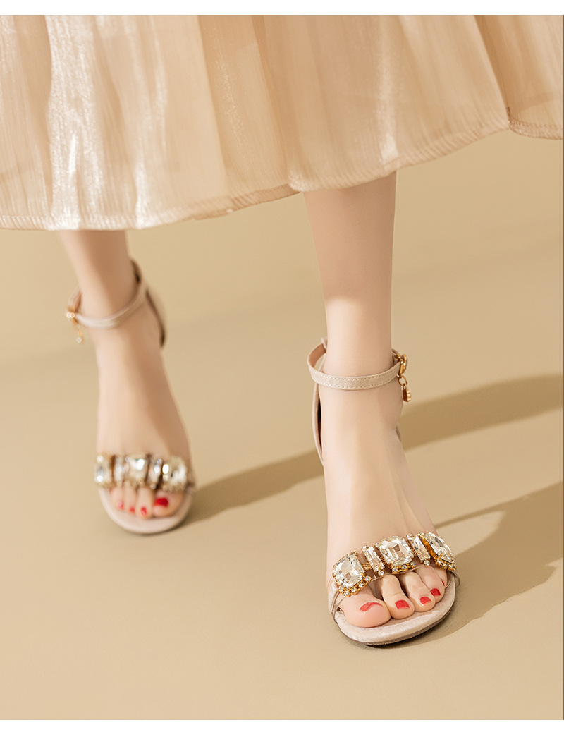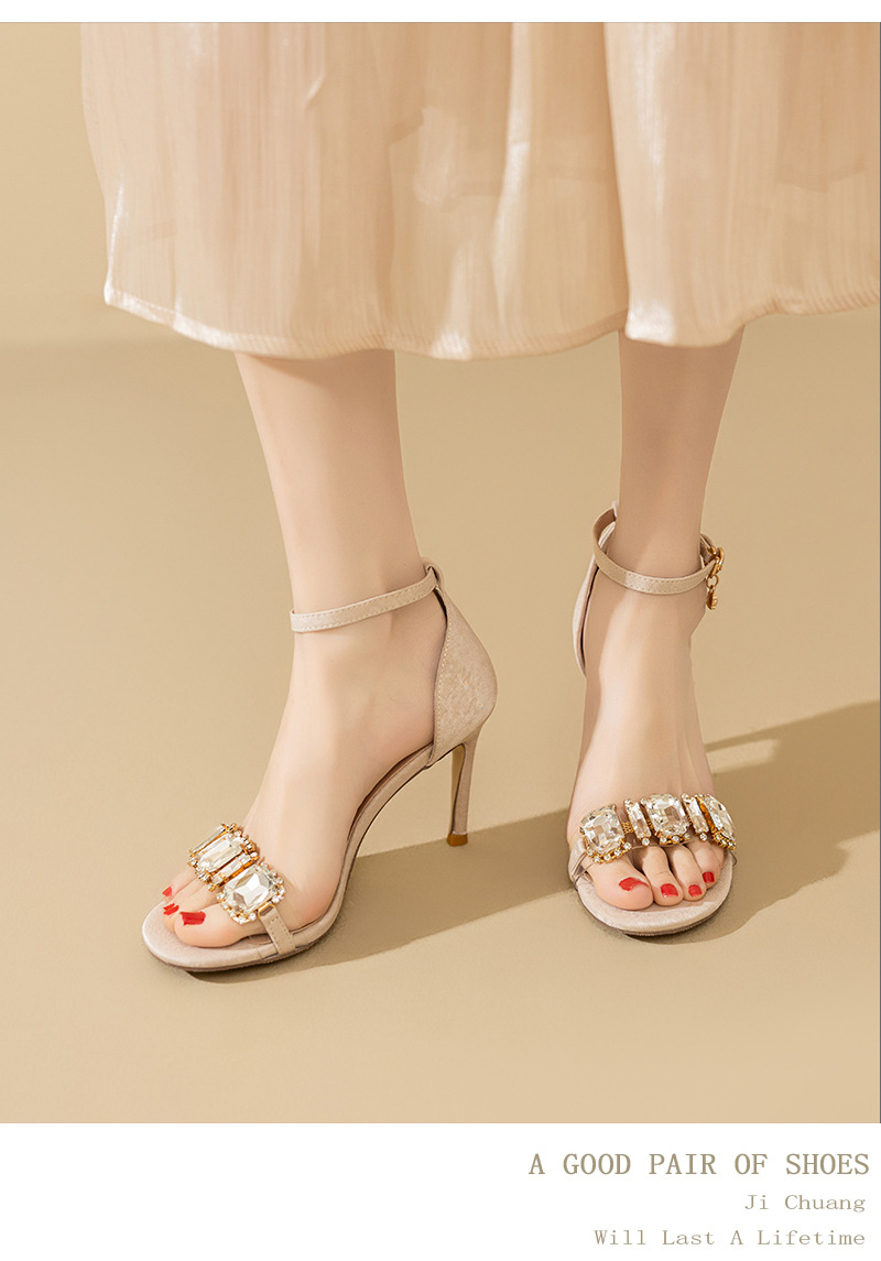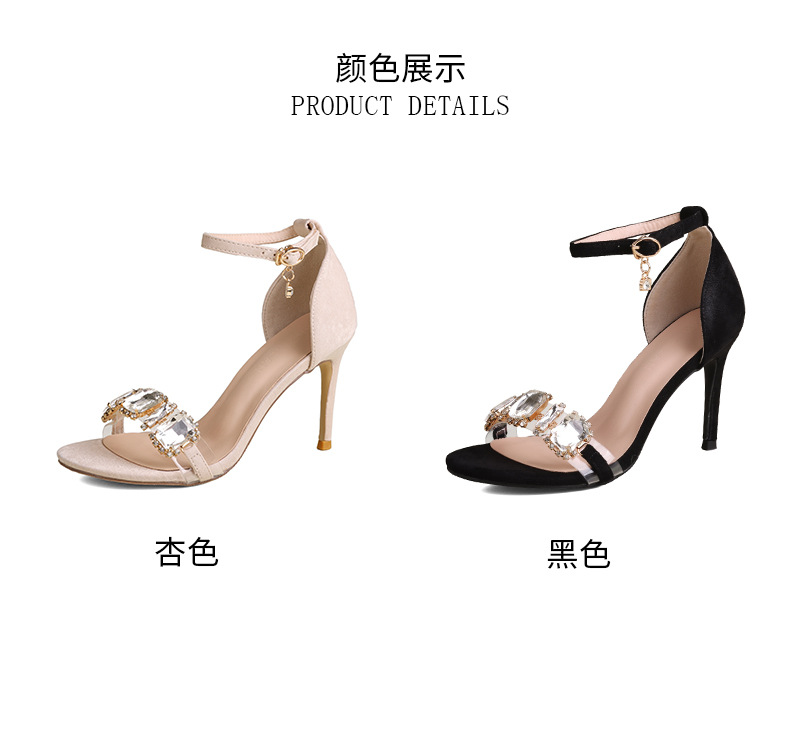 2025 새로운 봄 하이힐 샌들 여자 한 단어 버클 오픈 발가락 얇은 힐 레트로 브라이트 블랙 라인스톤 하이힐스토어 가기