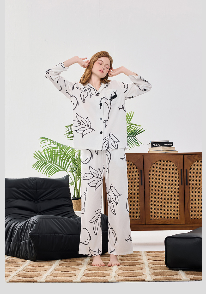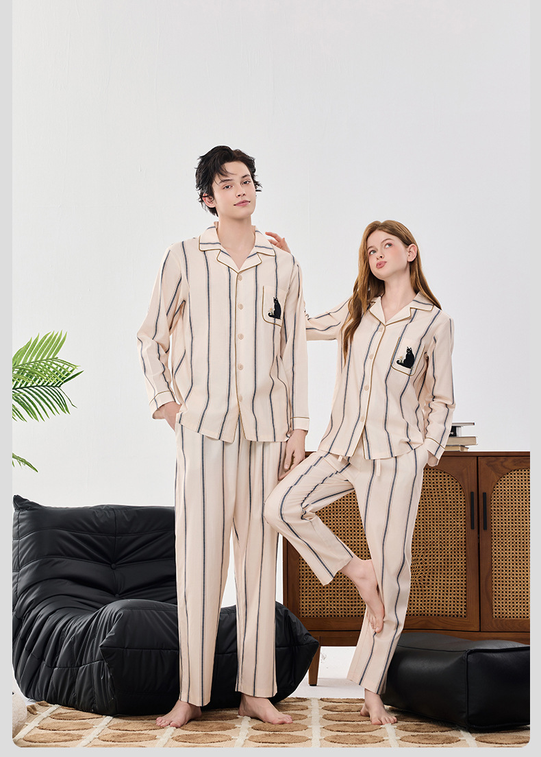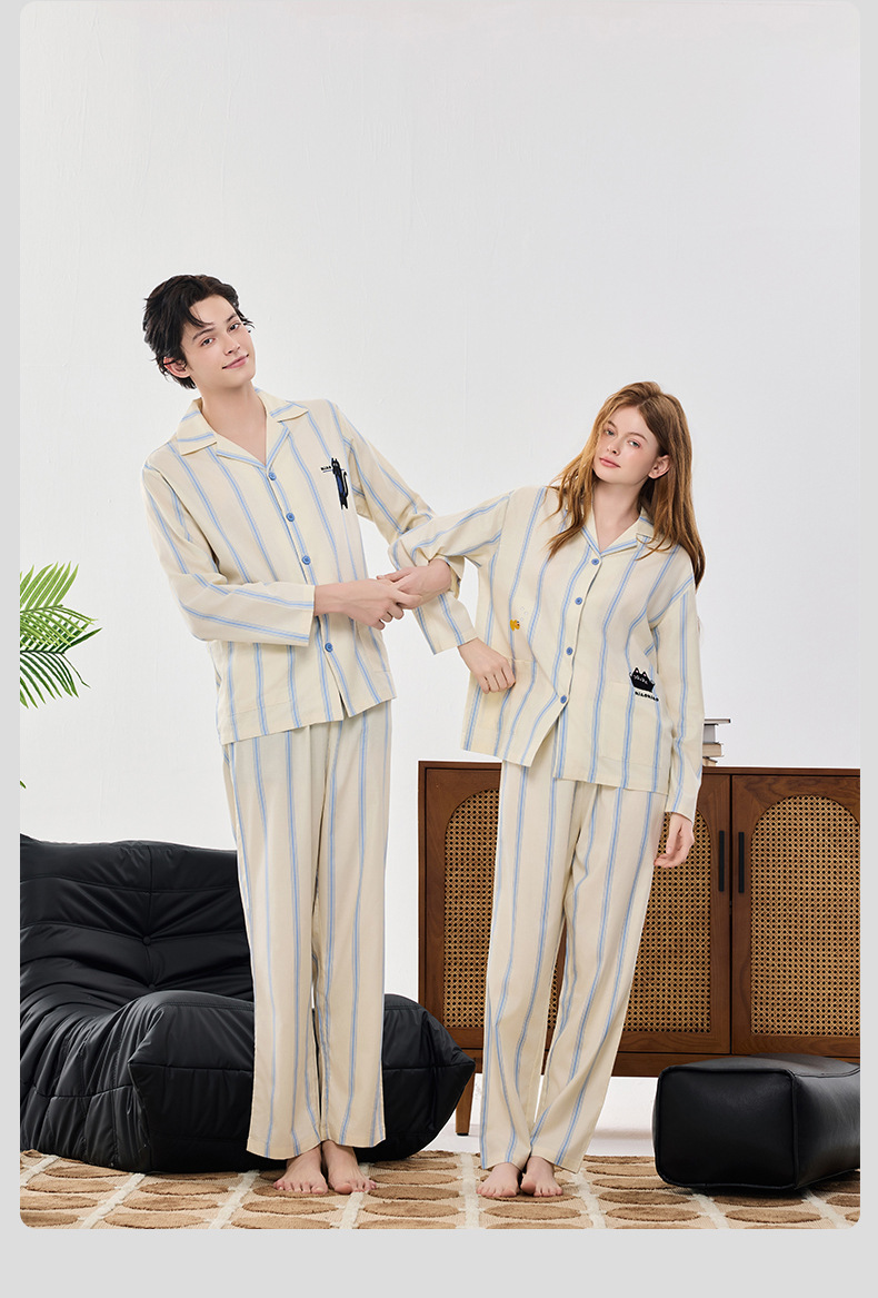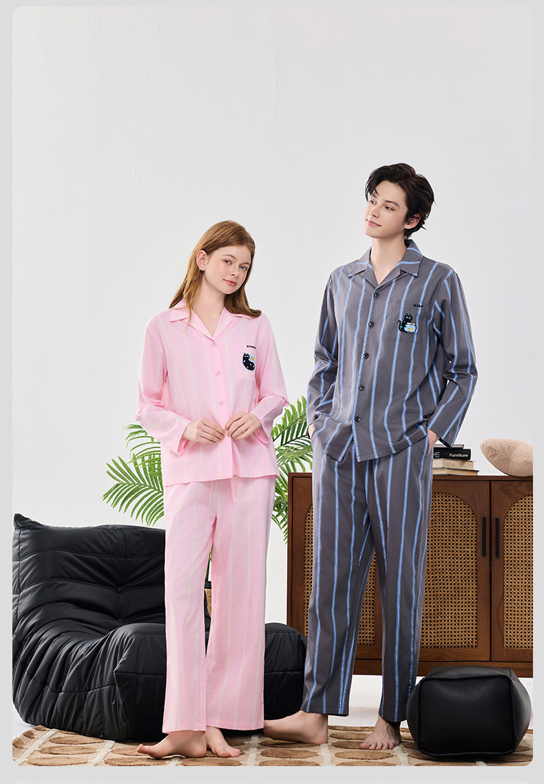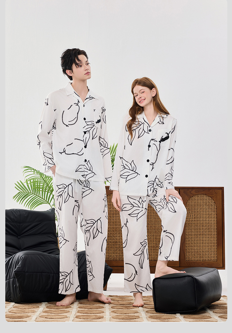 A급 리오셀 텐셀 코튼 자수 잠옷 여성용 봄 가을 긴팔 긴바지 잠옷 커플 홈웨어 세트스토어 가기