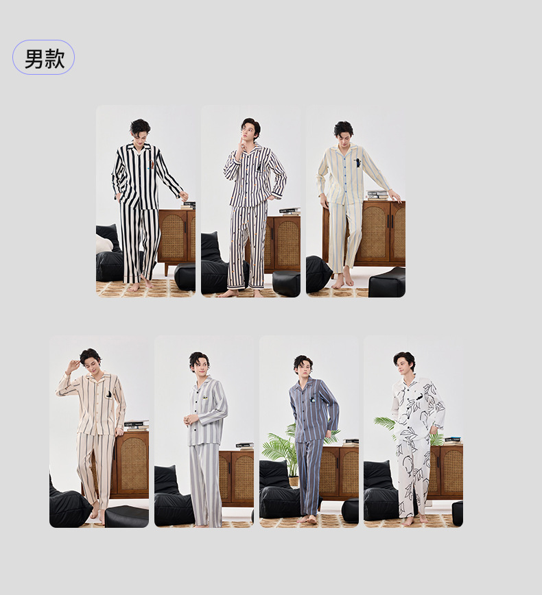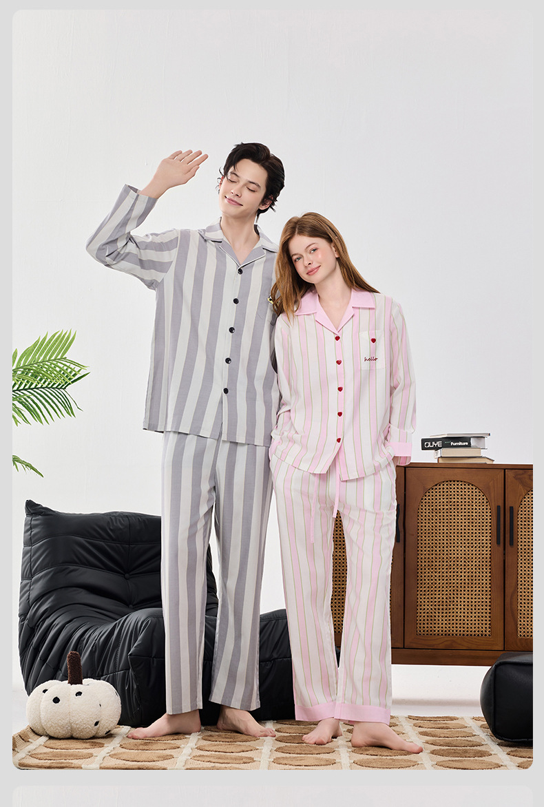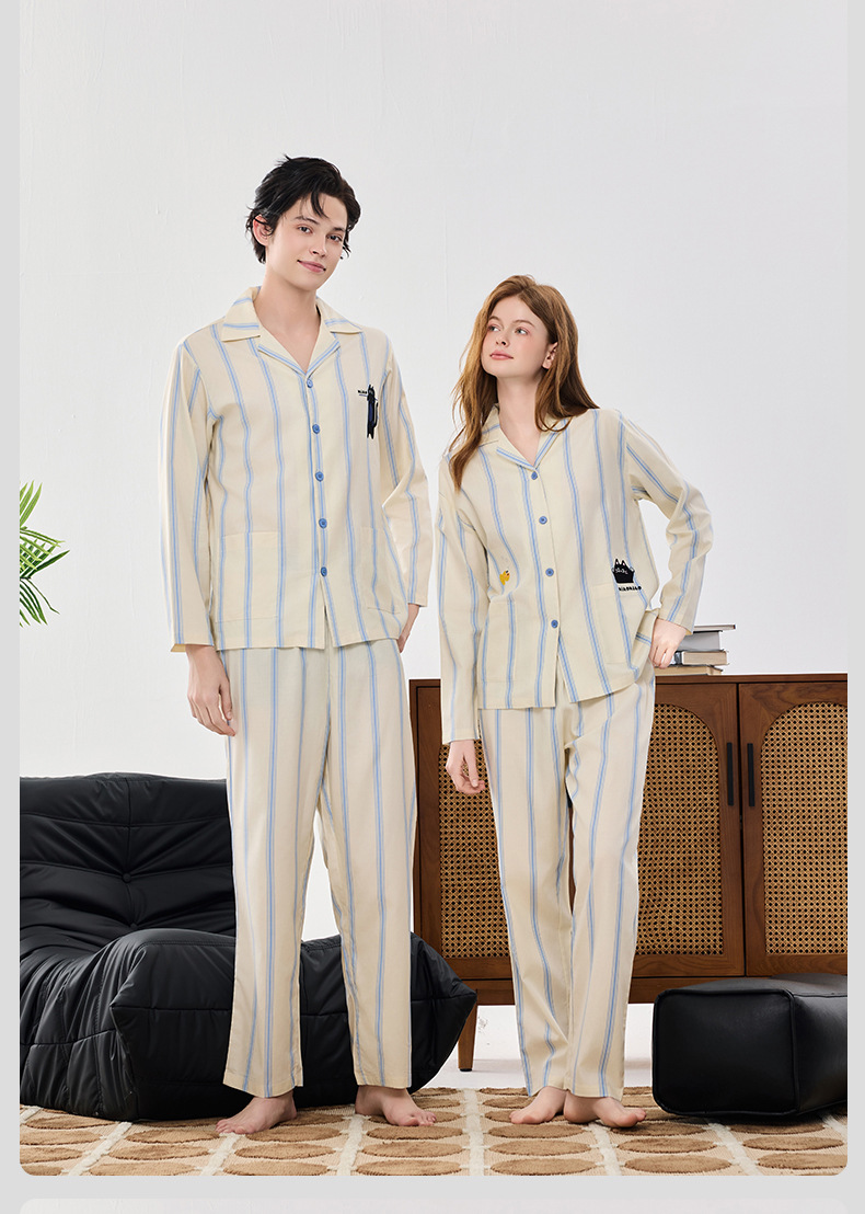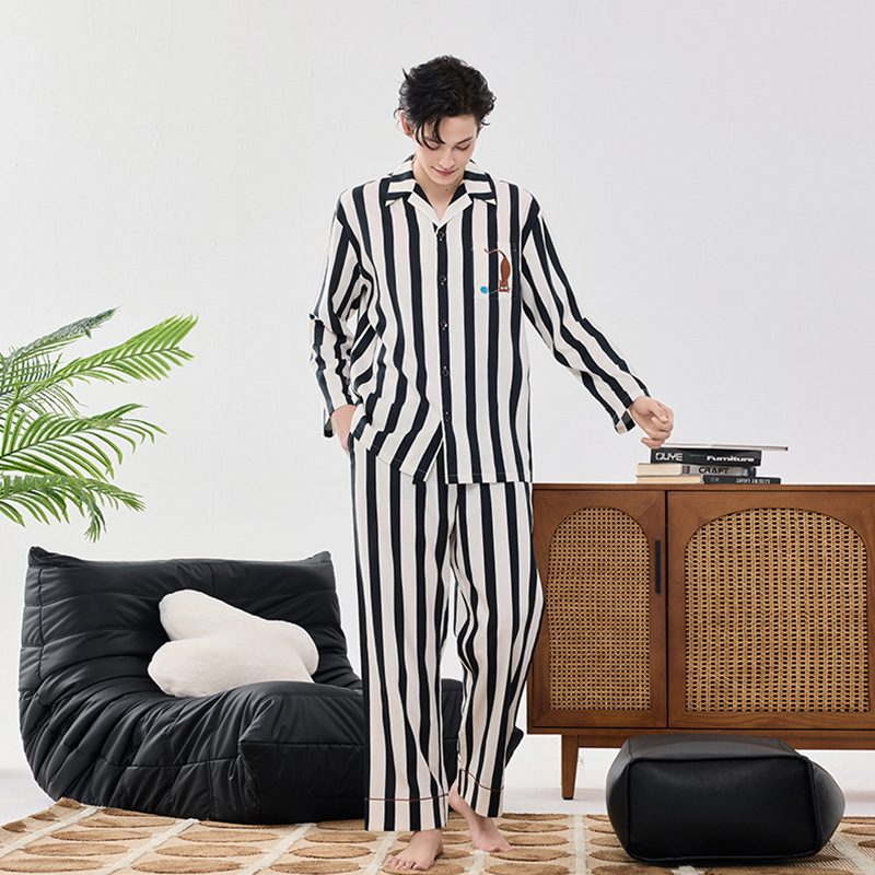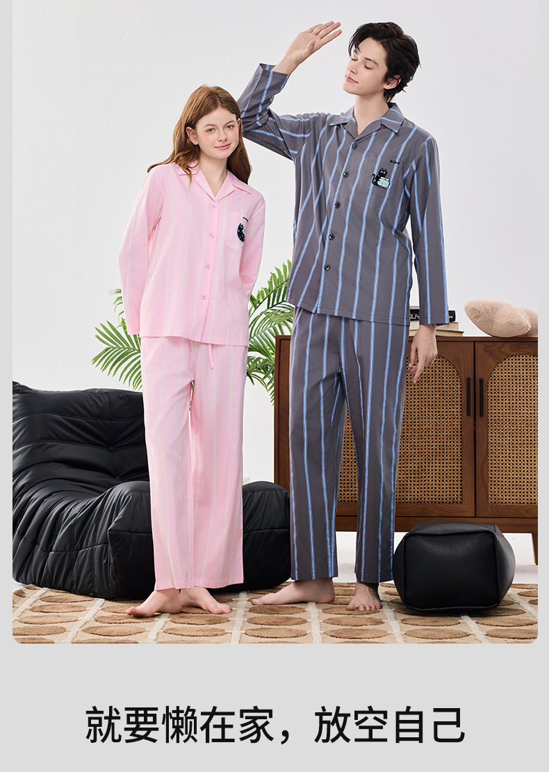 A급 리오셀 텐셀 코튼 자수 잠옷 여성용 봄 가을 긴팔 긴바지 잠옷 커플 홈웨어 세트스토어 가기