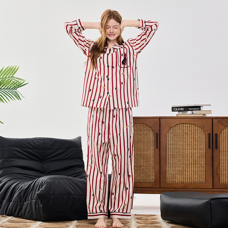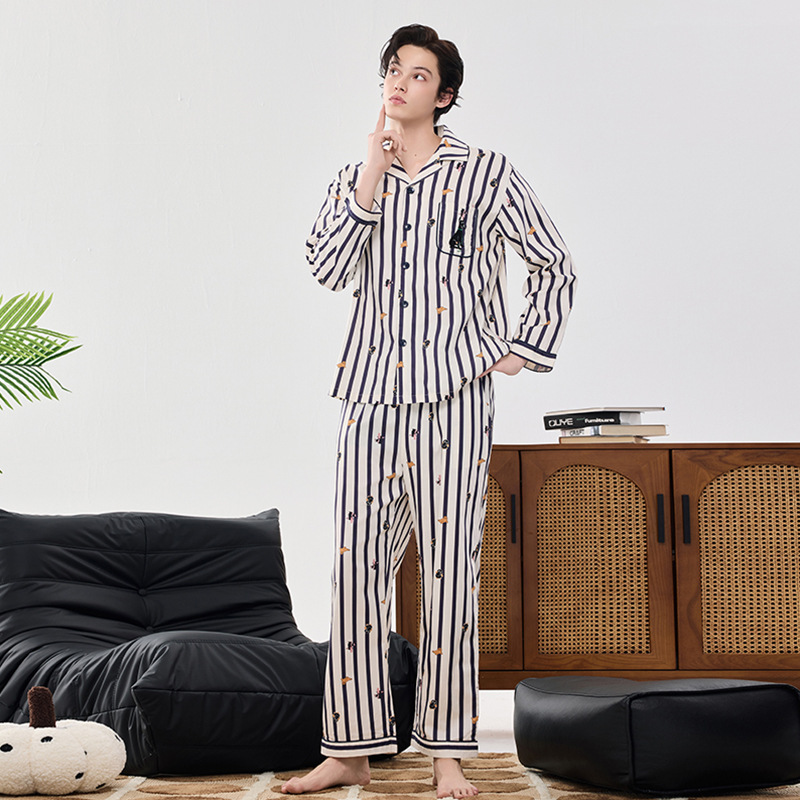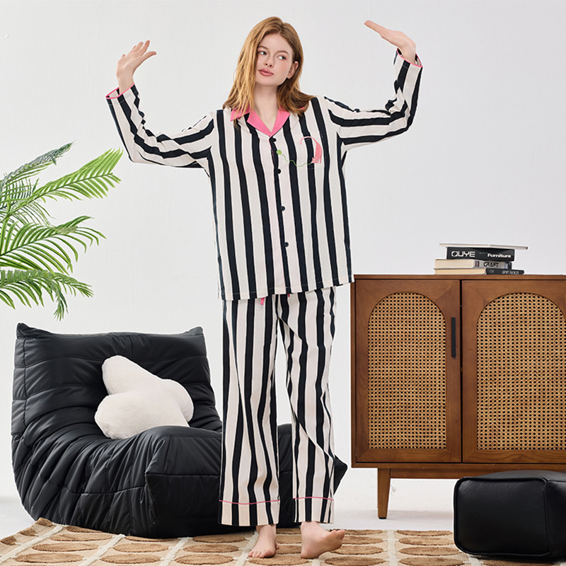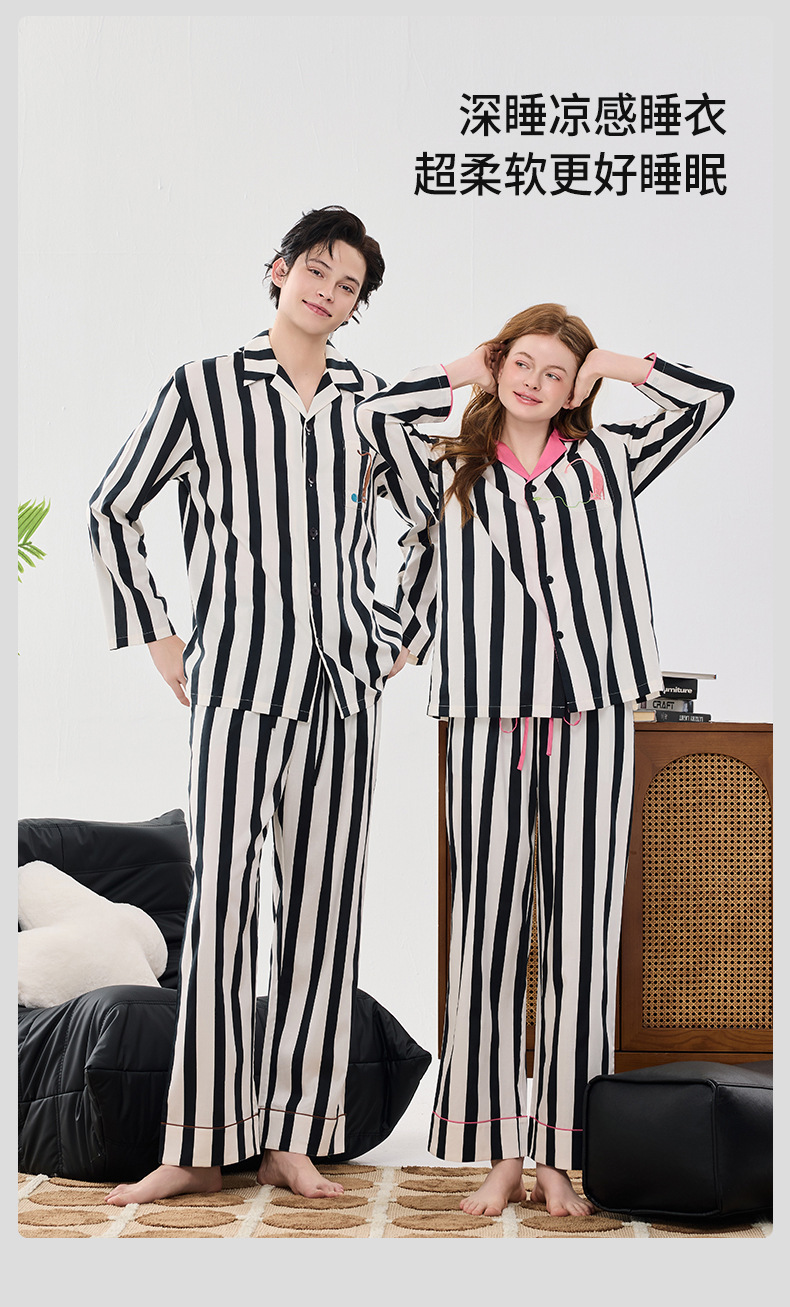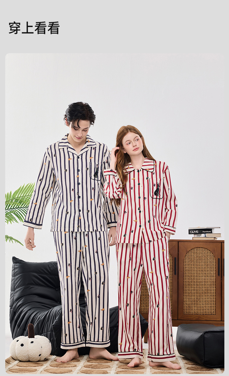 A급 리오셀 텐셀 코튼 자수 잠옷 여성용 봄 가을 긴팔 긴바지 잠옷 커플 홈웨어 세트스토어 가기