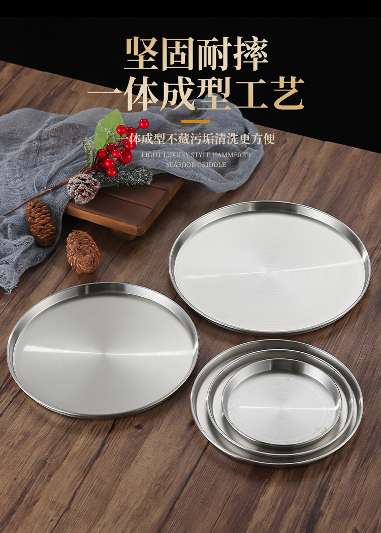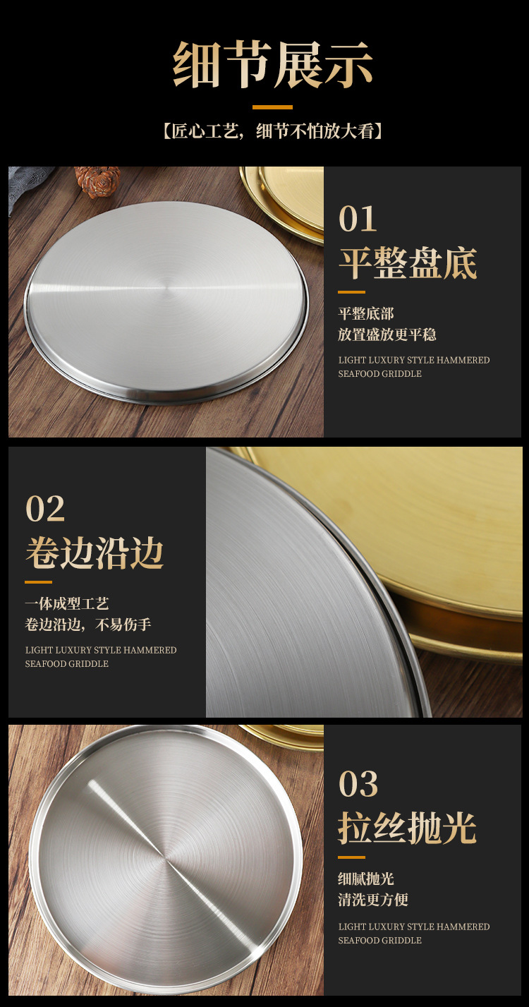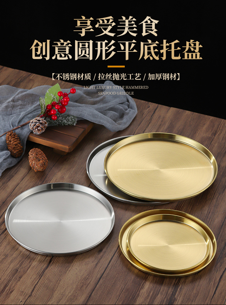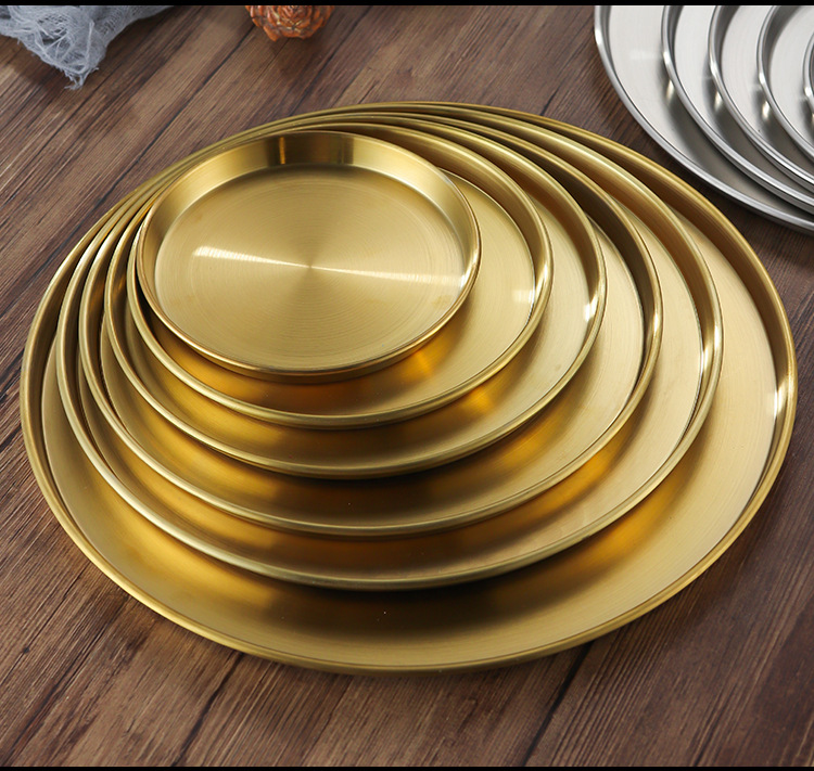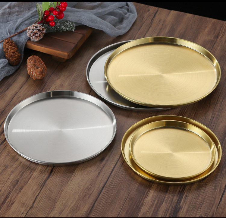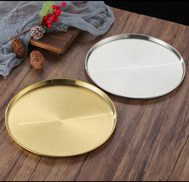 스테인레스 스틸 컬링 디스크 황금 일본 바베큐 플레이트 라운드 요리 피자 플레이트 과일 트레이 두꺼운 대형 디스크