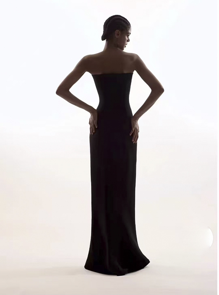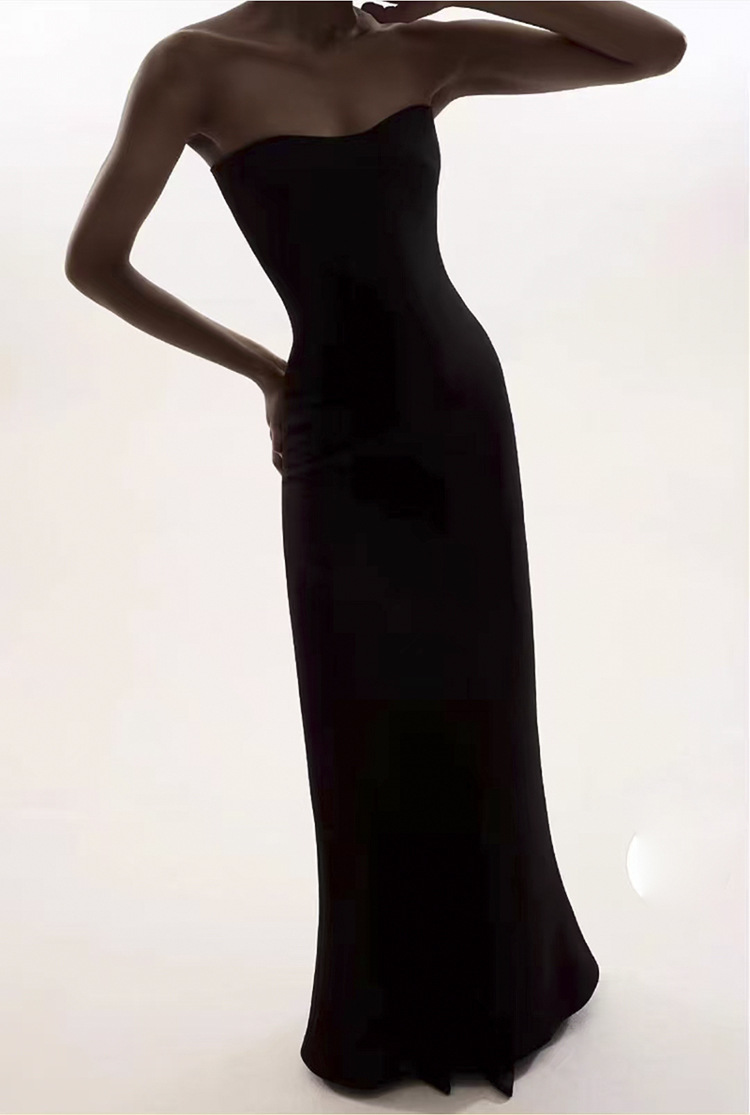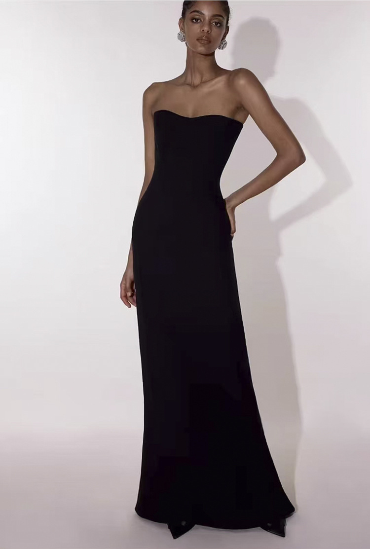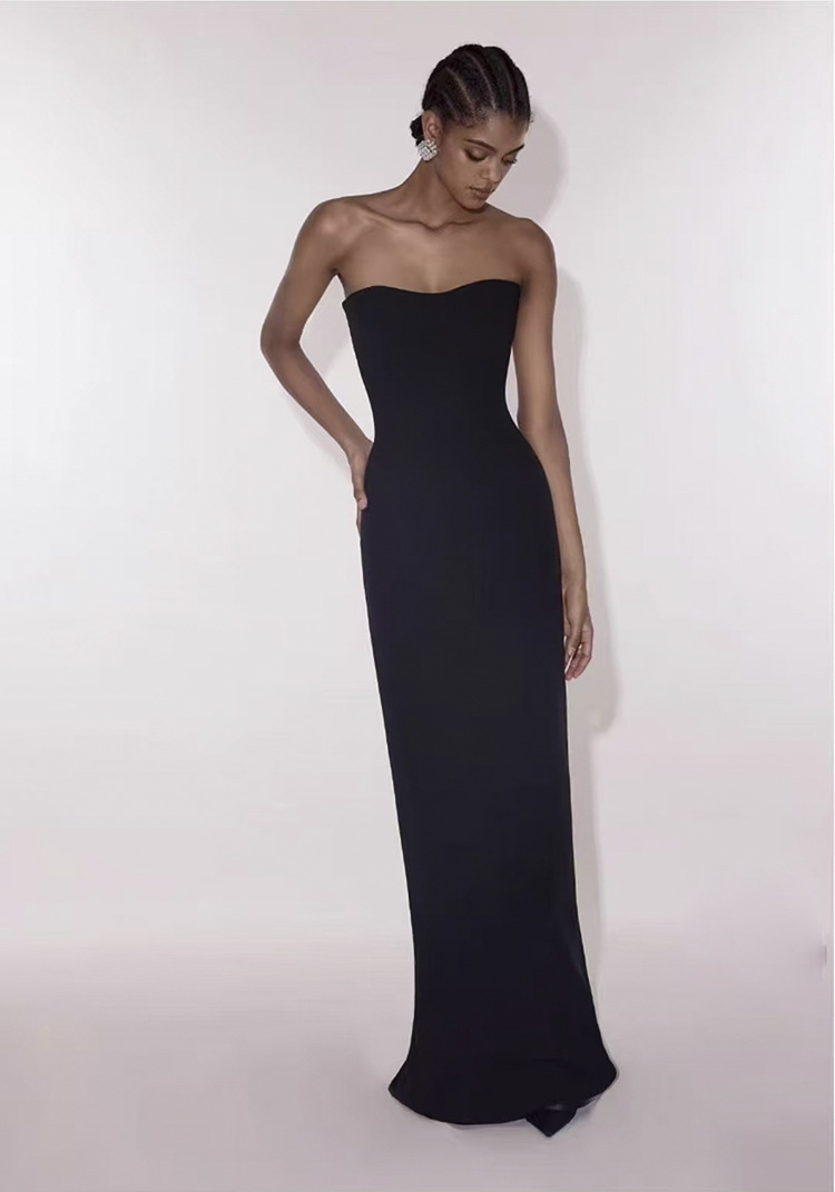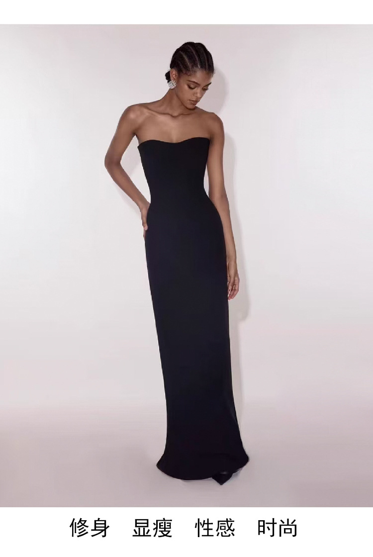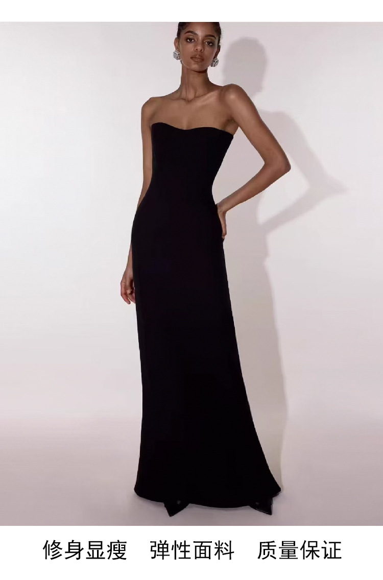 아마존 국경 유럽 및 미국 블랙 슬림 디너 연례 회의 여성 라이트 럭셔리 원피스 긴 우아한 스트랩리스 원피스