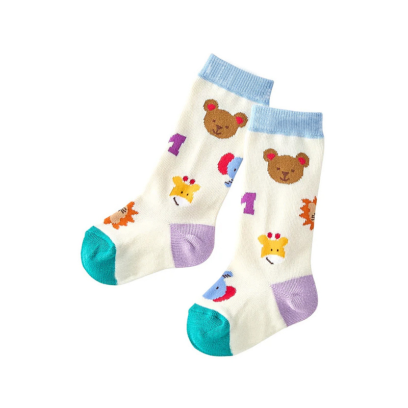 재고 있음 아기 양말 일본식 만화 귀여운 곰 동물원 자수 중간 길이 양말 어린이용 신축성 양말
