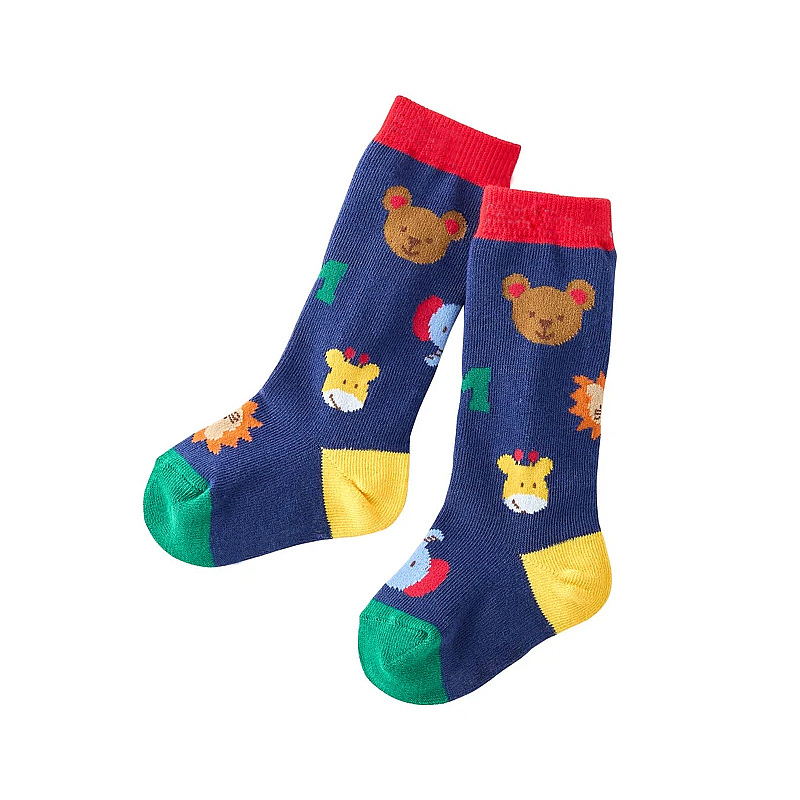 新款儿童卡通小熊动物园提花刺绣长筒袜