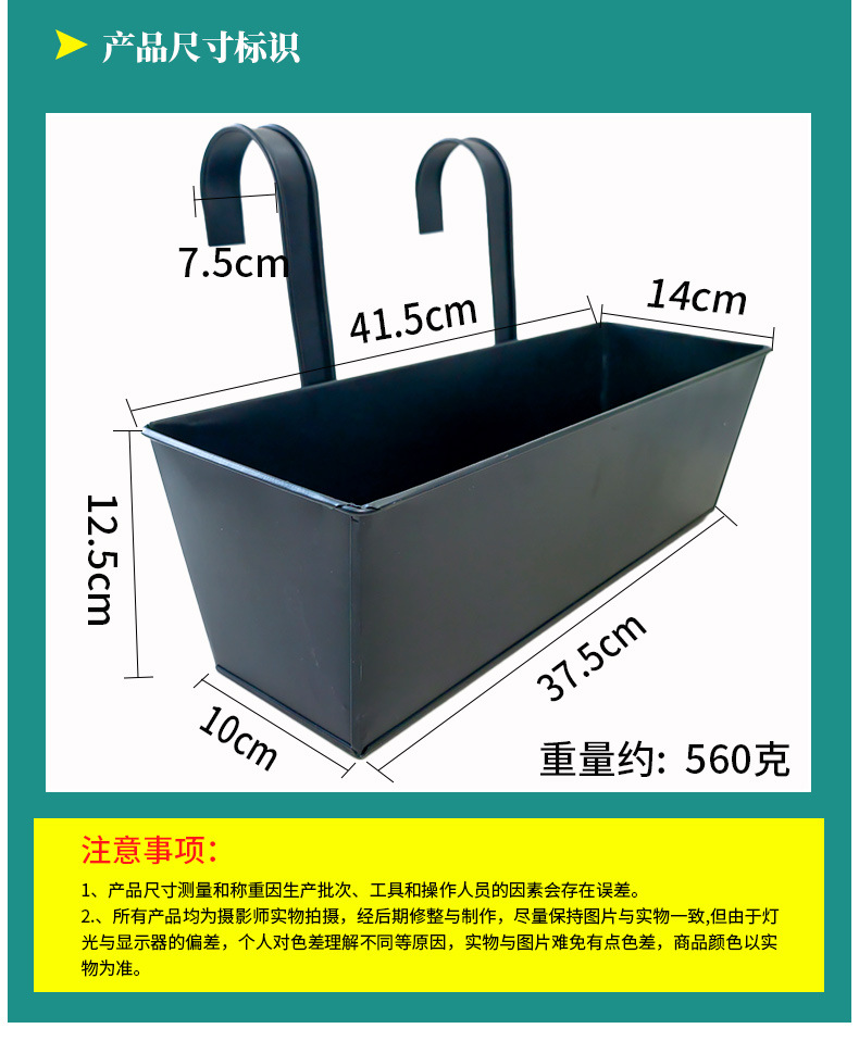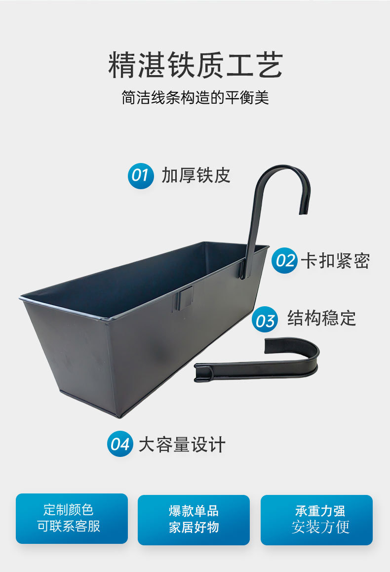 매달린 꽃 냄비 실내 및 실외 녹화 홈 원예 거실 대용량 철 금속 직사각형 교수형 꽃 양동이