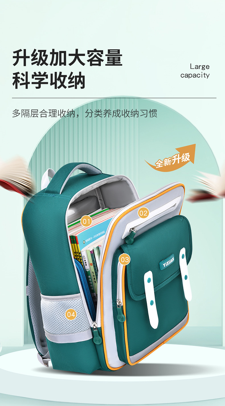 초등학교 학생을위한 새로운 영어 스타일 스쿨 백 1-3-6 학년 능선 보호 및 체중 감소 어린이 스쿨 백 방수 및 내마모성 대용량스토어 가기