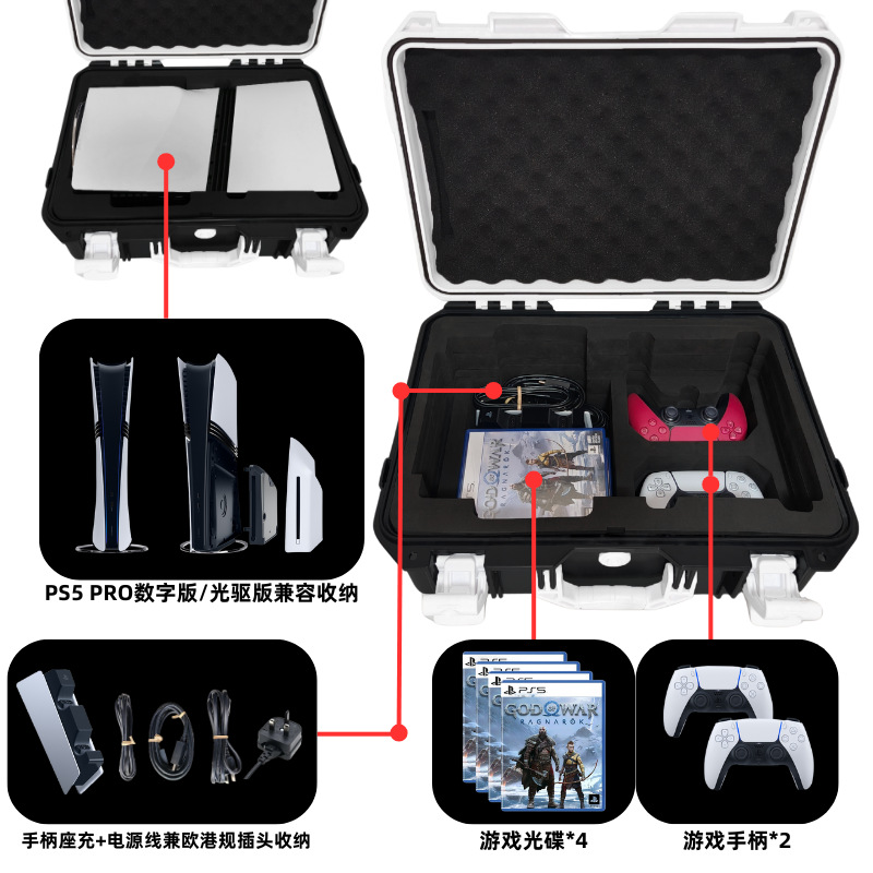 • PS5 PRO 안전 보관함 [흑백 배색] [광학 드라이브 버전/디지털 버전 범용] [분해되지 않는 베이스 보관함]